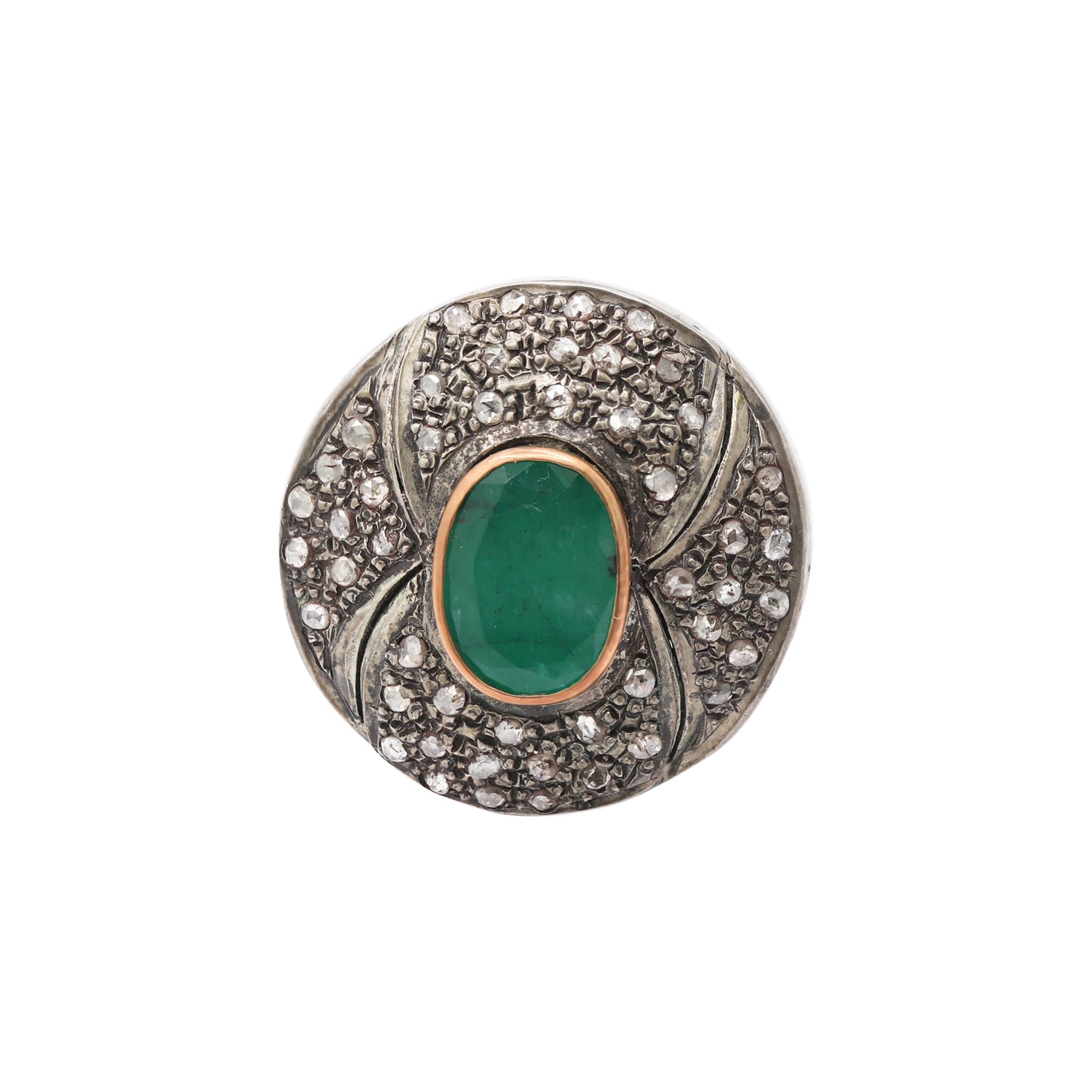 Item Type: Emerald and Diamond 925 Silver Band Ring