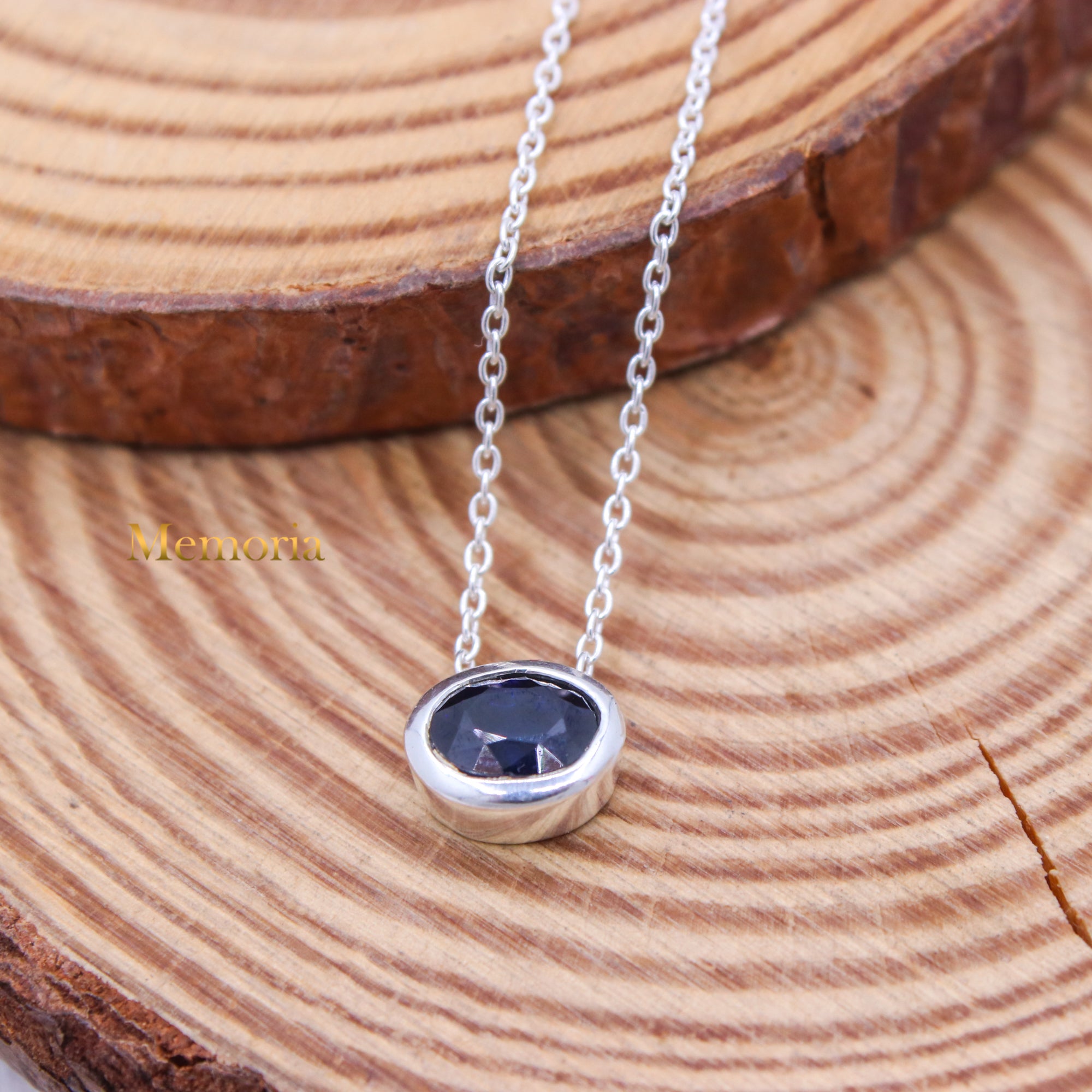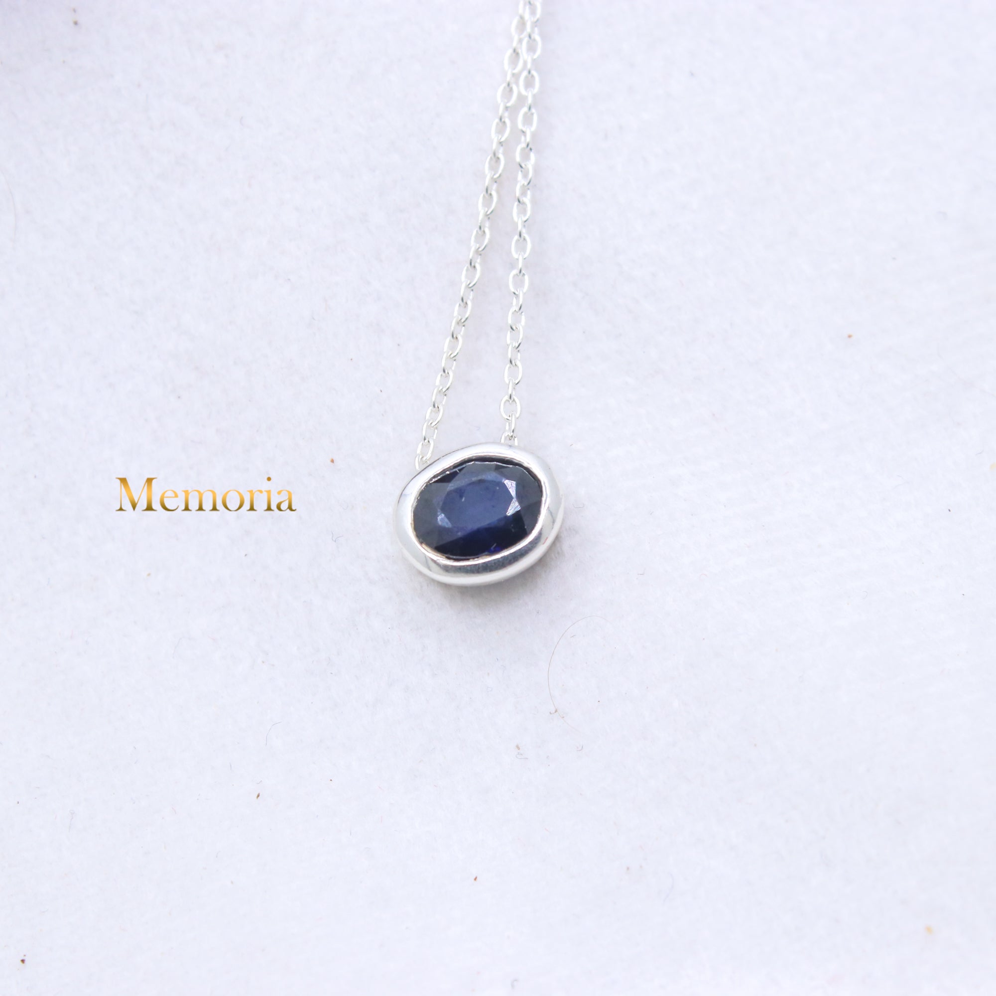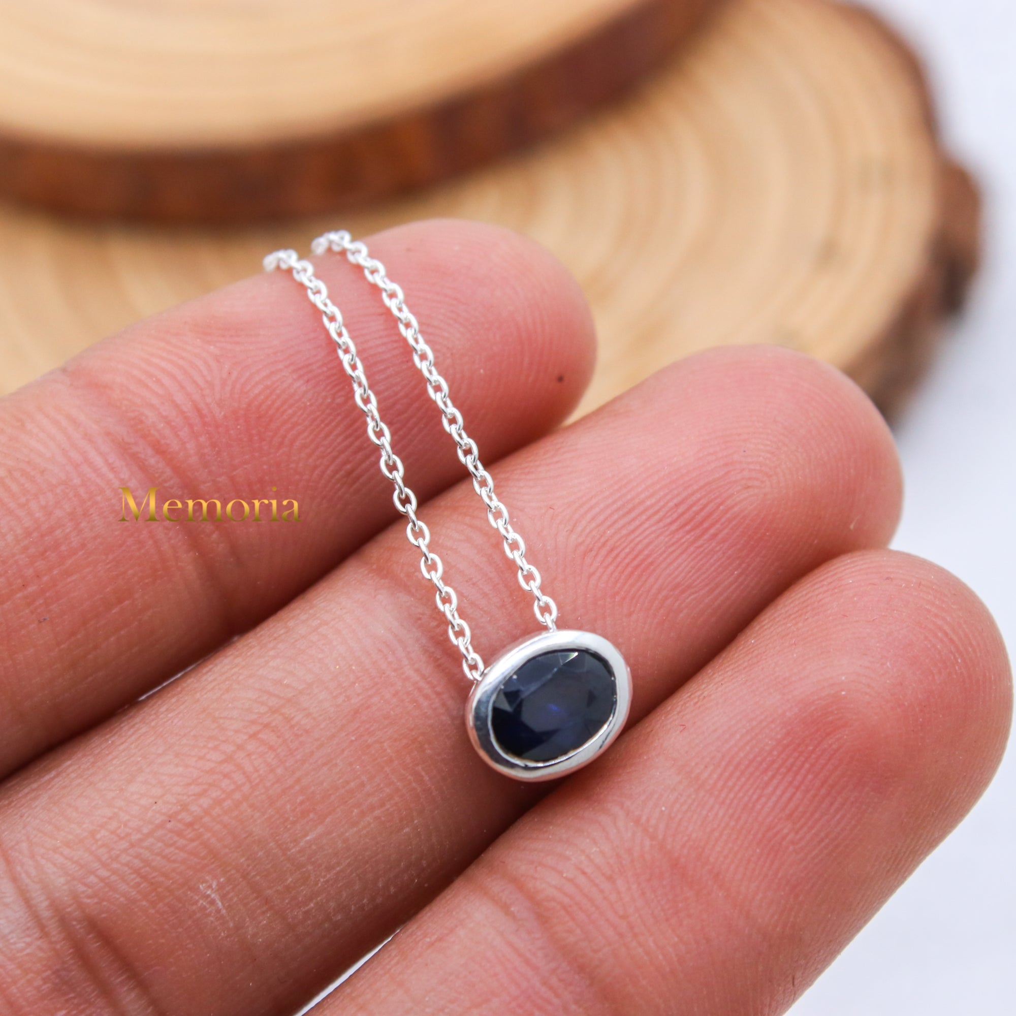 Natural Blue Sapphire Gemstone 925 Silver Necklace