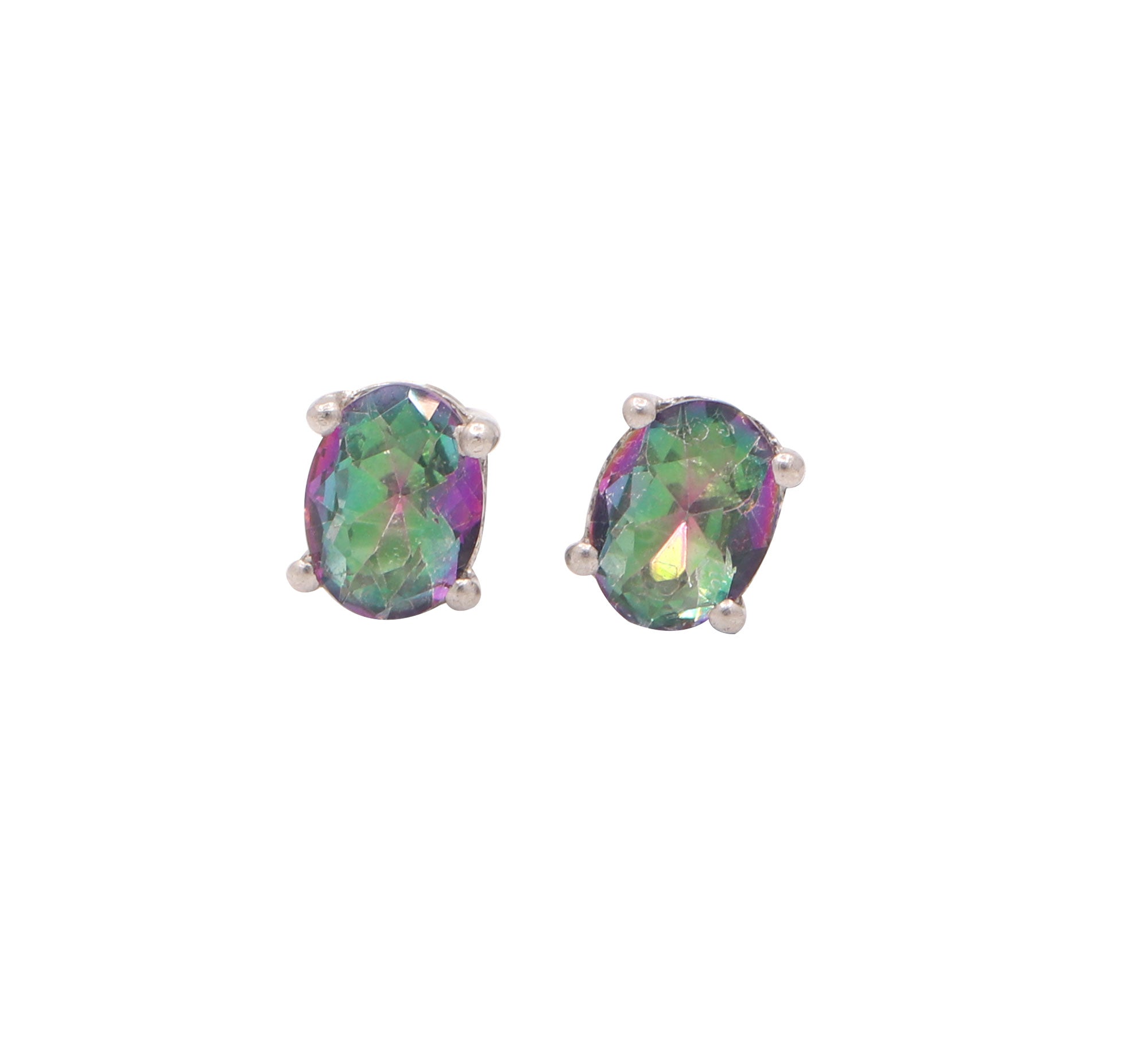 925 Sterling Silver Natural Oval Shaped Mystic Topaz Gemstone Stud Earring