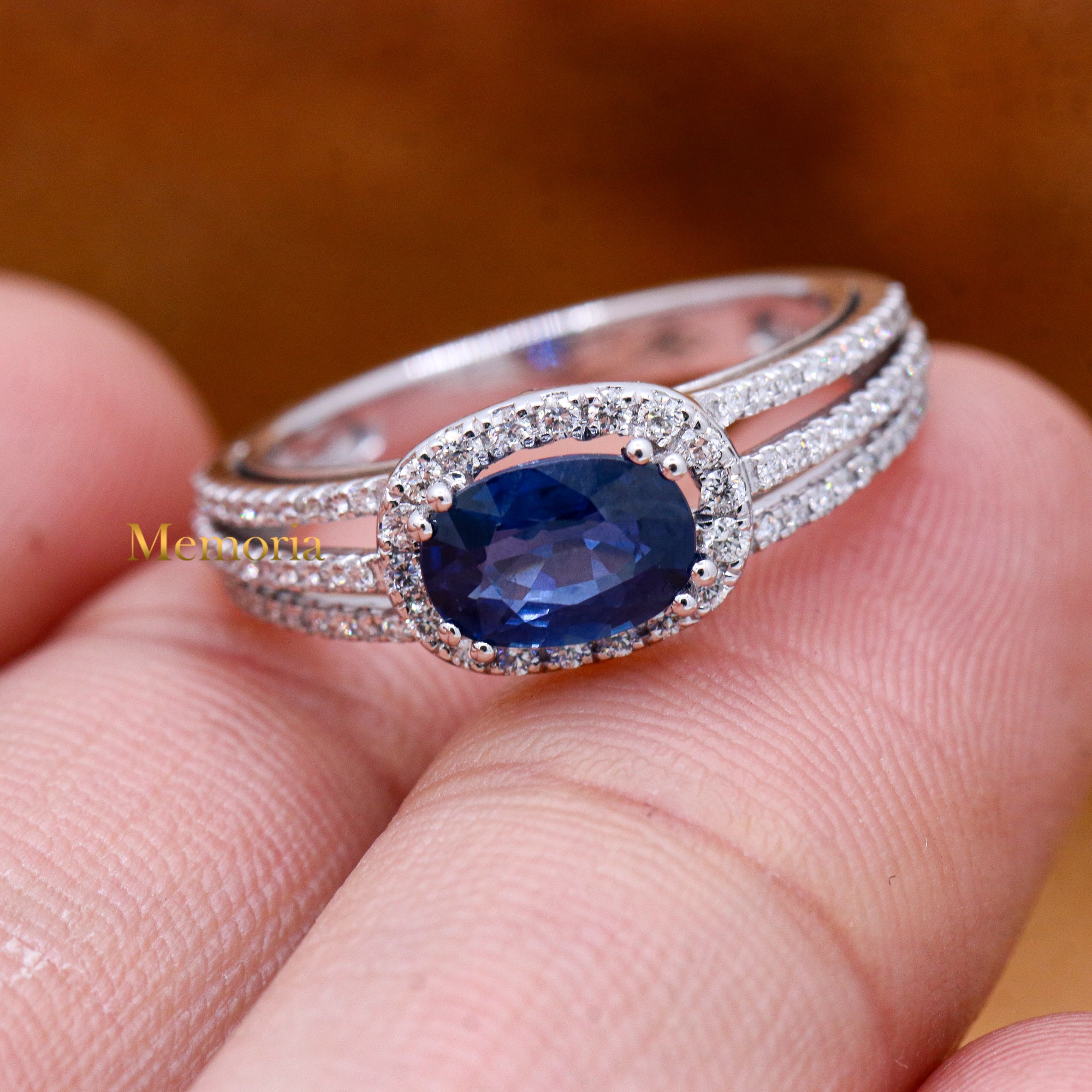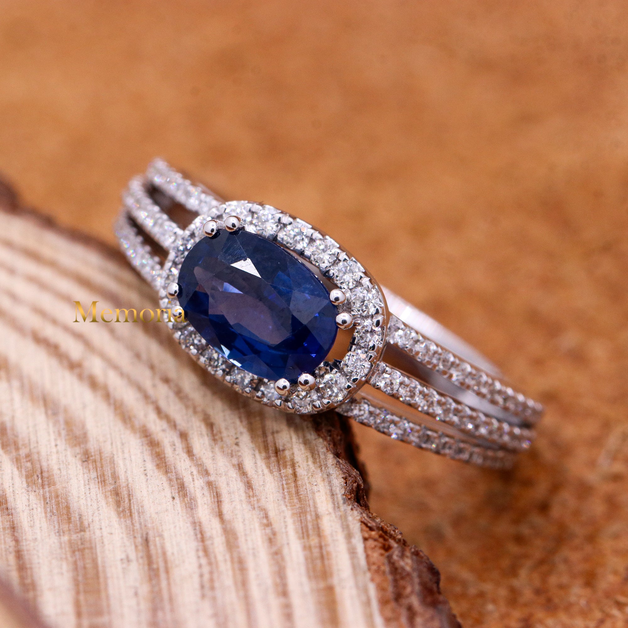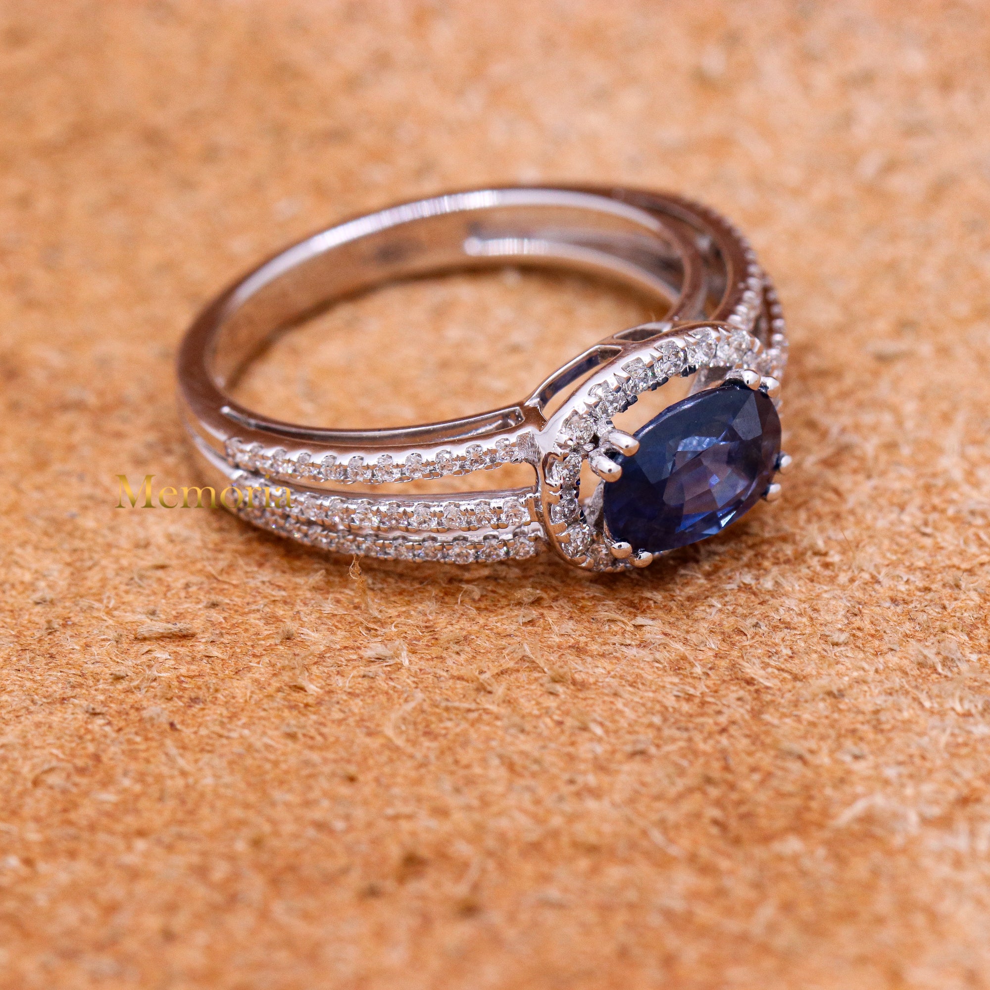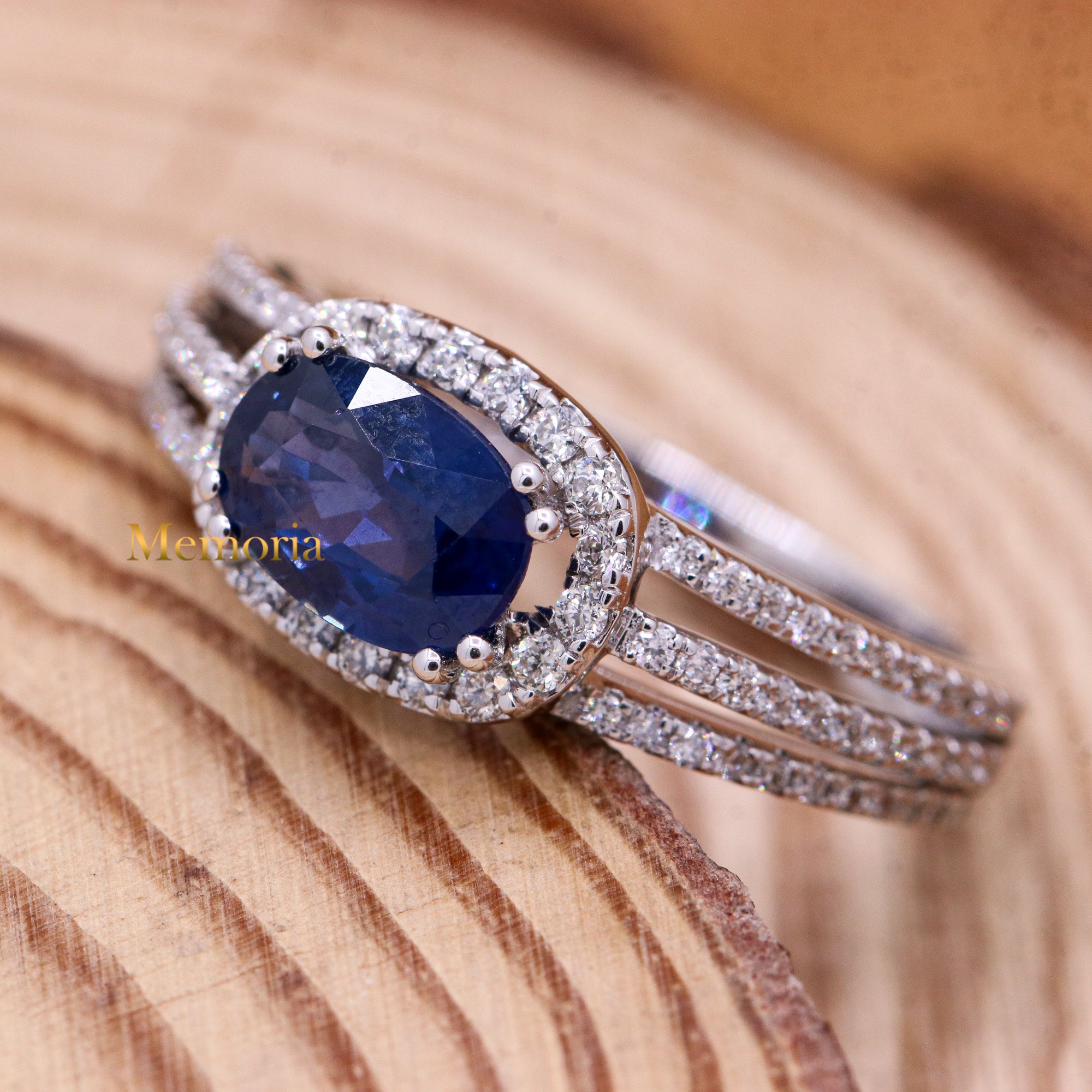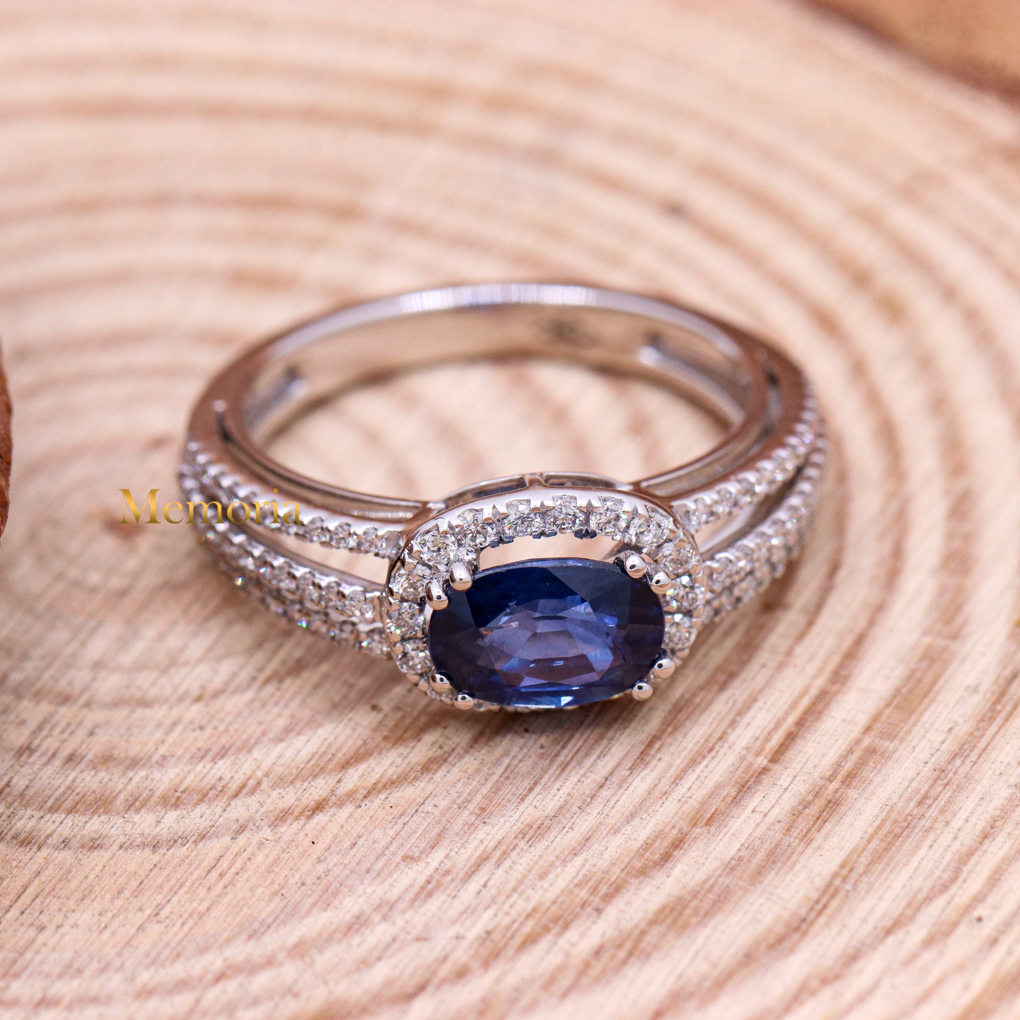 Buy Best Quality Certified Designer Natural Blue Sapphire Oval Shaped Faceted Cut Spiritual Chakra Healing Gemstone With Diamond Ring In 18k White Gold