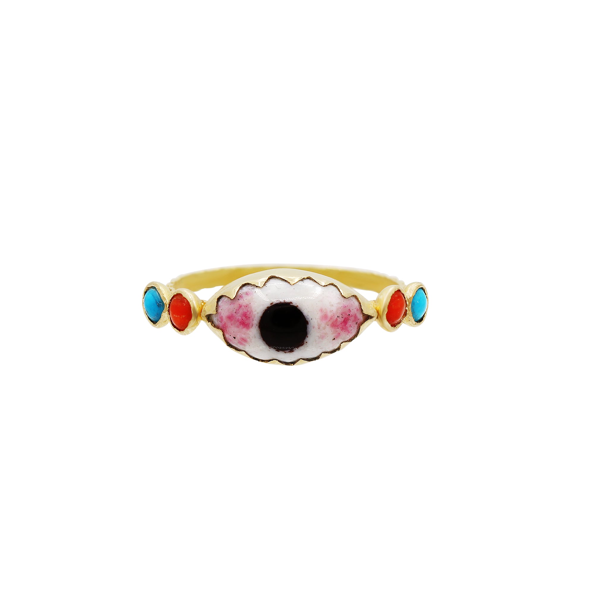 14k Gold Enamel EYE Shaped Beautiful Ring For Womens