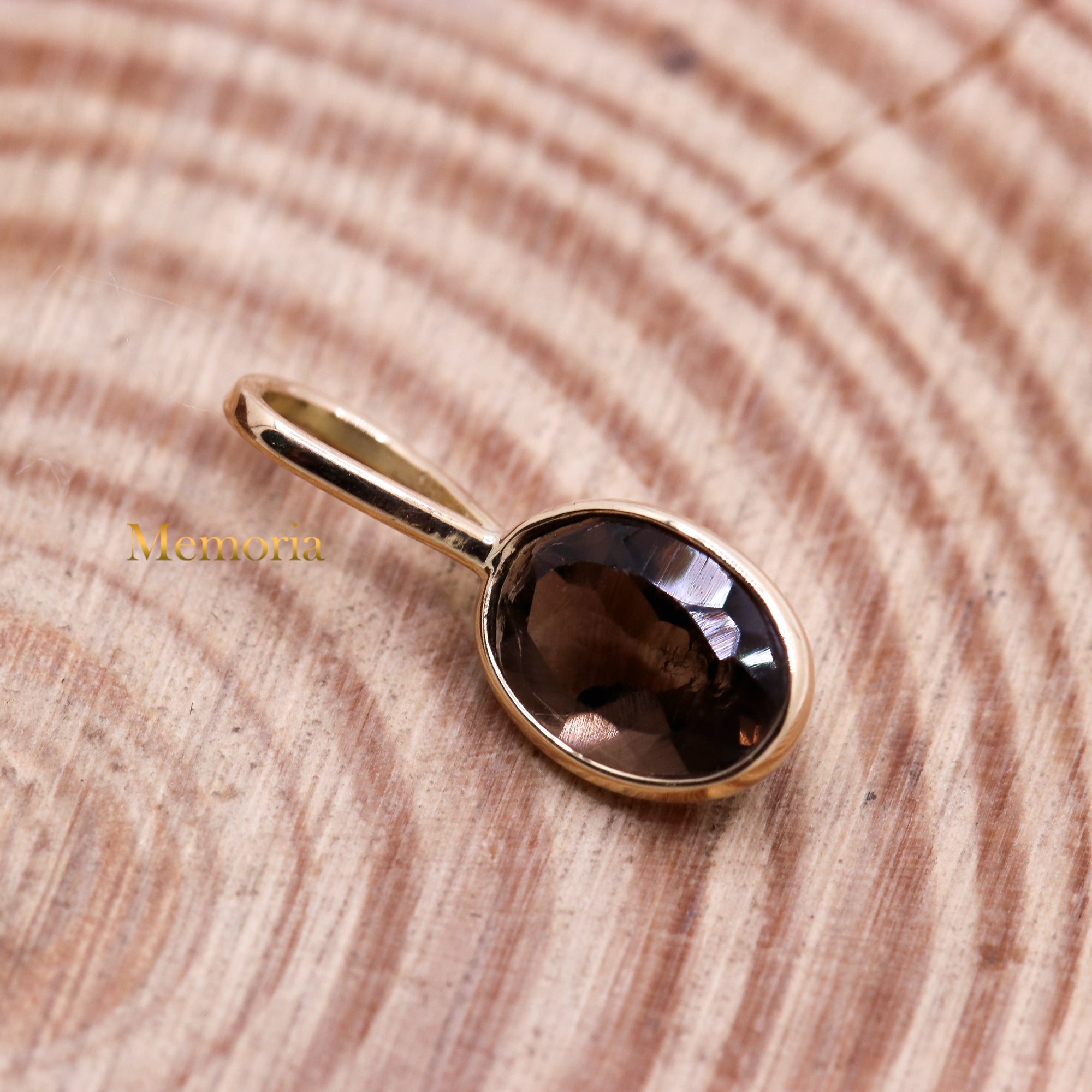14k Yellow Gold Natural Smoky Quartz Gemstone Pendant
