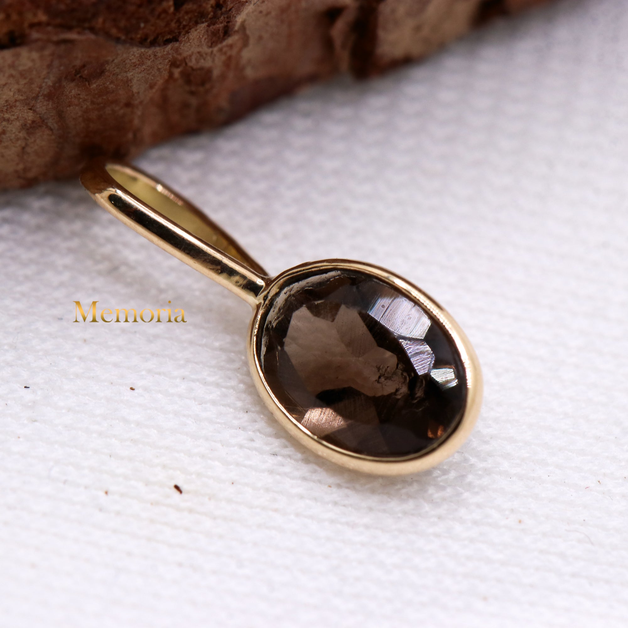 Buy Best Quality Certified Beautiful Natural Smoky Quartz Oval Shaped Faceted Cut Spiritual Chakra Healing Gemstone Pendant In 14k Yellow Gold