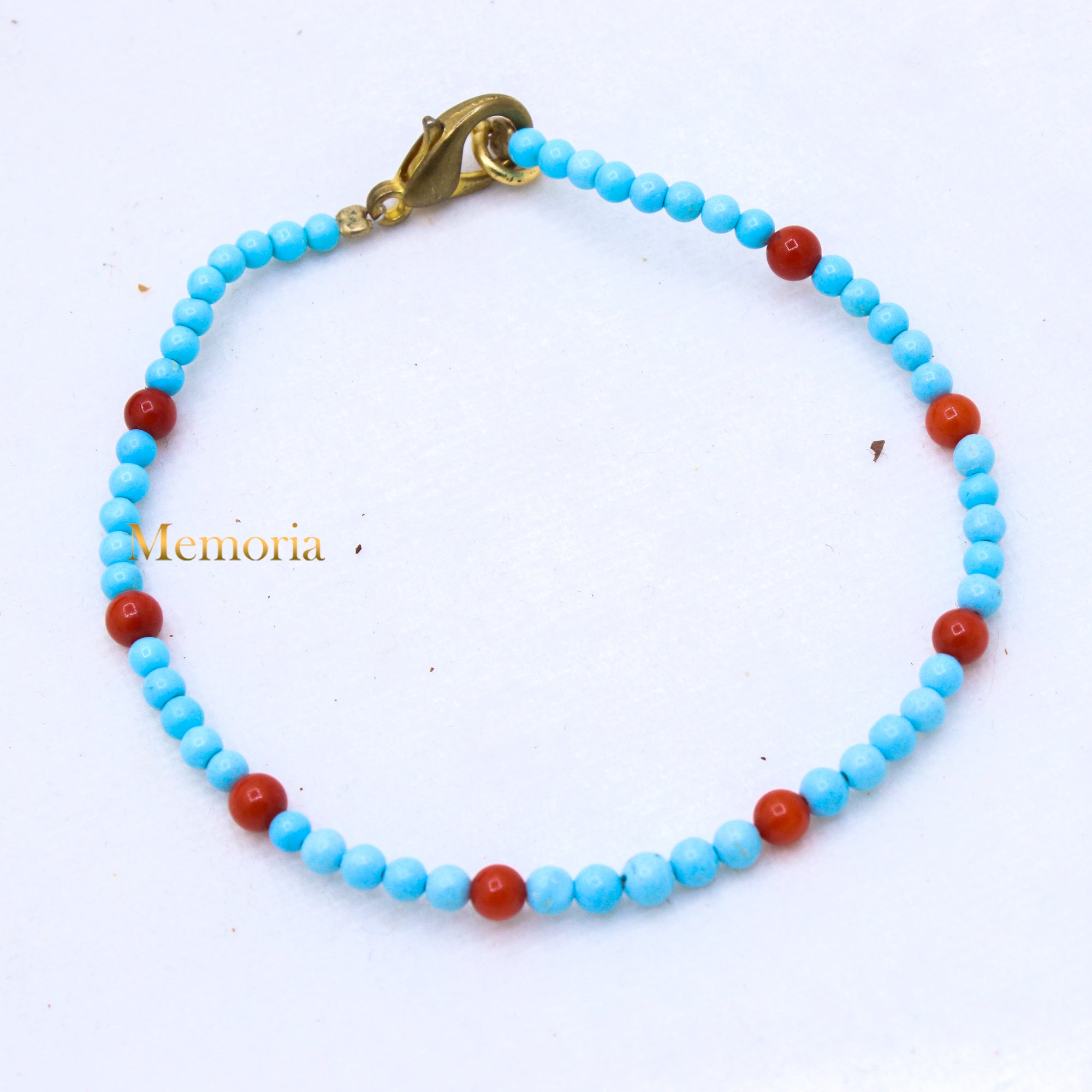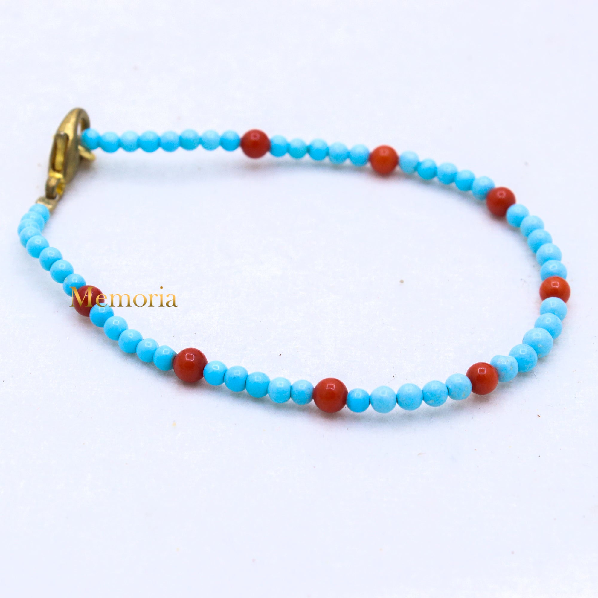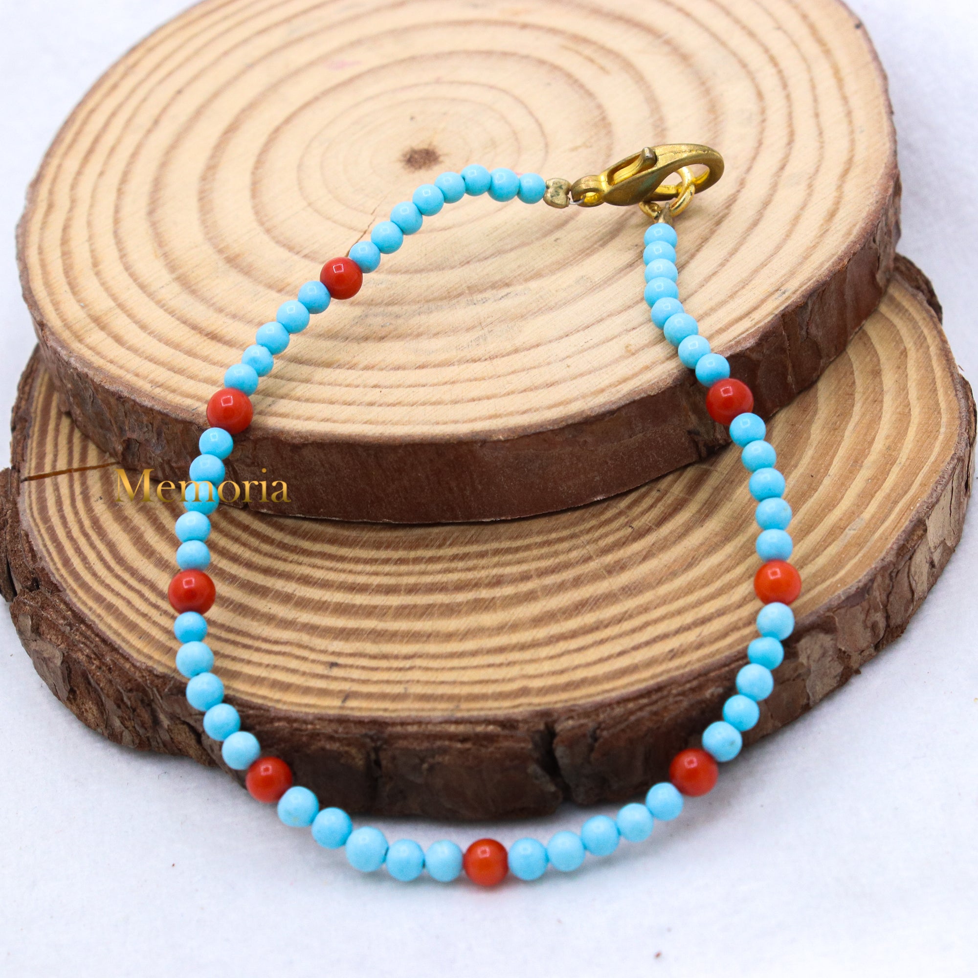 Buy Certified Handmade Natural Round Smooth Chakra Healing Turquoise & Coral Gemstone Beaded Silver Bracelet