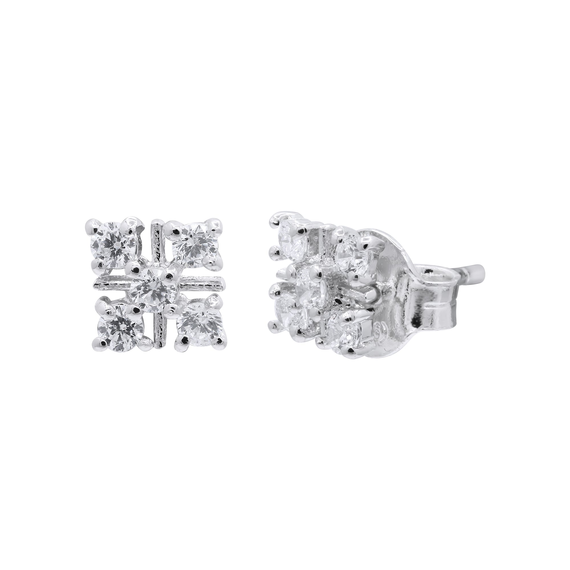 Floral Cubic Cubic Zircon 925 Sterling Silver Stud Earring