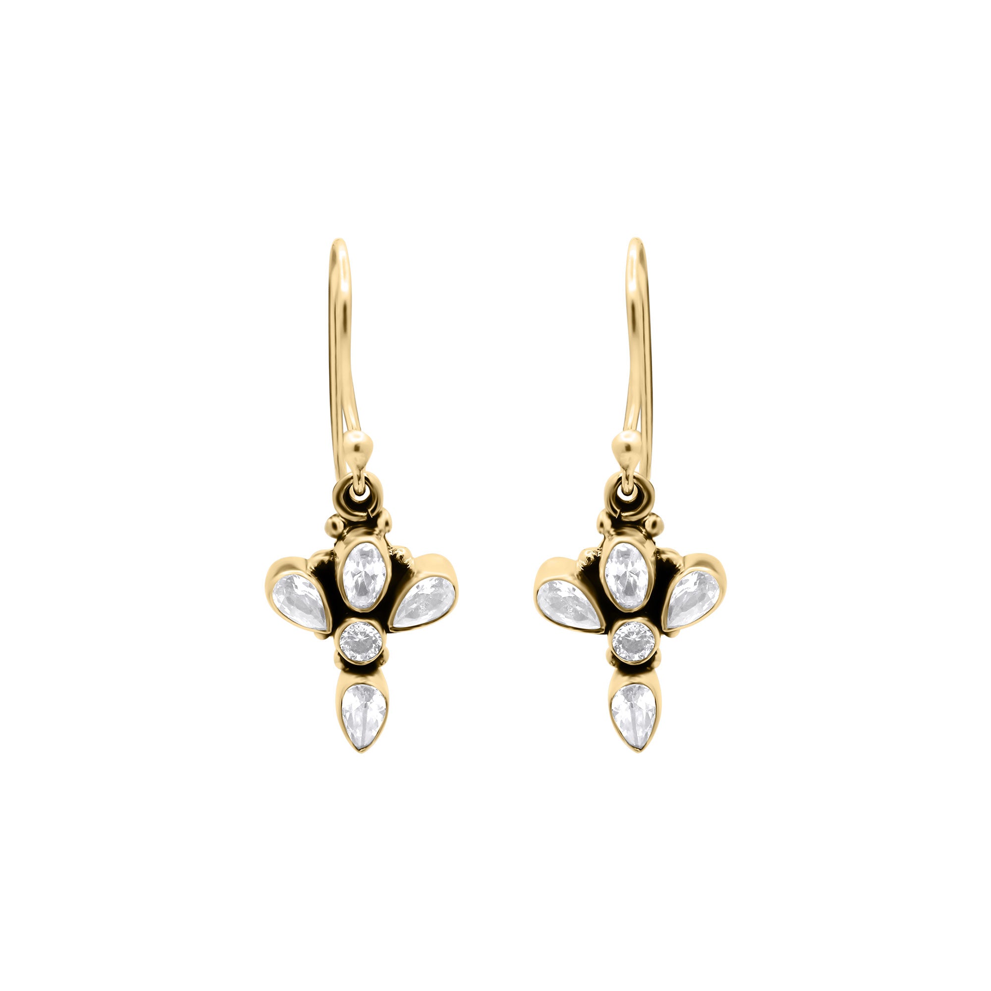 Natural White Topaz Gemstone 925 Sterling Silver Gold Plated Earring Pendant Set