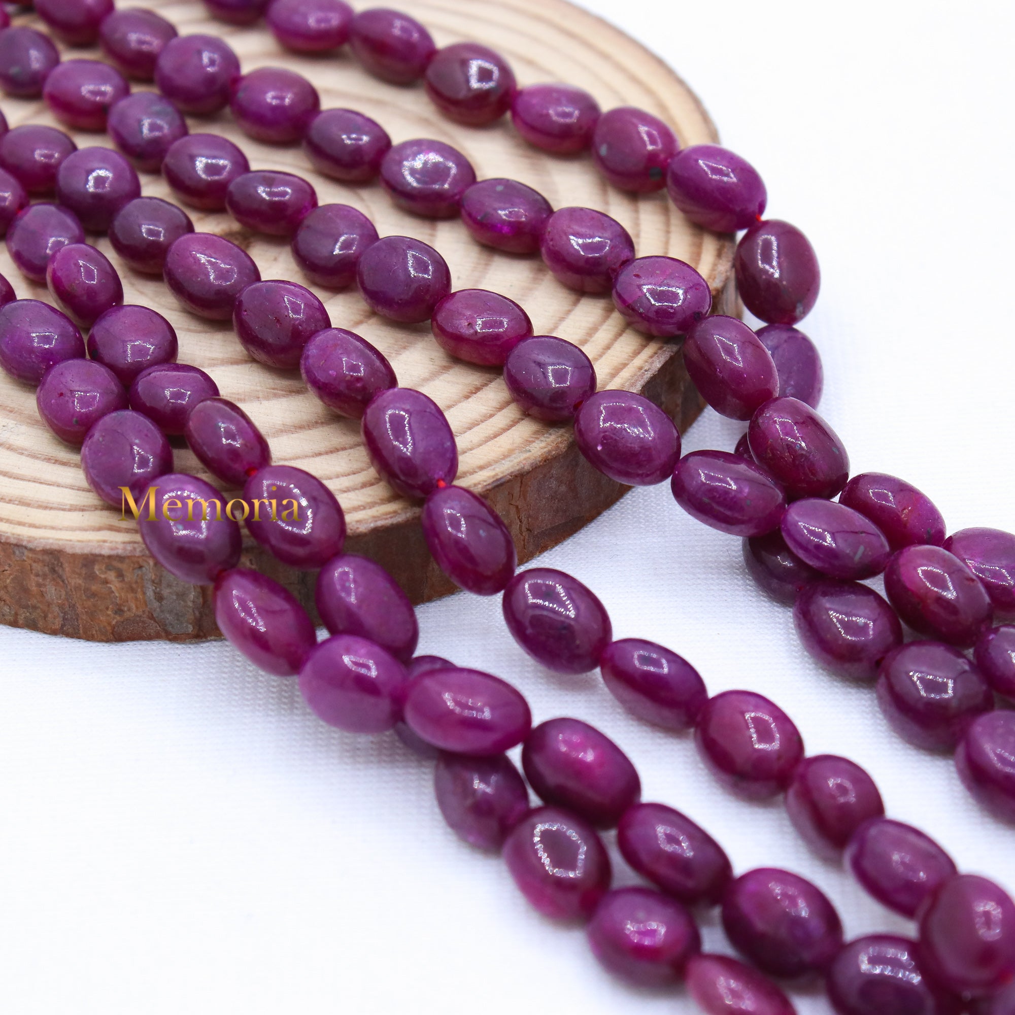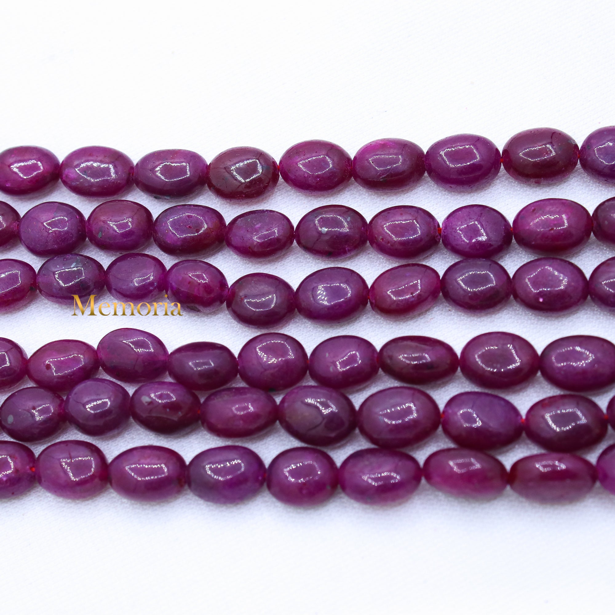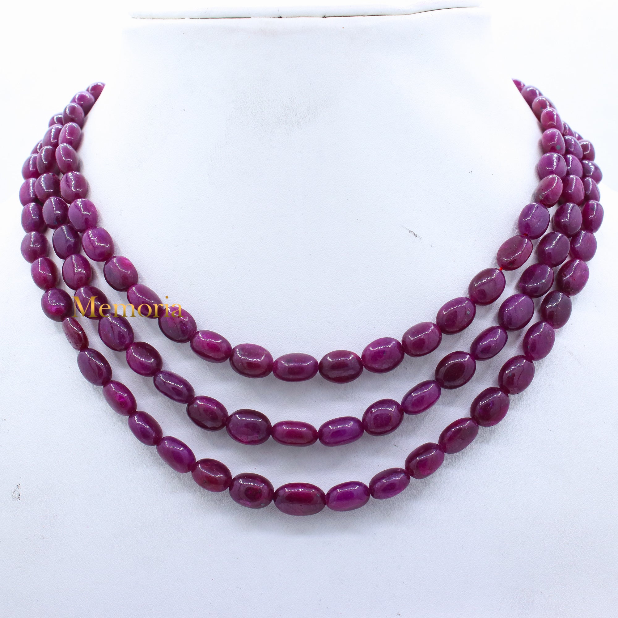 3 Line Natural Ruby Oval Cabochon Spiritual Healing Gemstone Beads Strand Necklace