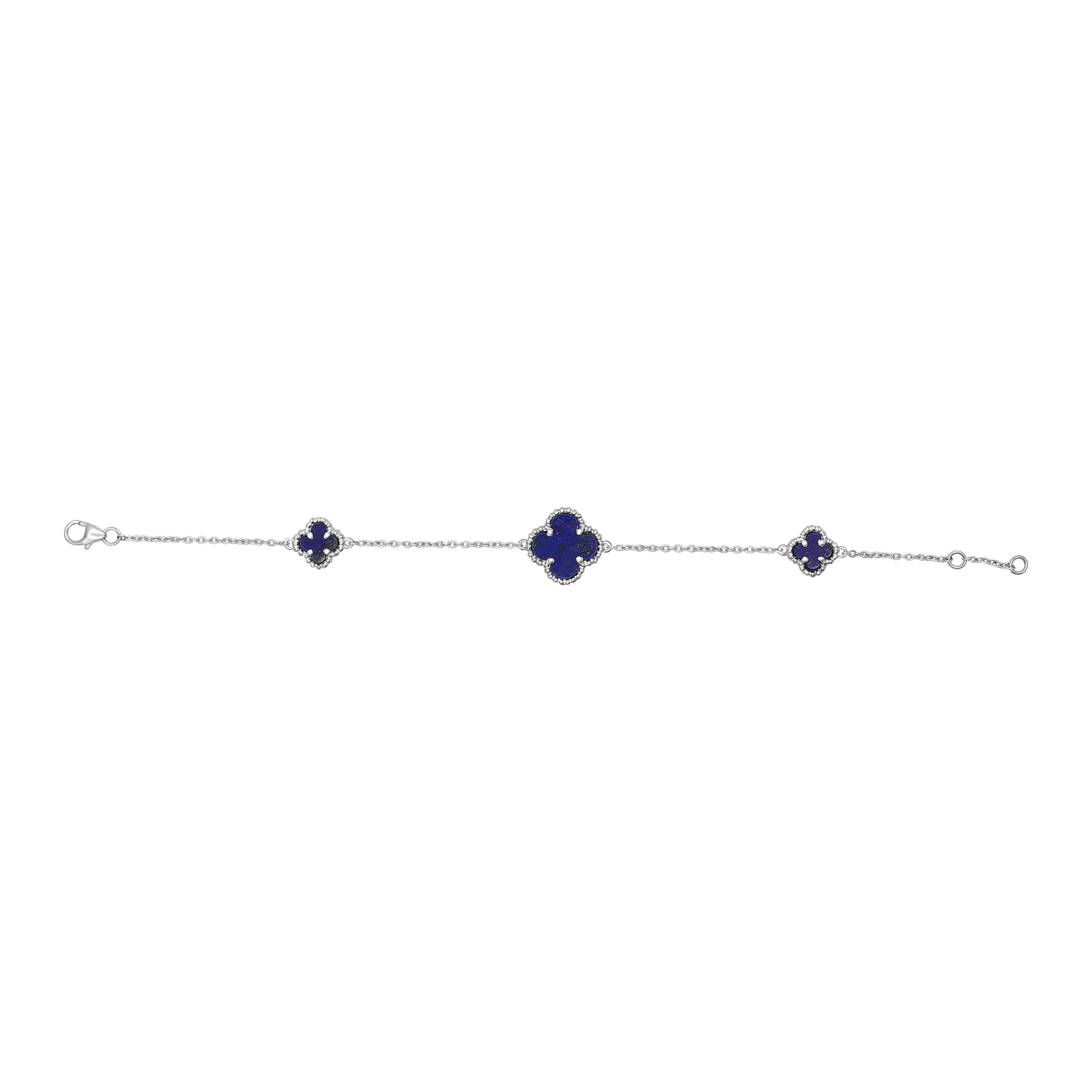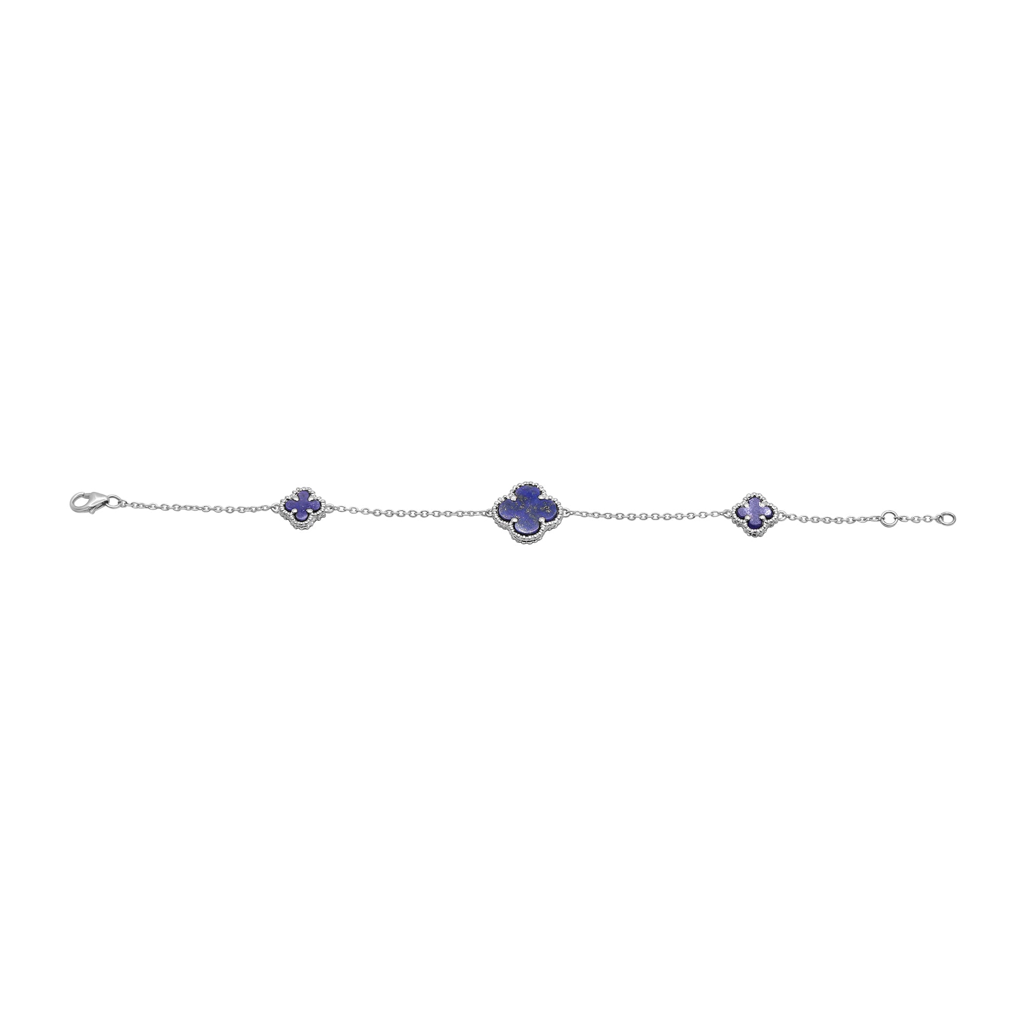 Item Type: 925 Silver Clover Shape Lapis Lazuli Gemstone Bracelet
