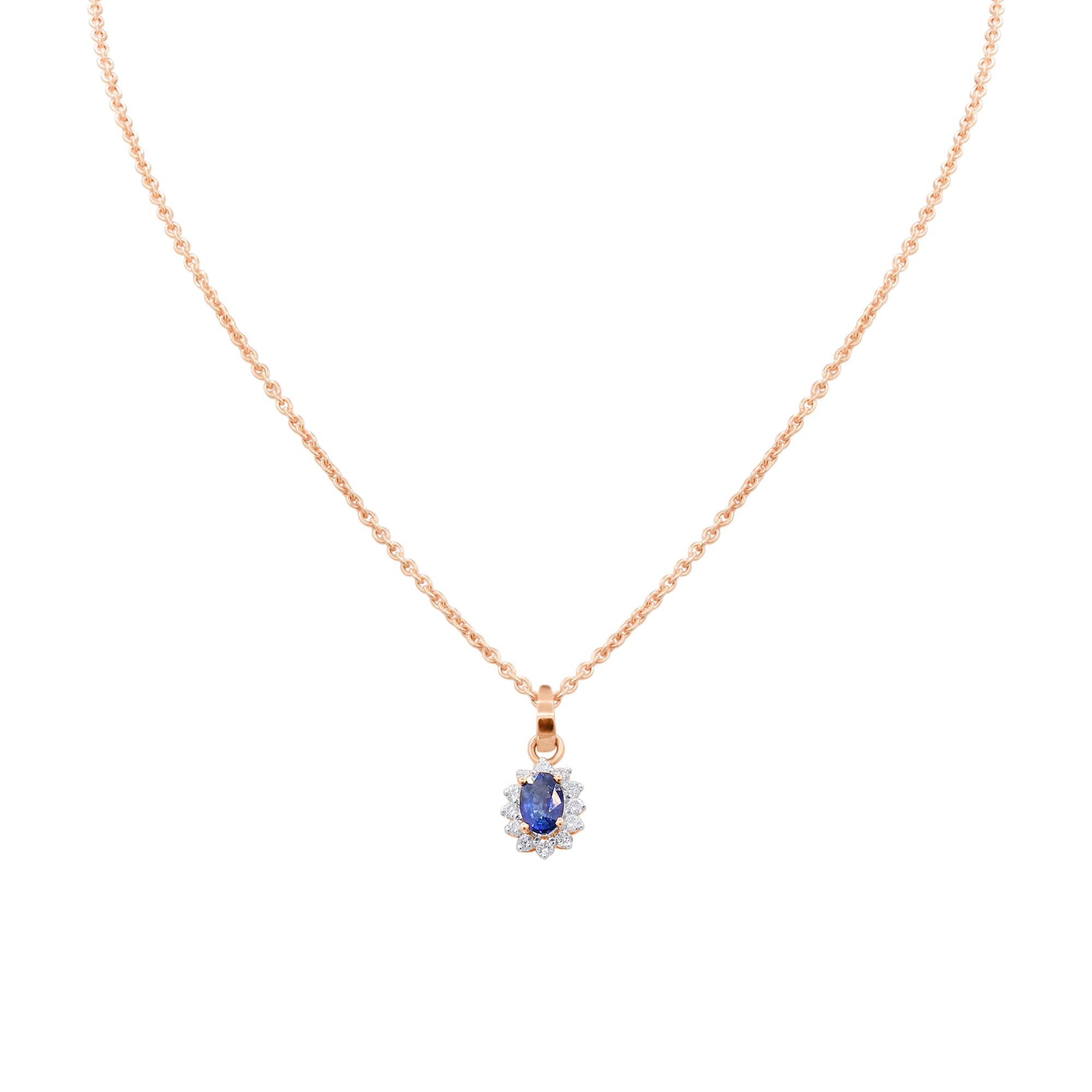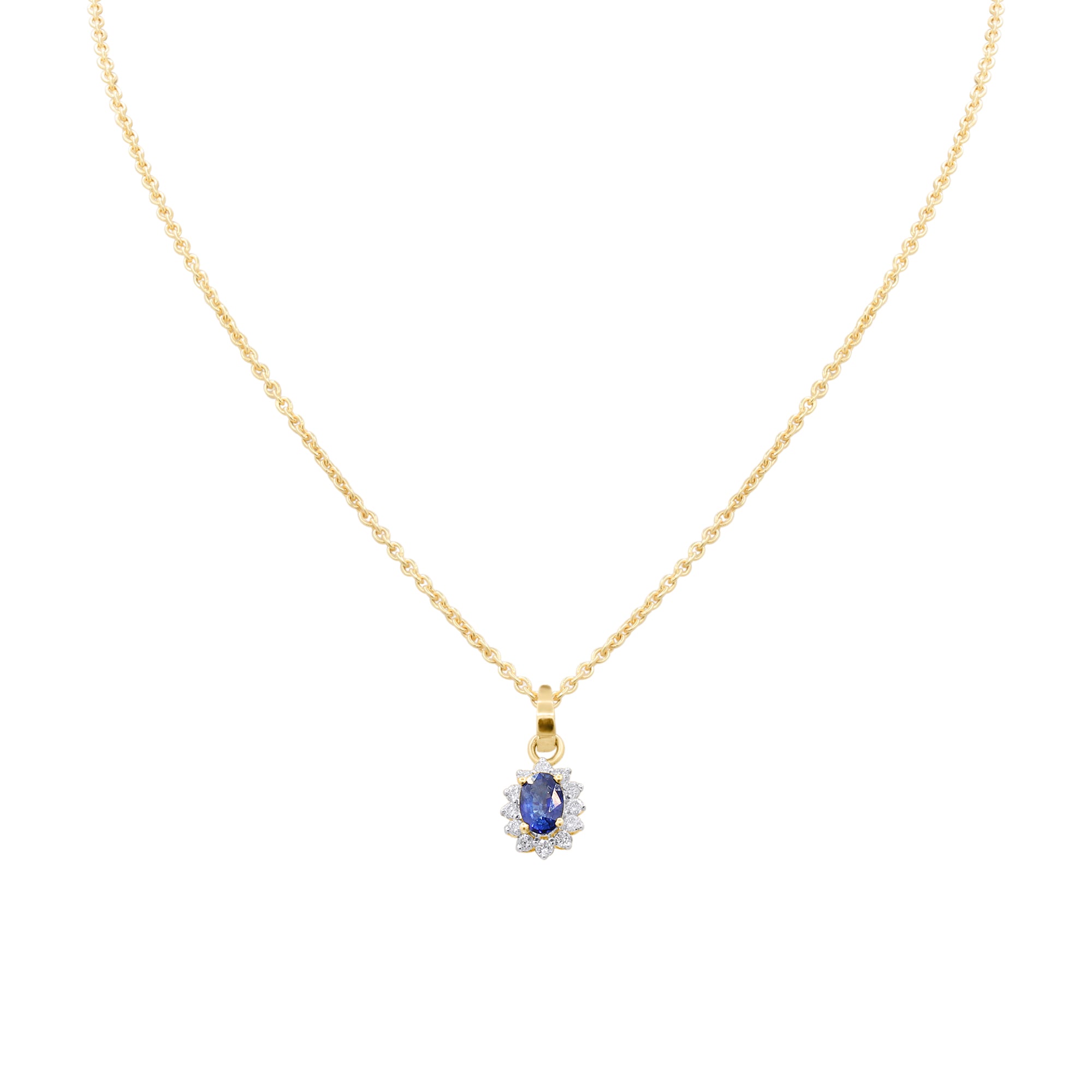 Natural Sapphire Gemstone and Diamond 14k Yellow Gold Pendant With Chain