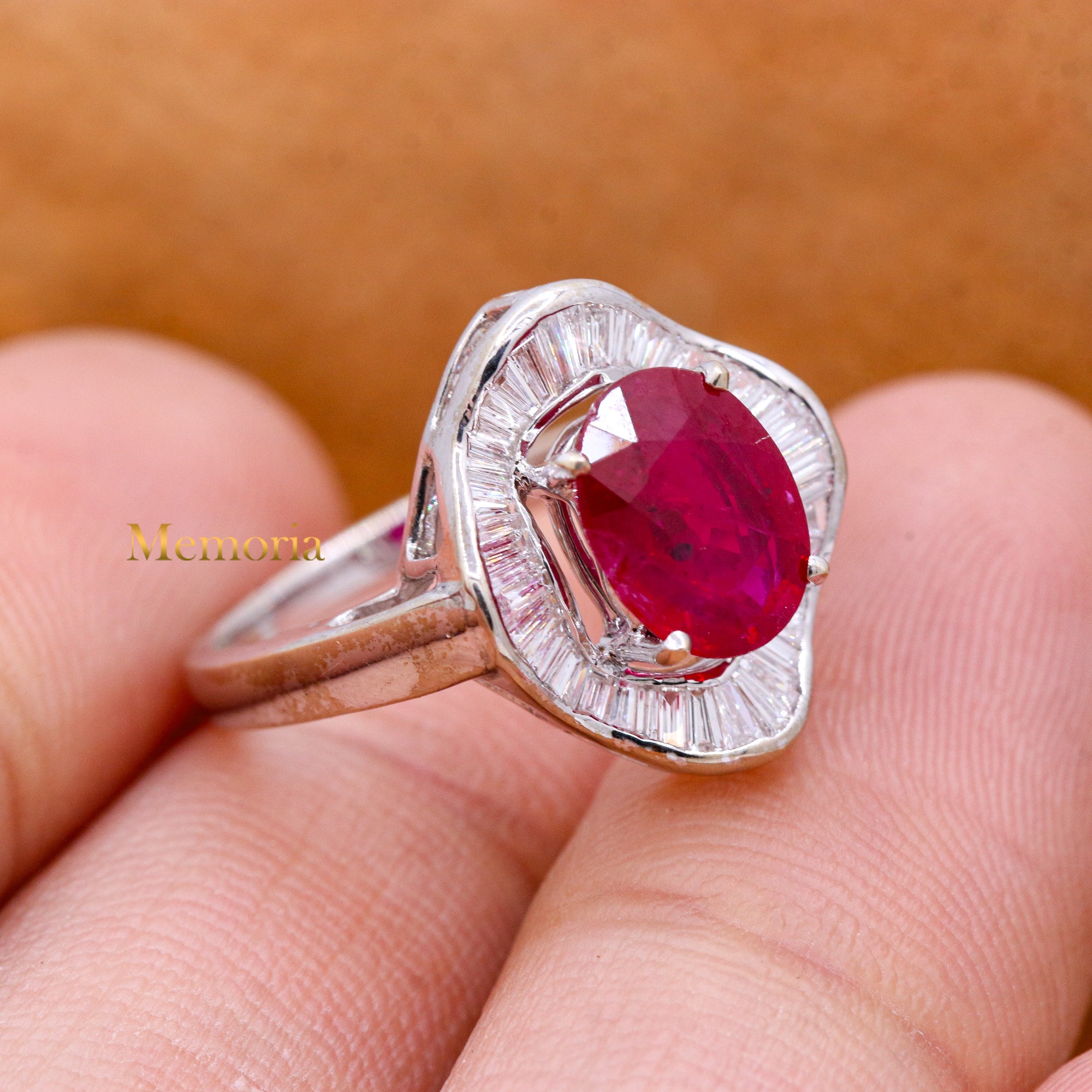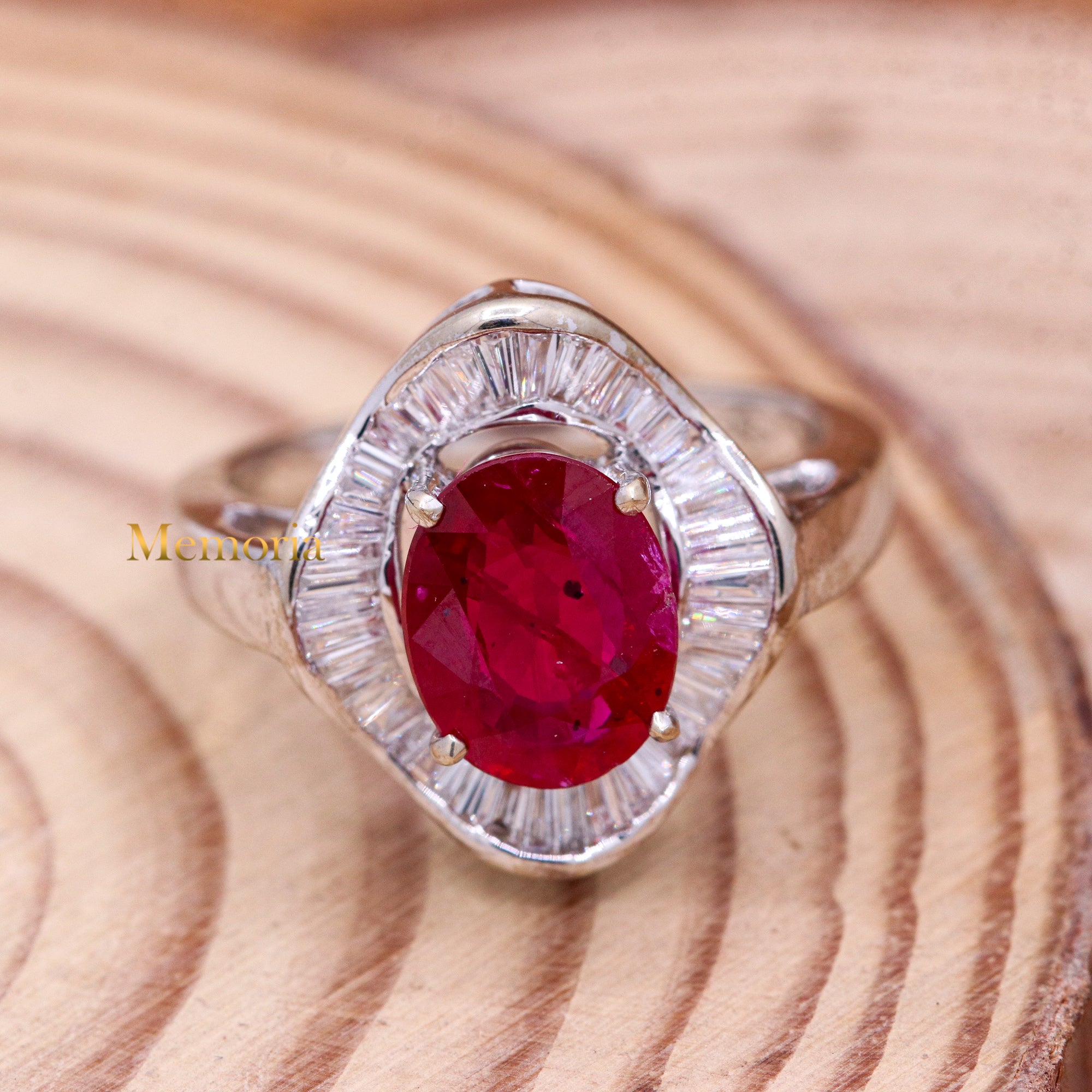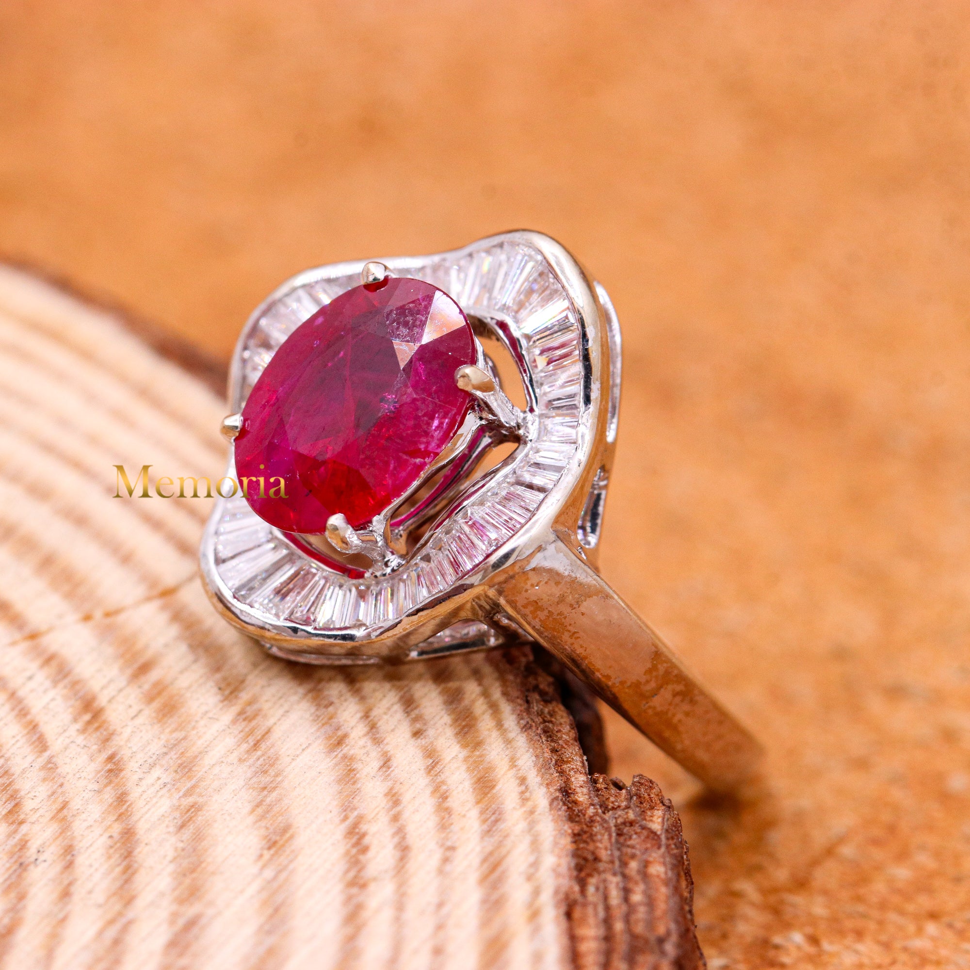 Buy Best Quality Certified Designer Natural Ruby Oval Shaped Faceted Cut Spiritual Chakra Healing Gemstone With Diamond Ring In 18k White Gold