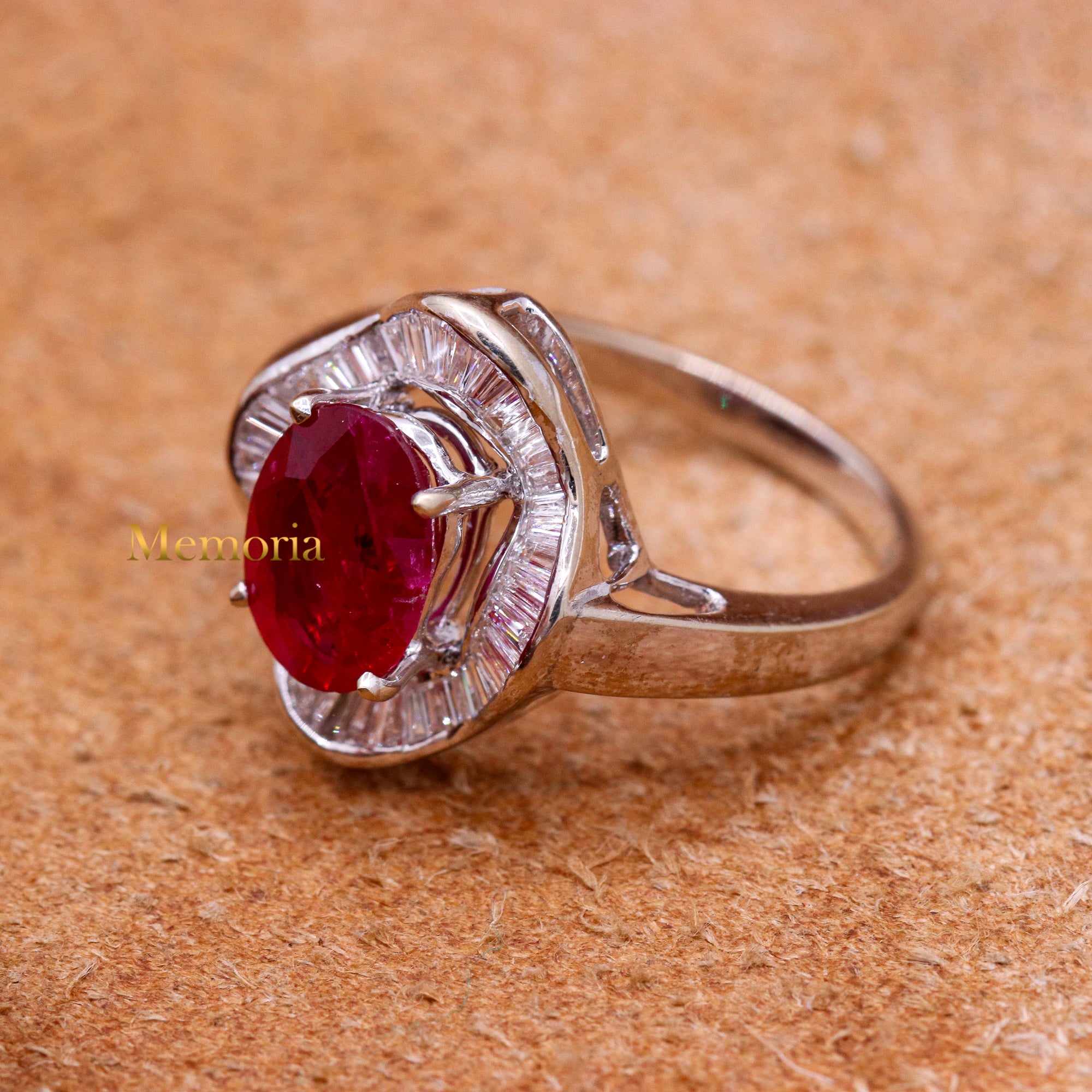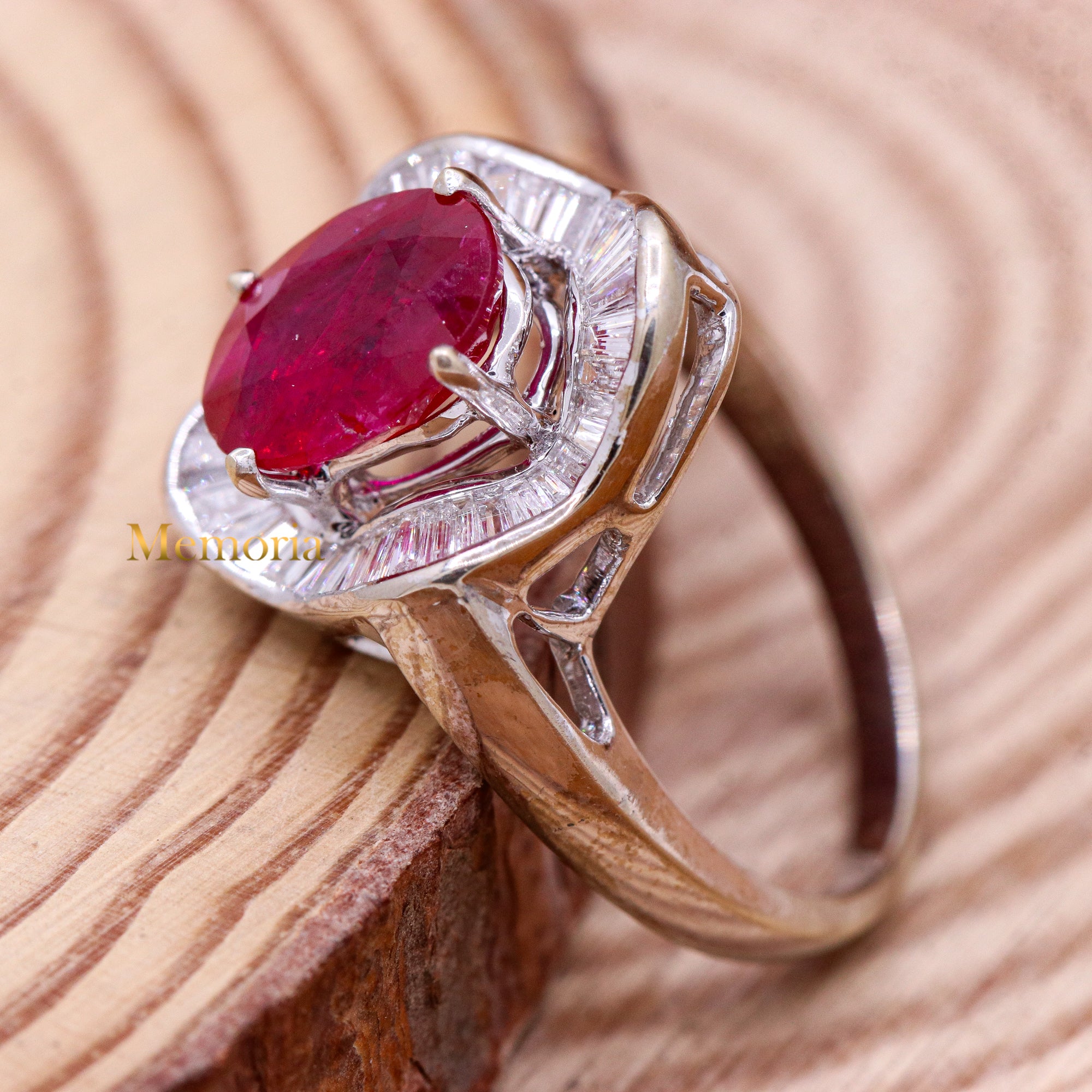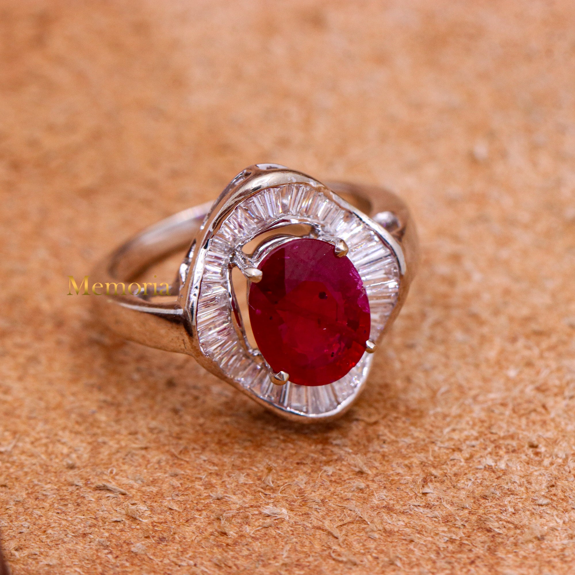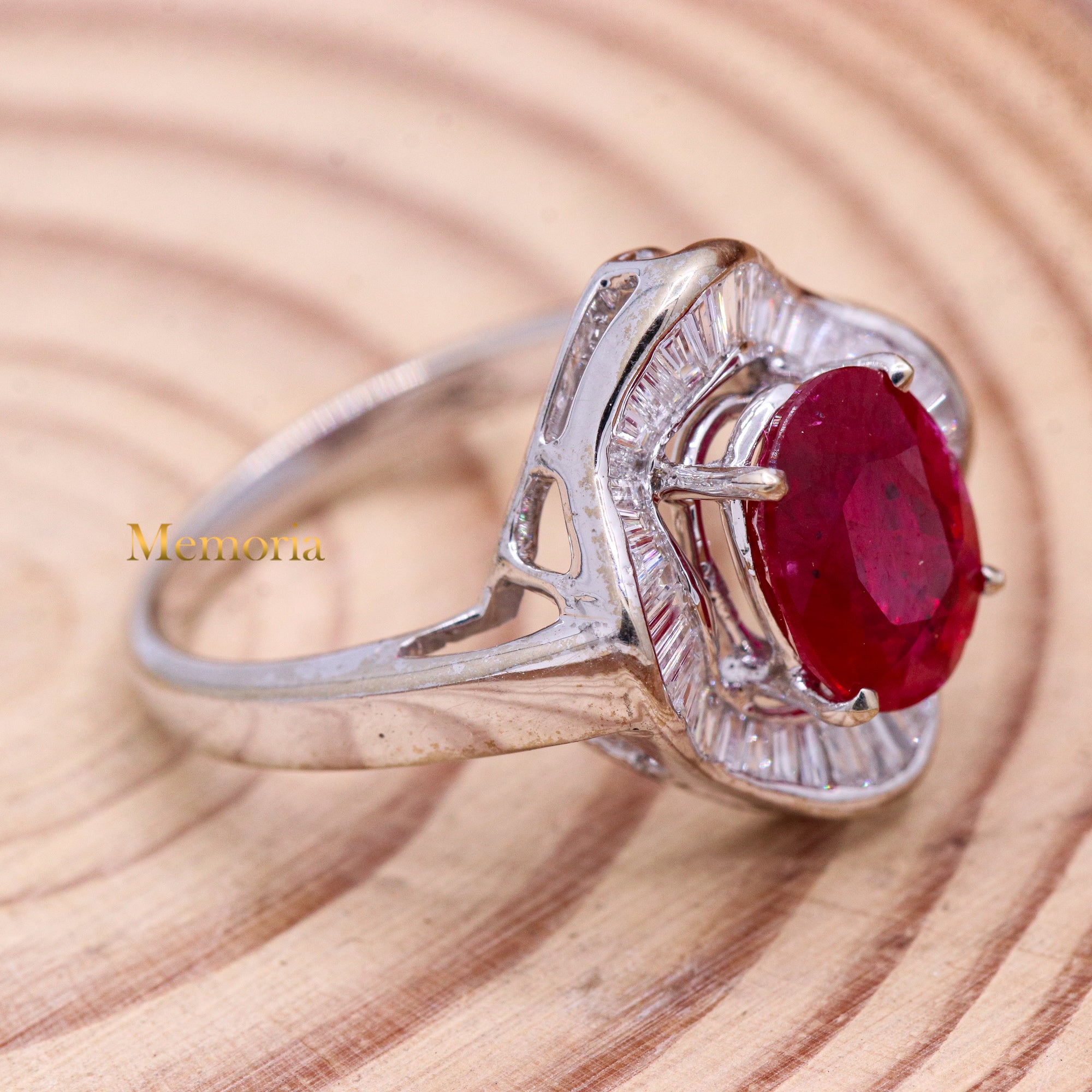 Buy Best Quality Certified Designer Natural Ruby Oval Shaped Faceted Cut Spiritual Chakra Healing Gemstone With Diamond Ring In 18k White Gold