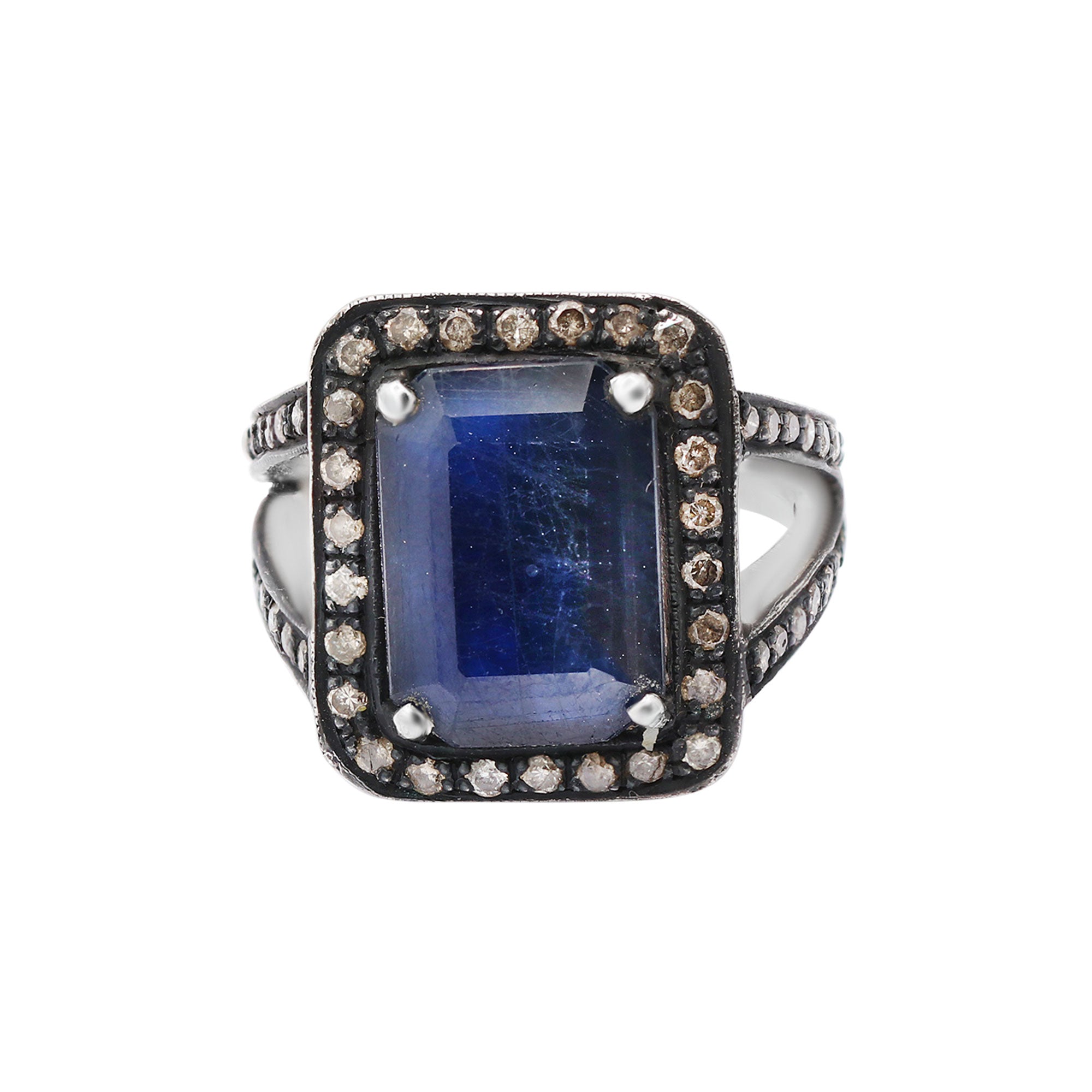 Item Type: Blue Sapphire and Diamond 925 Silver Ring