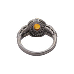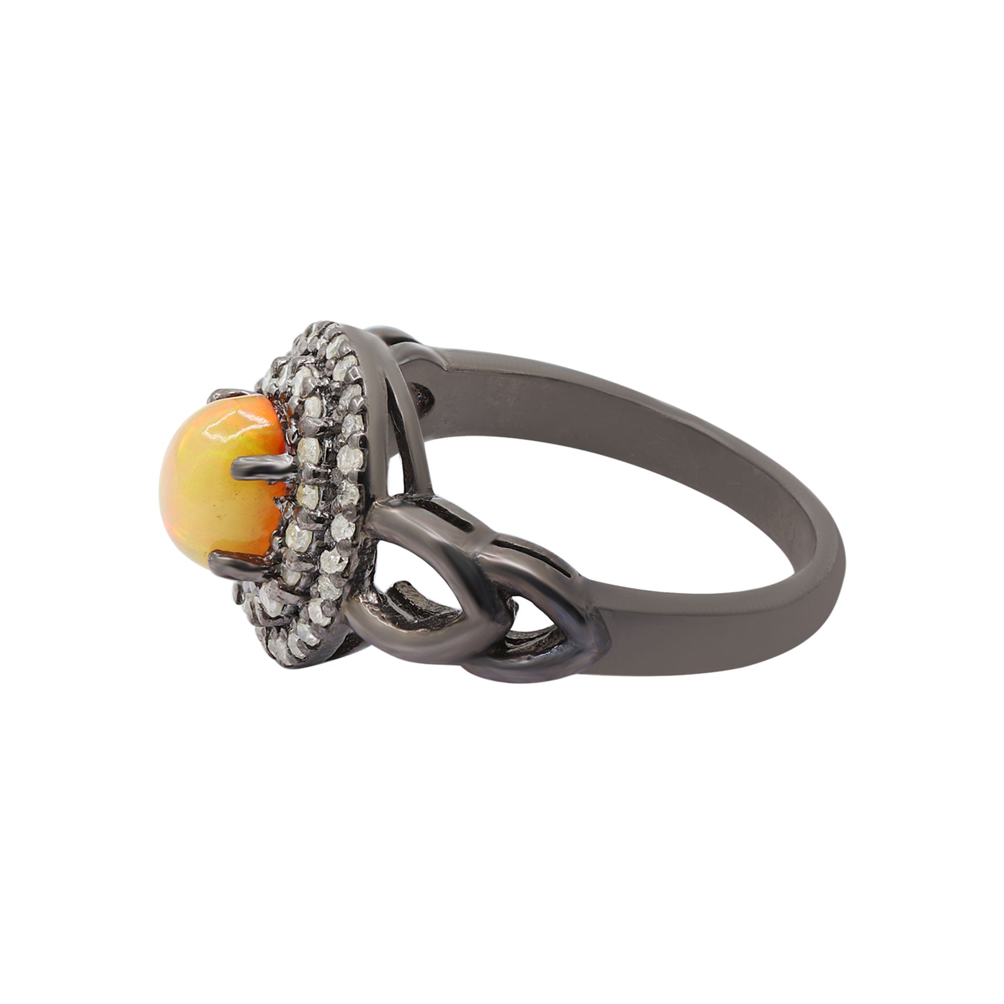 Black Rhodium Natural Opal Gemstone and Diamond 925 Sterling Silver Ring