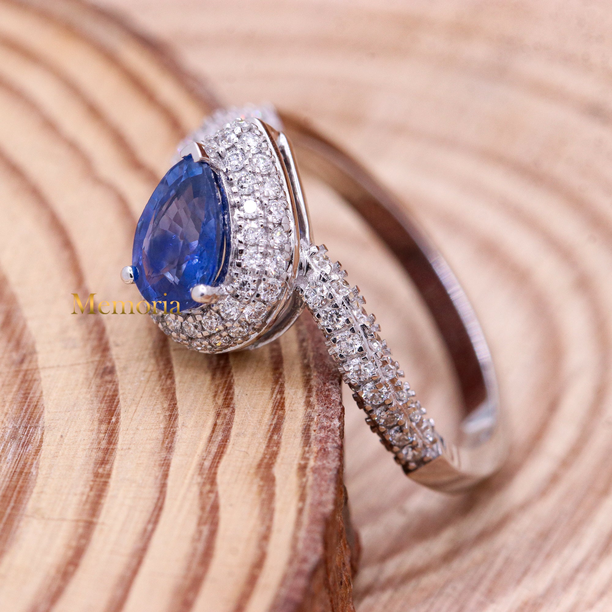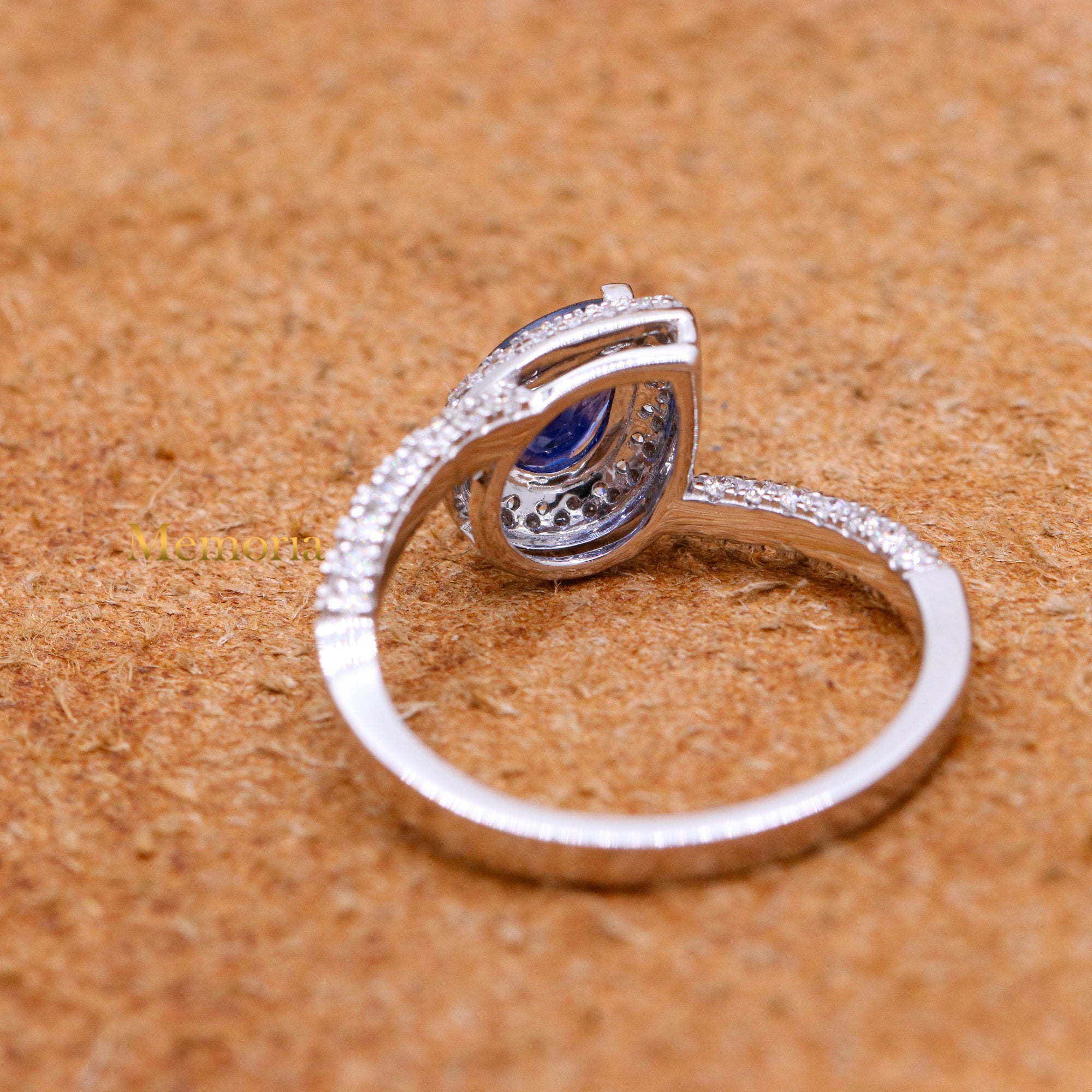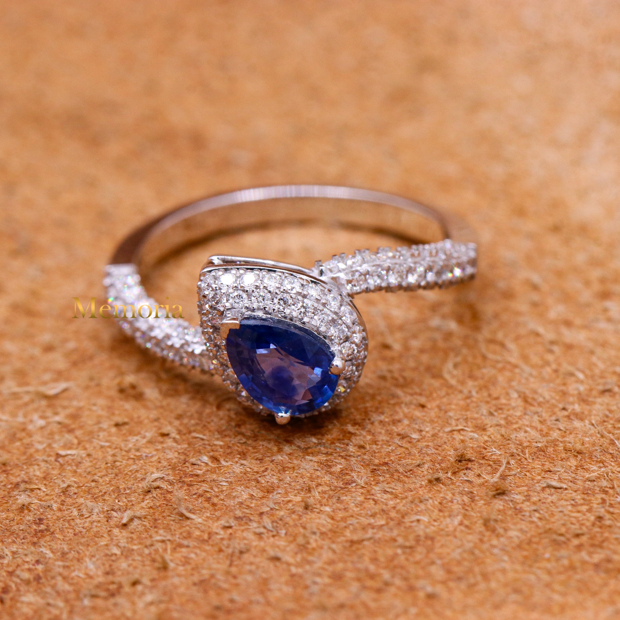 Buy Best Quality Certified Designer Natural Blue Sapphire Pear Shaped Faceted Cut Spiritual Chakra Healing Gemstone With Diamond Ring In 18k White Gold