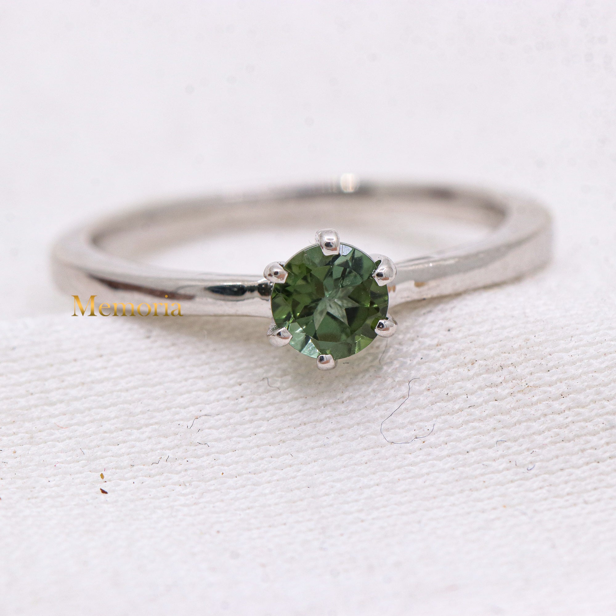 Buy Certified Handmade Natural Green Tourmaline Round Faceted Chakra Healing Gemstone 925 Sterling Silver Gold Plated Ring