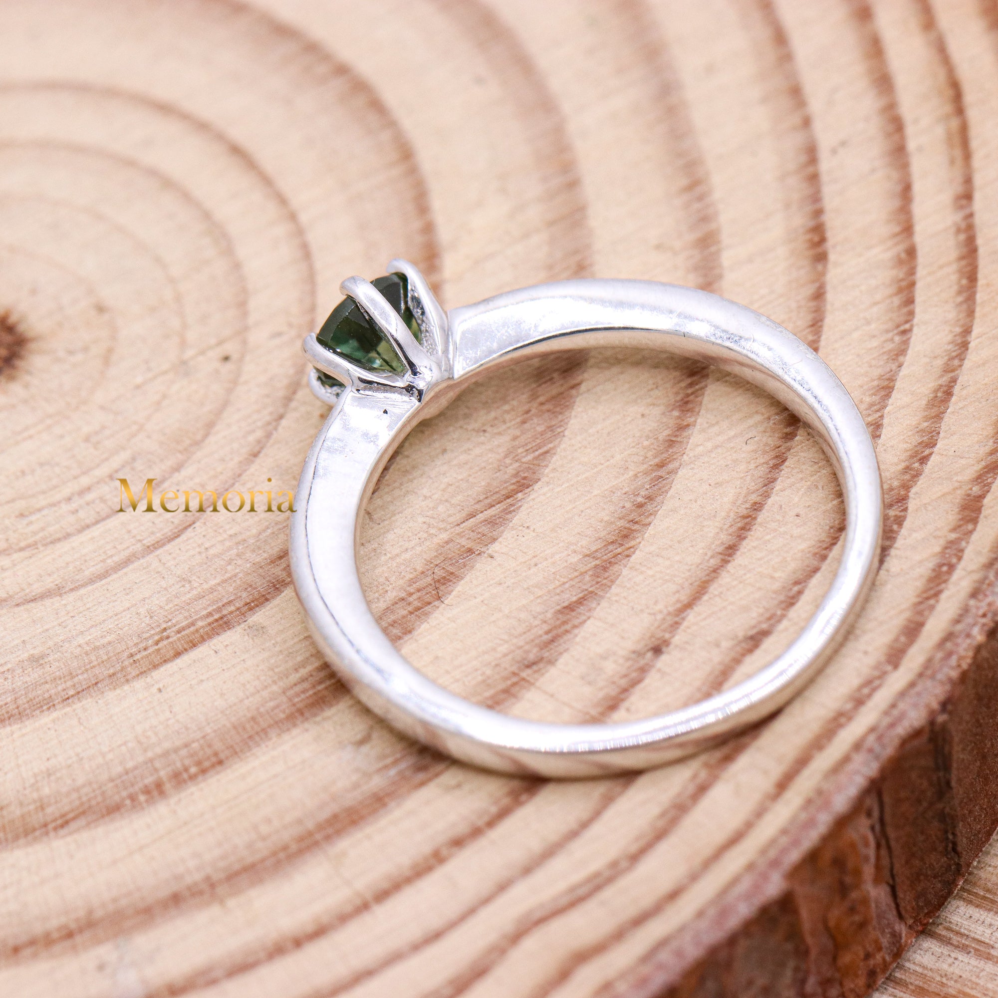 Natural Green Tourmaline 925 Sterling Silver Plain Ring