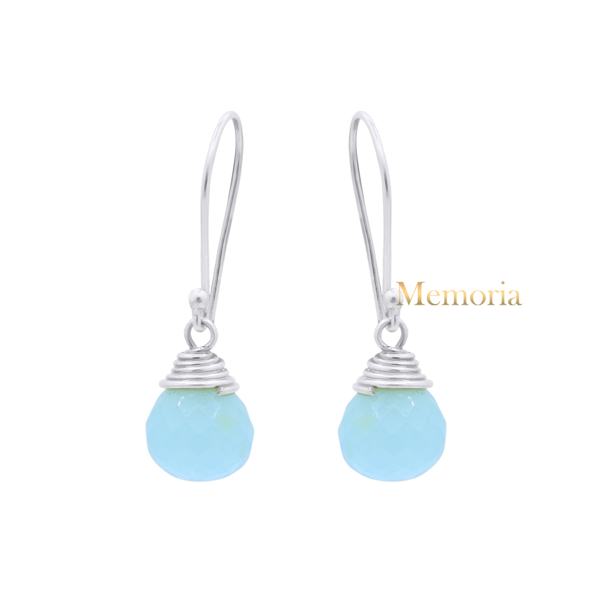 Natural Chalcedony Gemstone 925 Sterling Silver Drop Earring