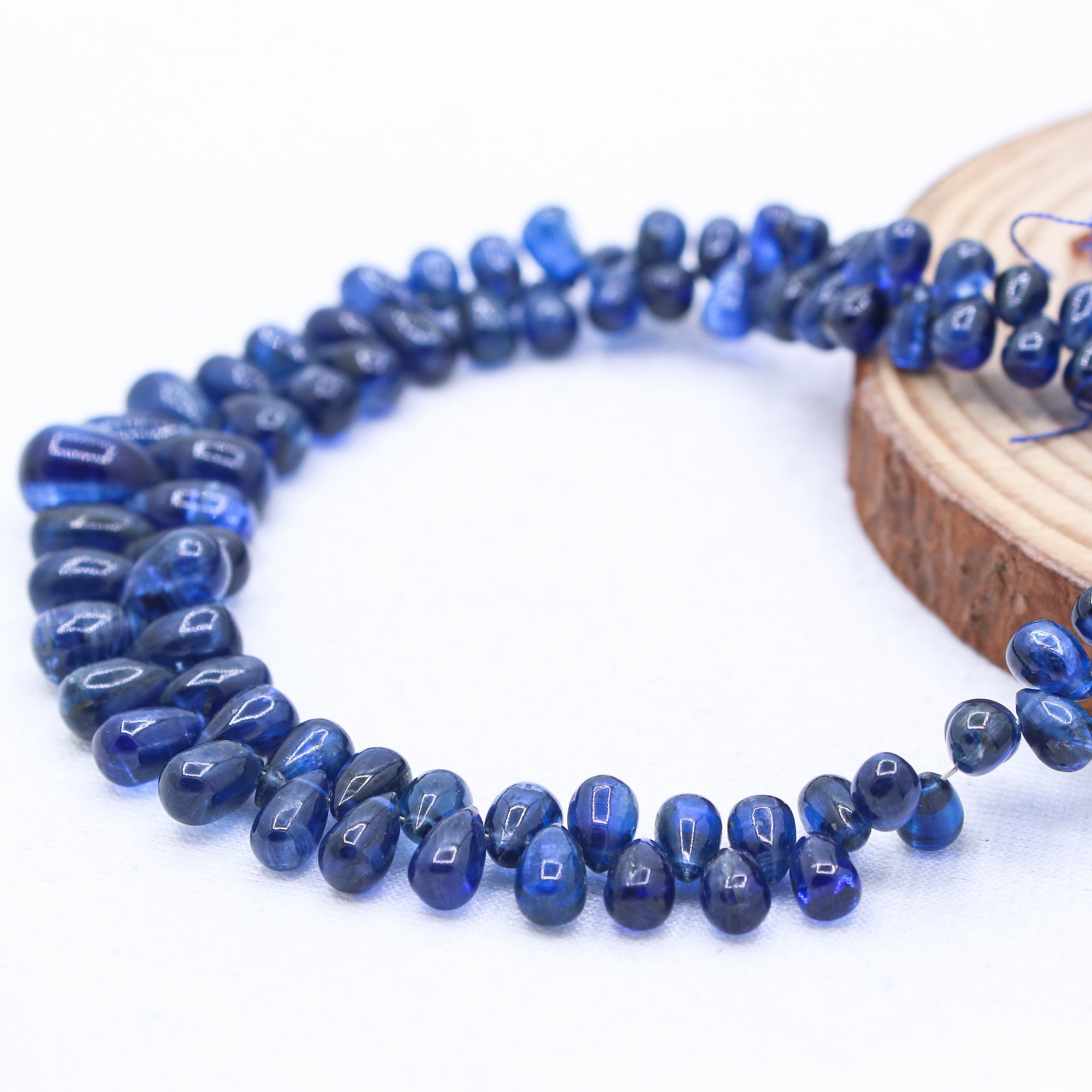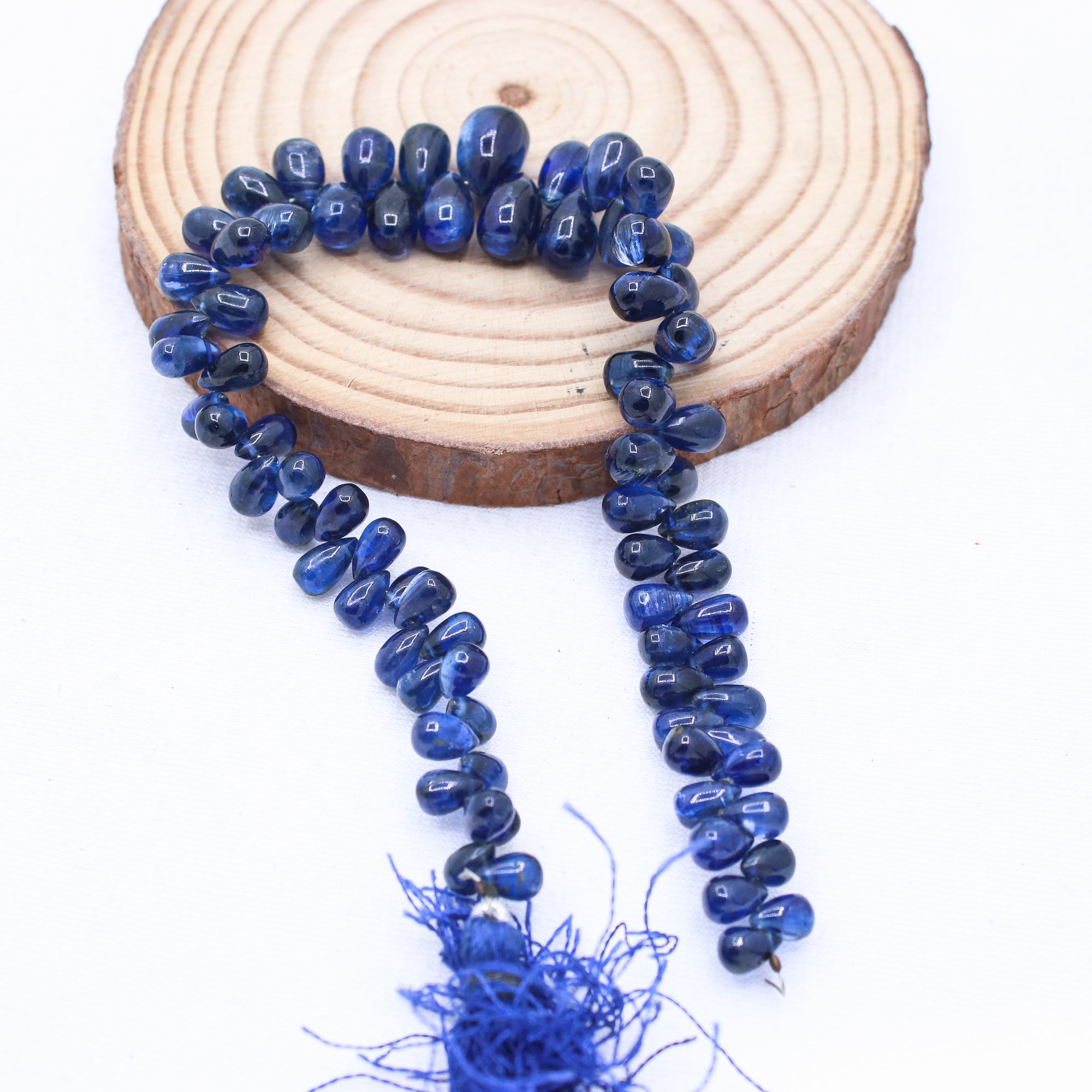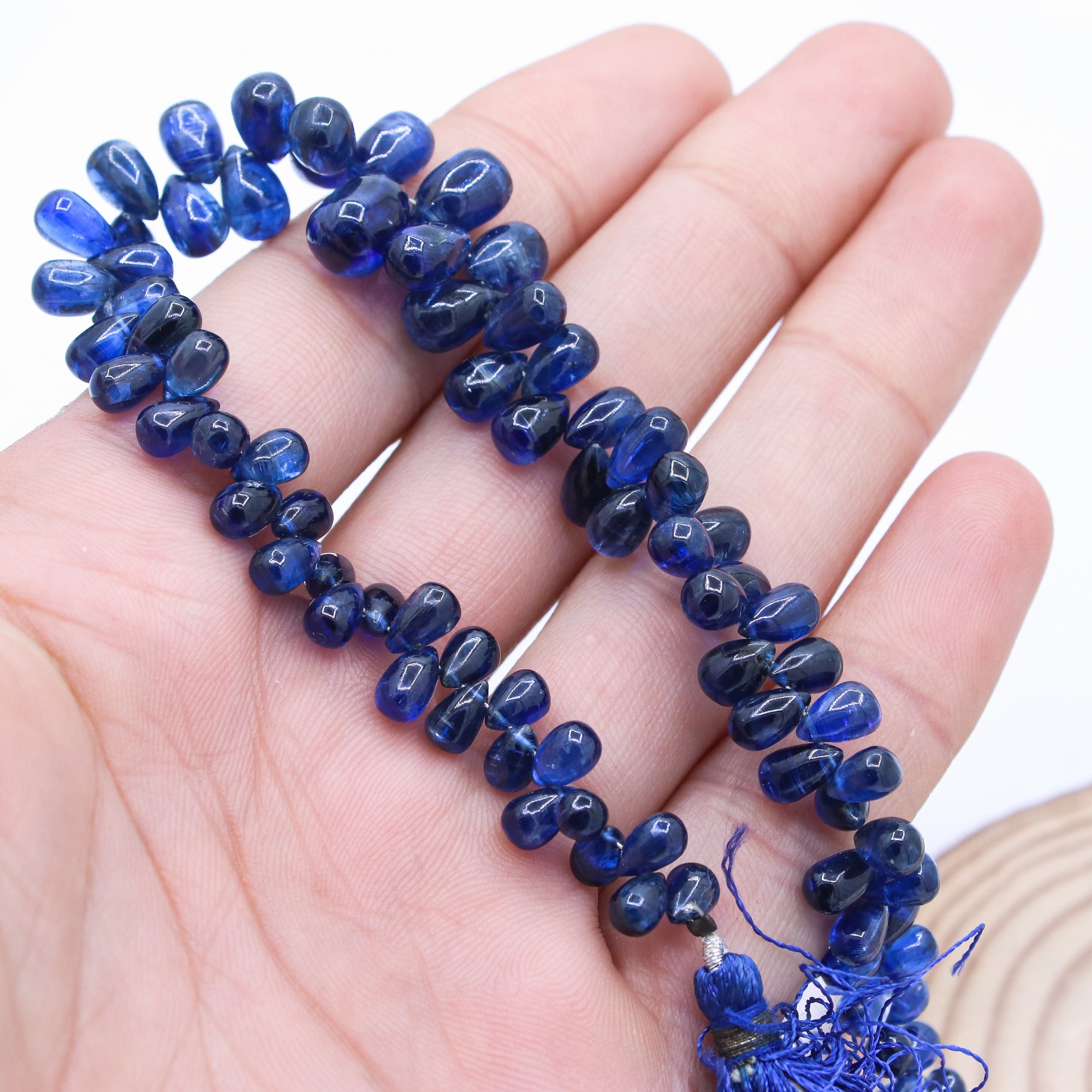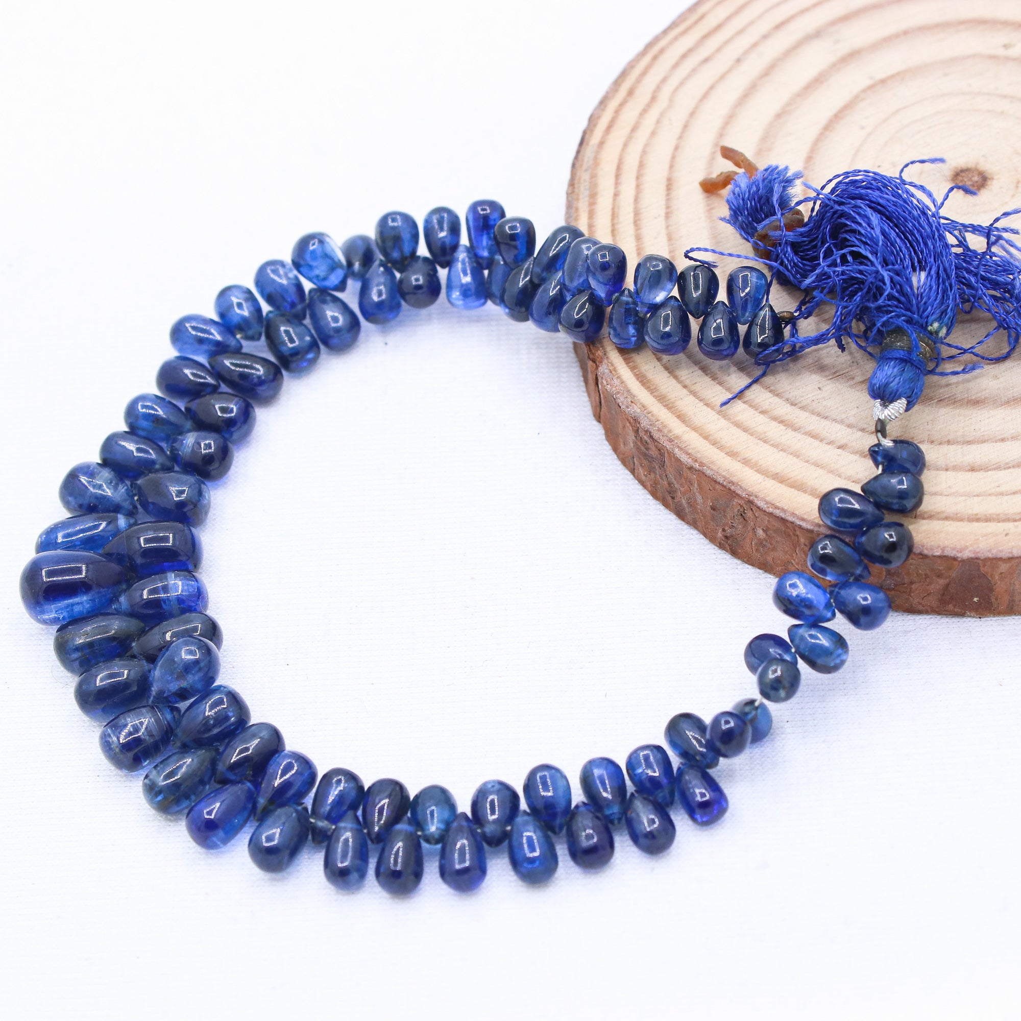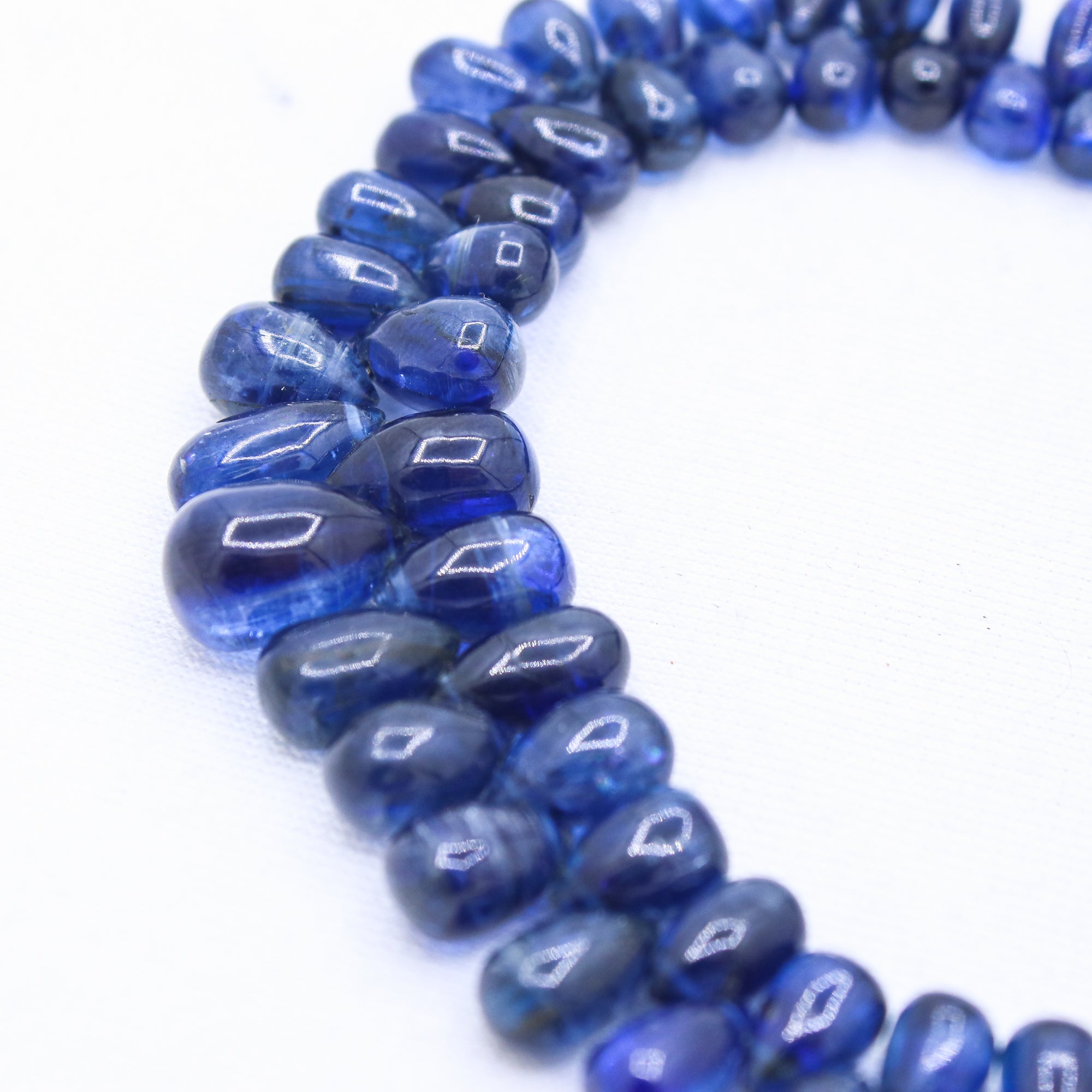 1 Layered Natural Blue Sapphire Teardrop Cabochon Cut Spiritual Healing Gemstone Beads Strand Necklace