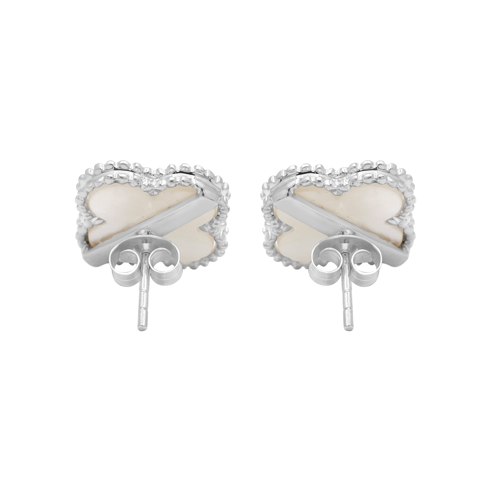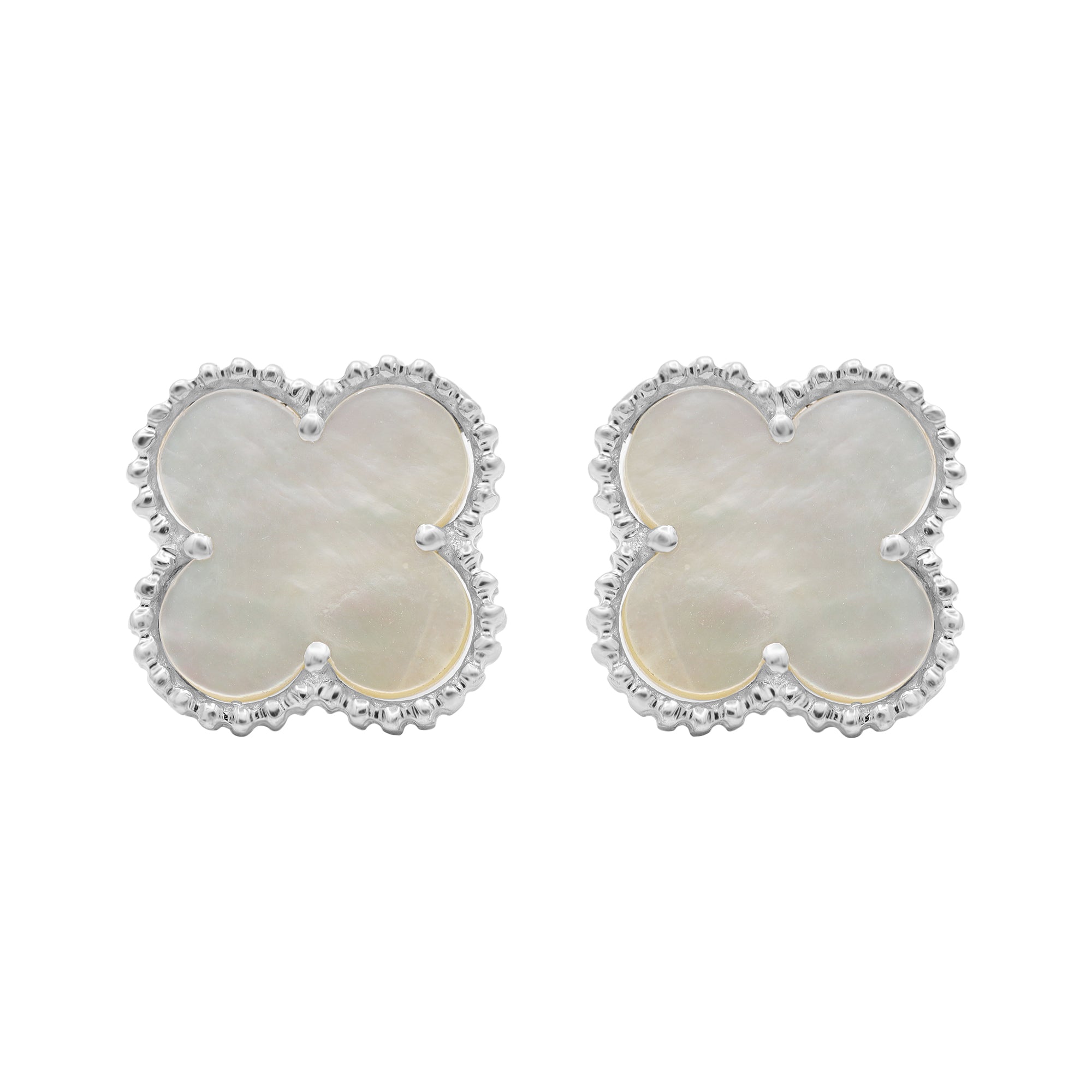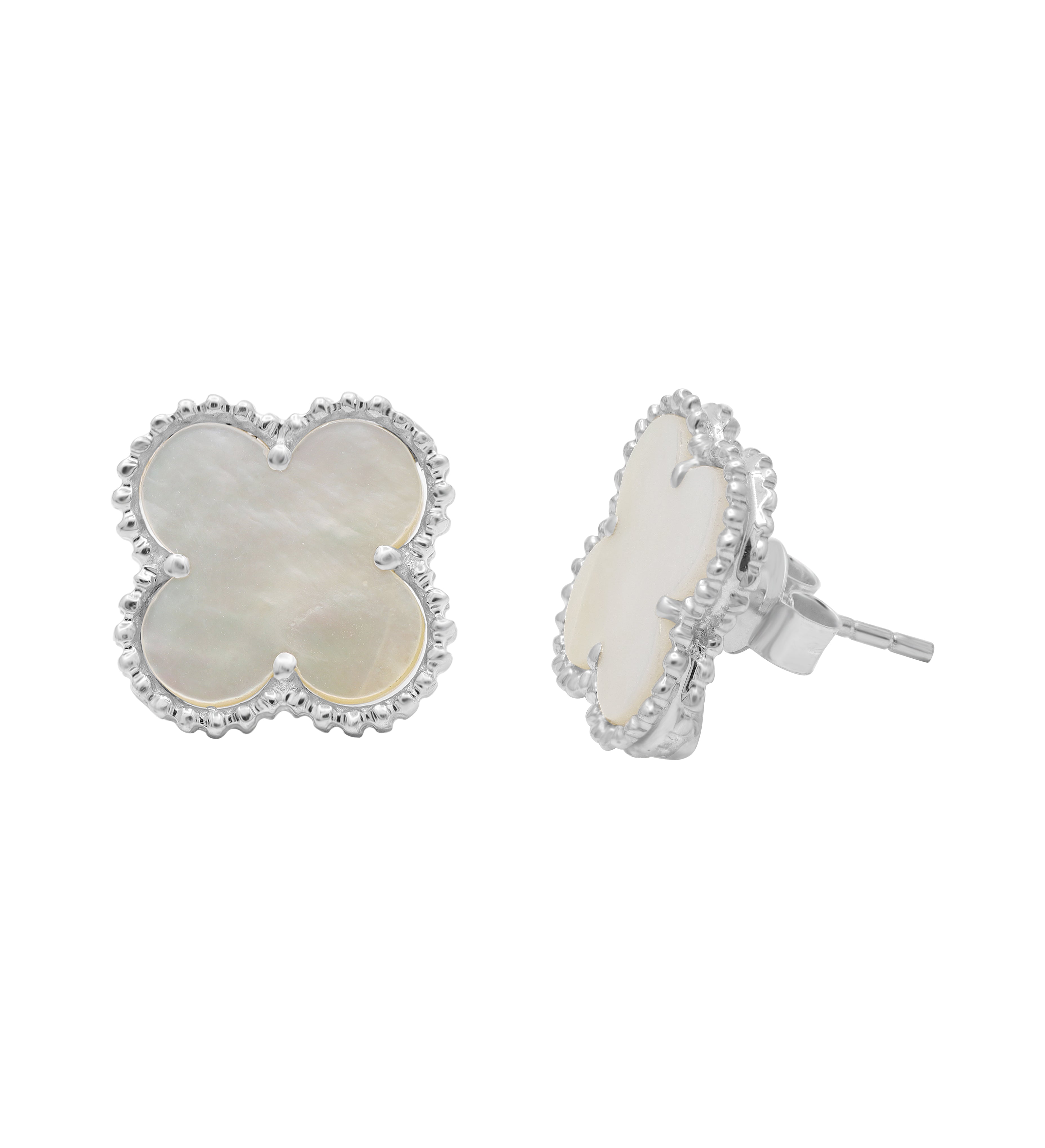 Clover 925 Sterling Solid Silver Natural Pearl Earring Stud
