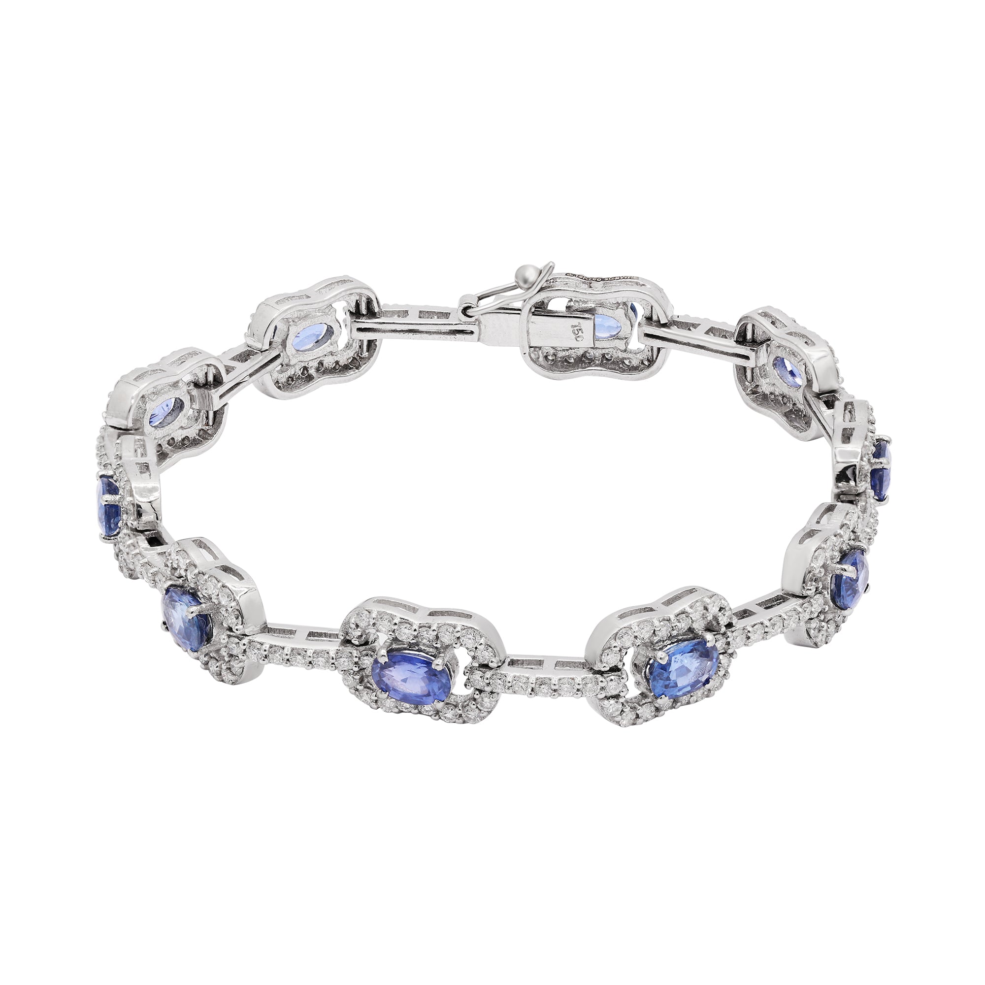 Natural Blue Sapphire and Diamond 18K White Gold Bracelet