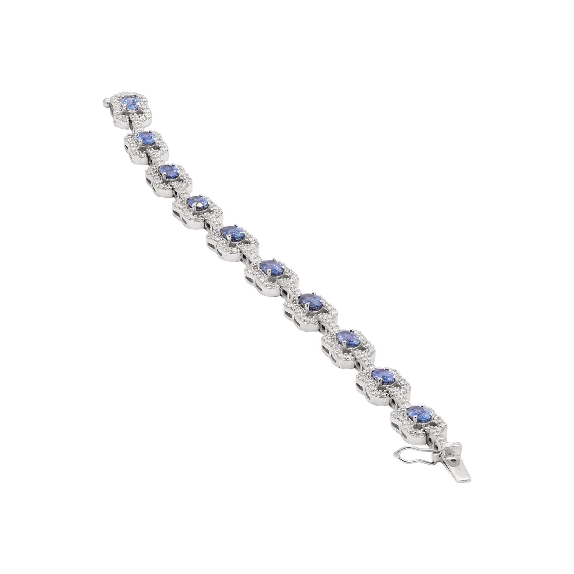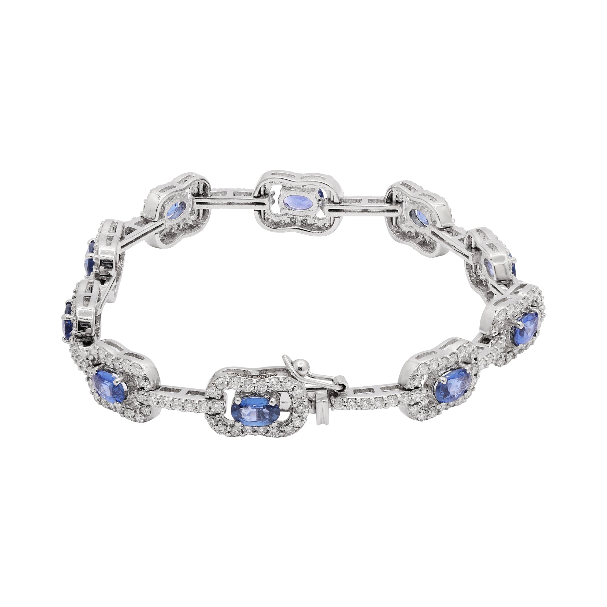 Natural Blue Sapphire Gemstone and Diamond 18K White Gold Bracelet