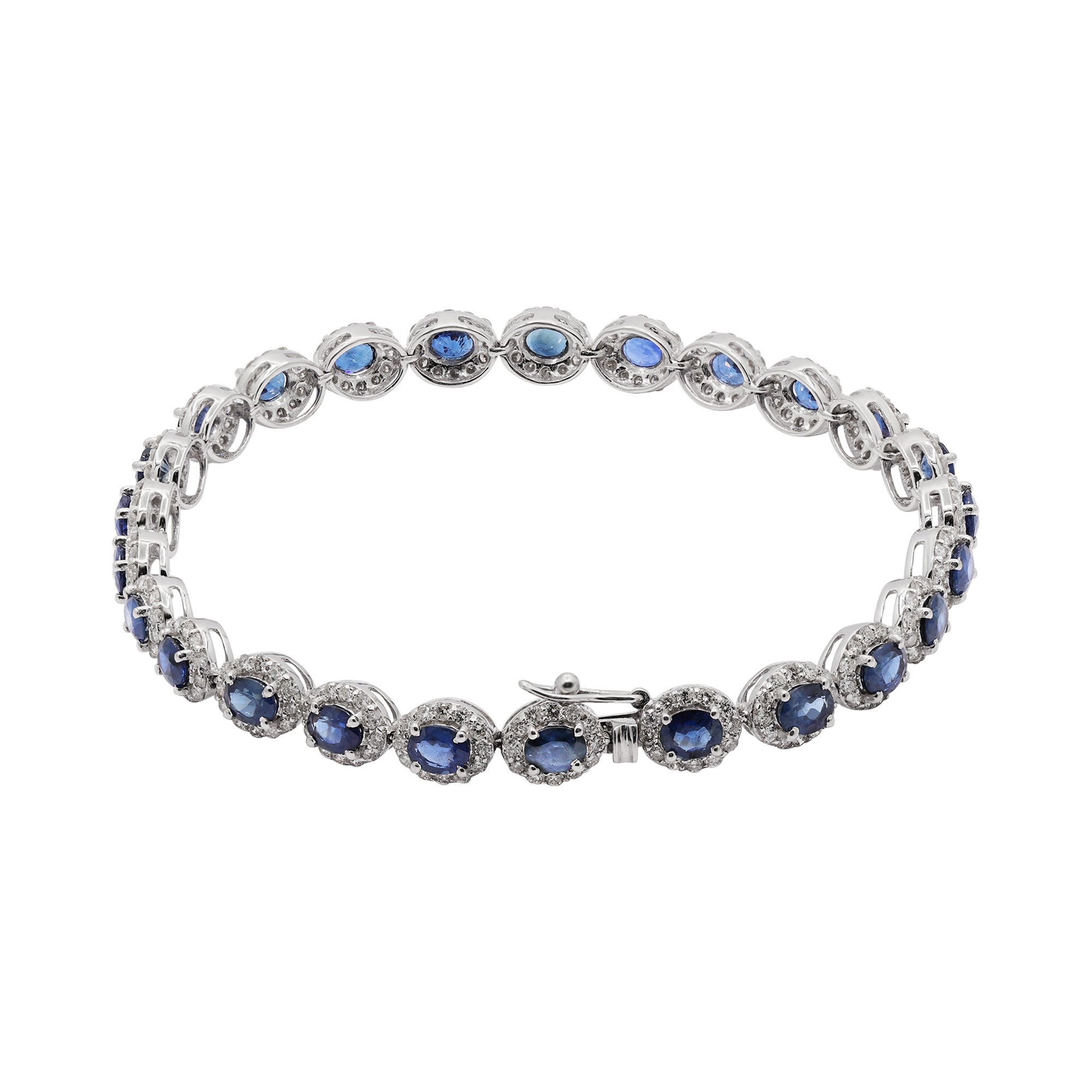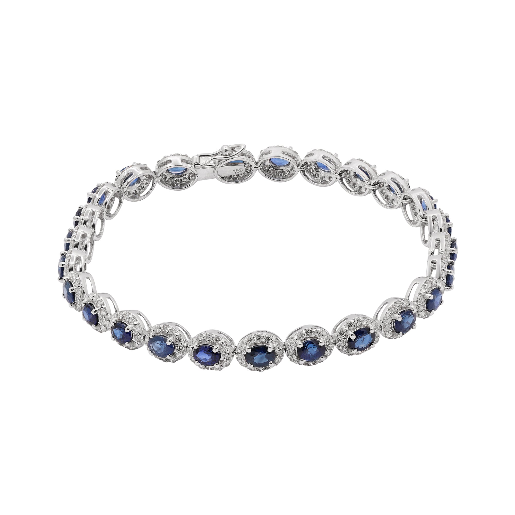 Natural Blue Sapphire and Diamond 18K White Gold Bracelet