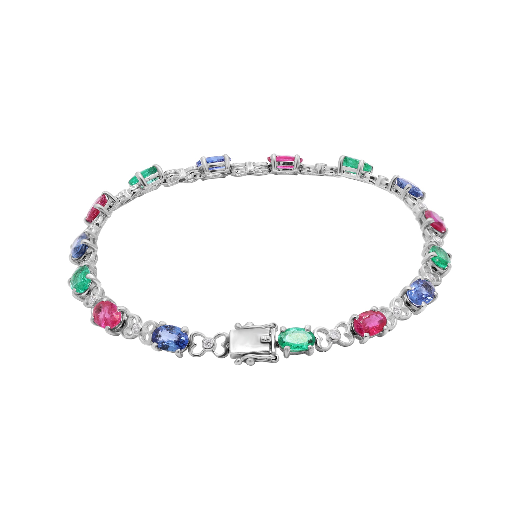 Natural Ruby, Emerald, Sapphire and Diamond 18K White Gold Bracelet