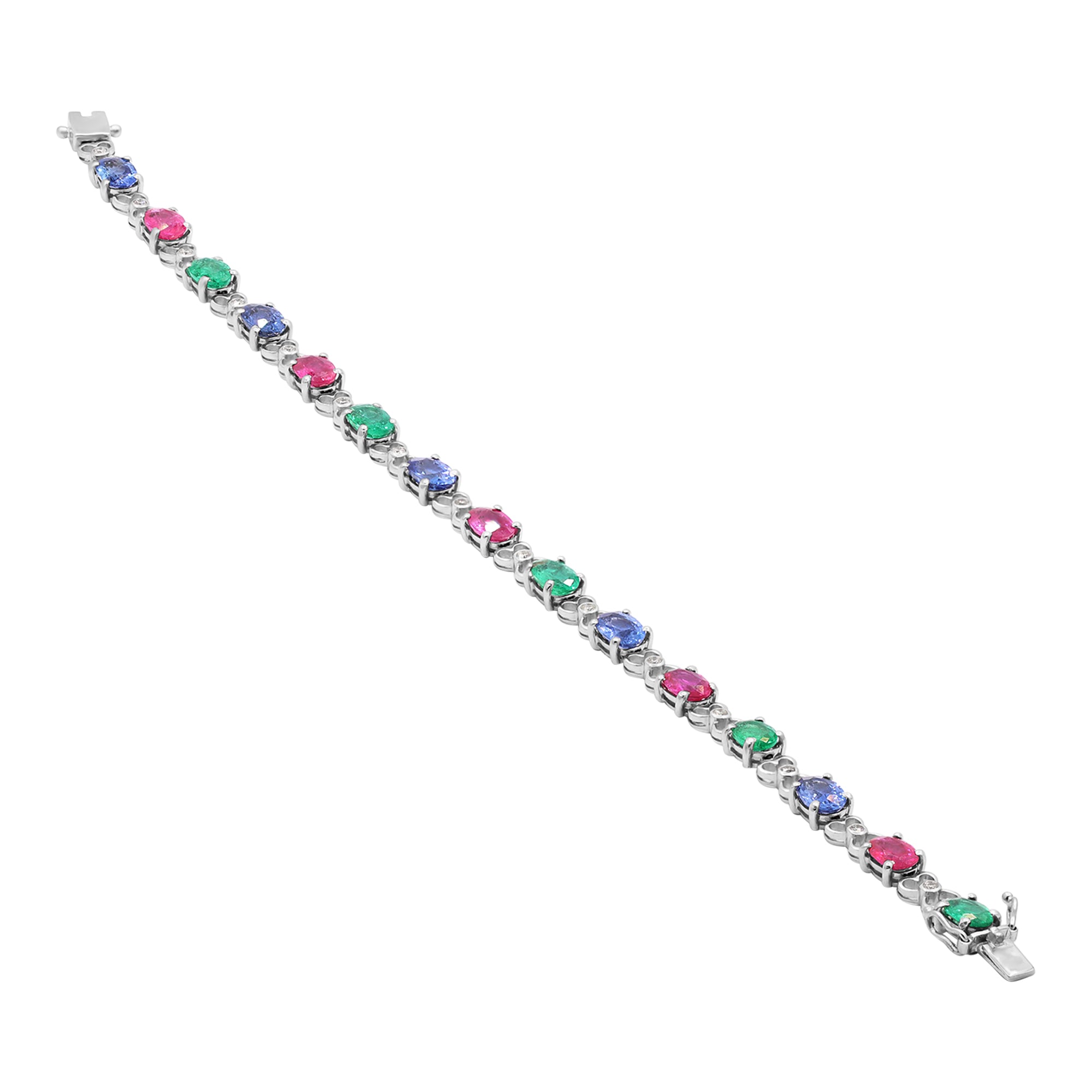 Ruby, Emerald, Sapphire and Diamond 18K White Gold Bracelet