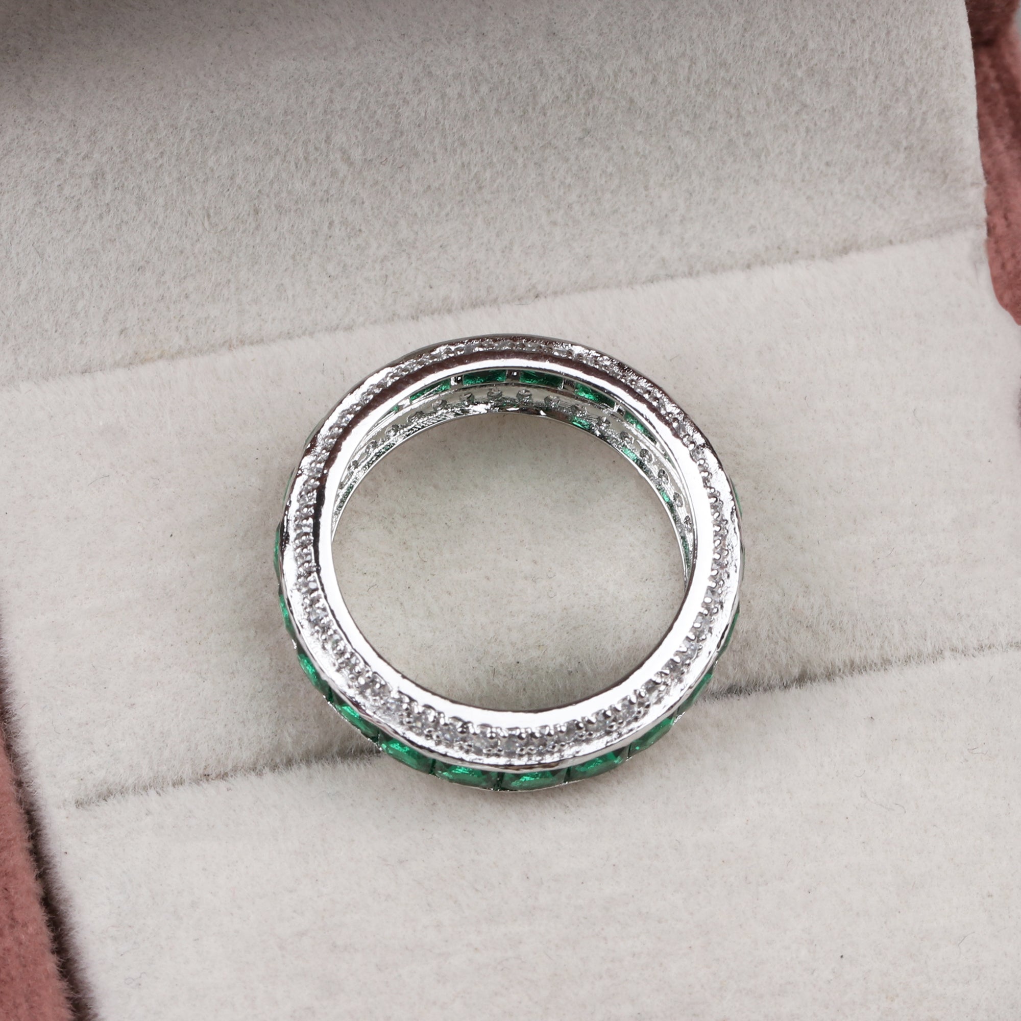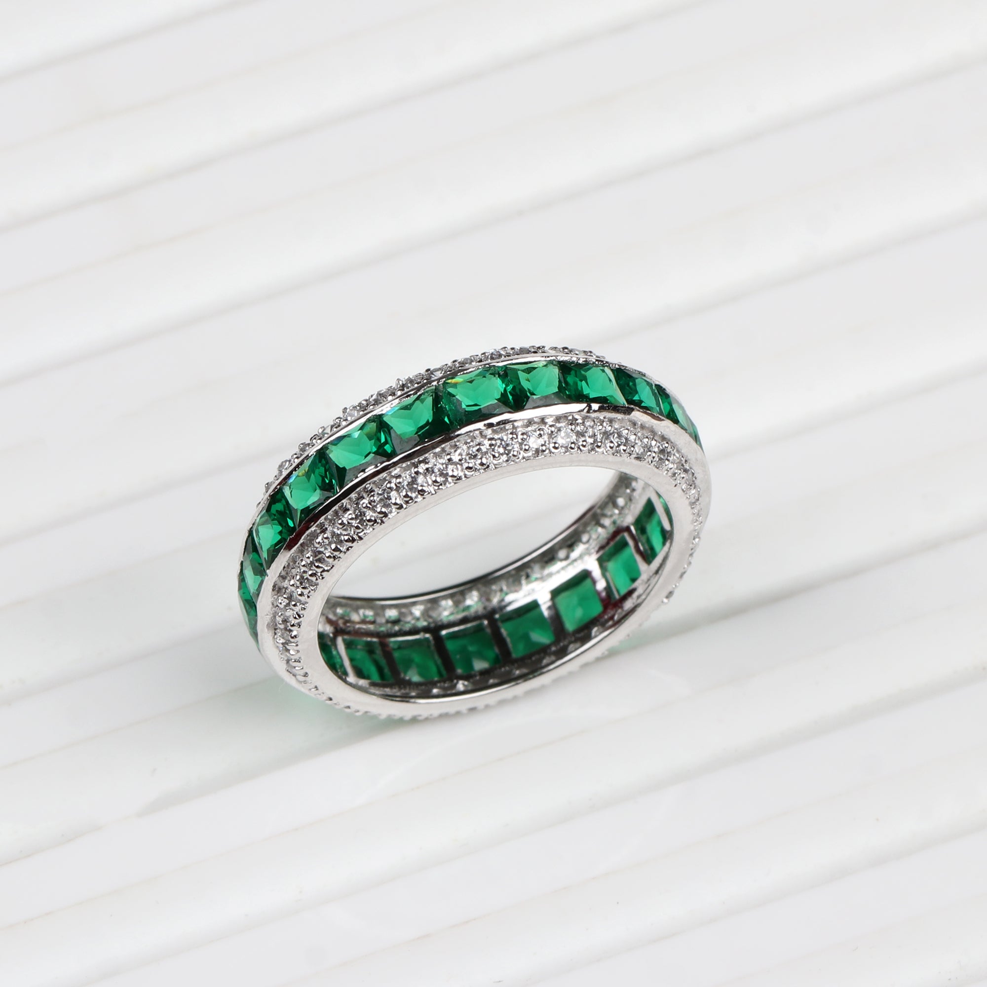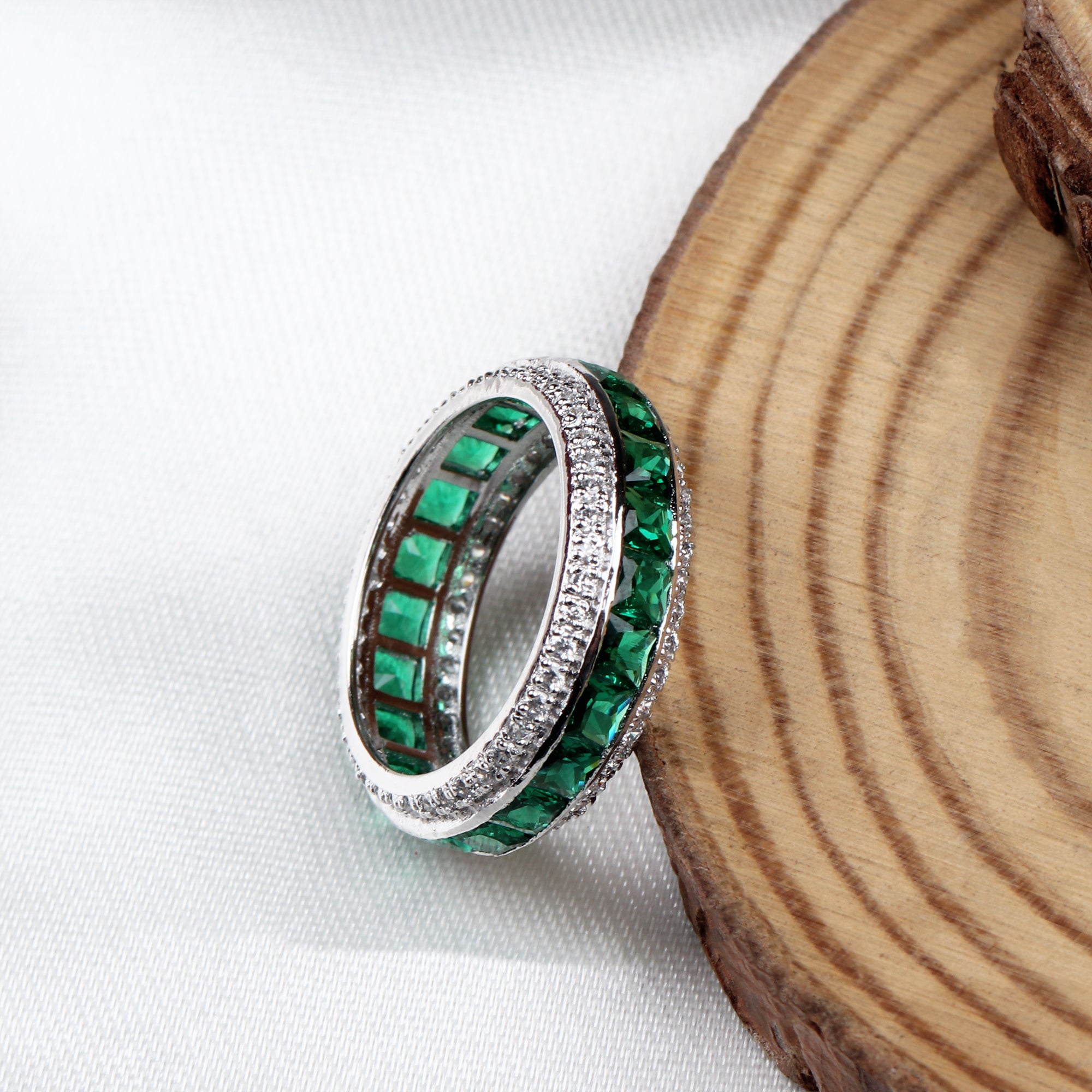 925 Sterling Silver Emerald and CZ Eternity Band Ring Handmade Stackable Statement Ring