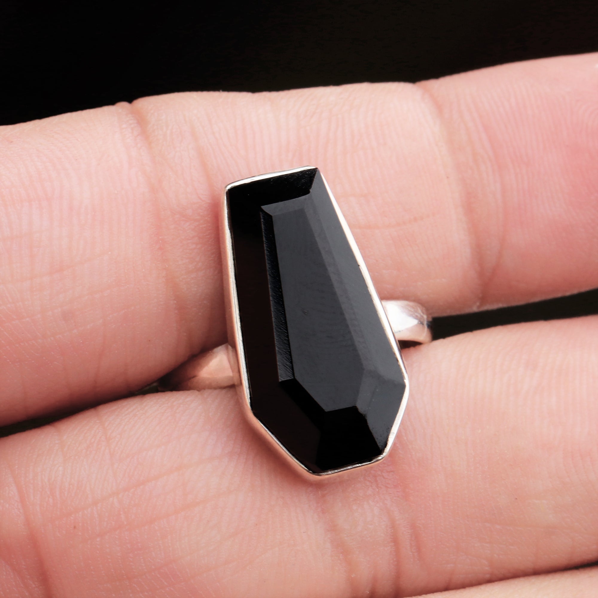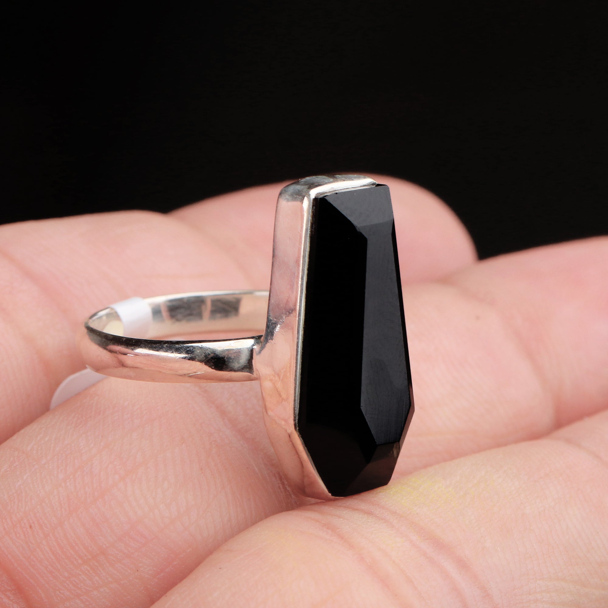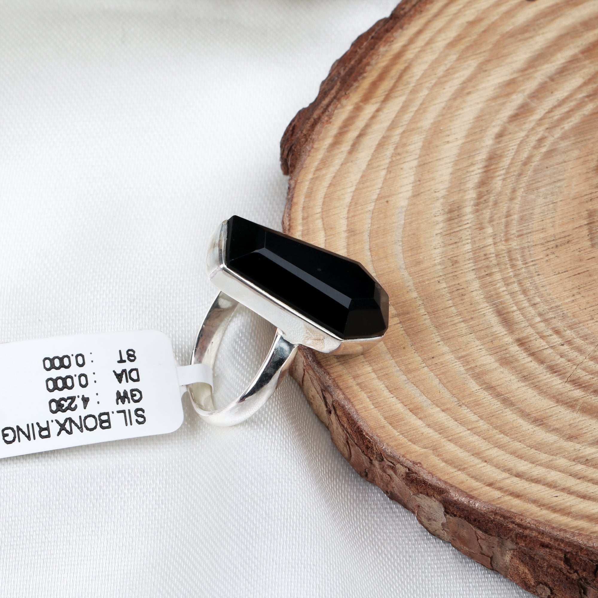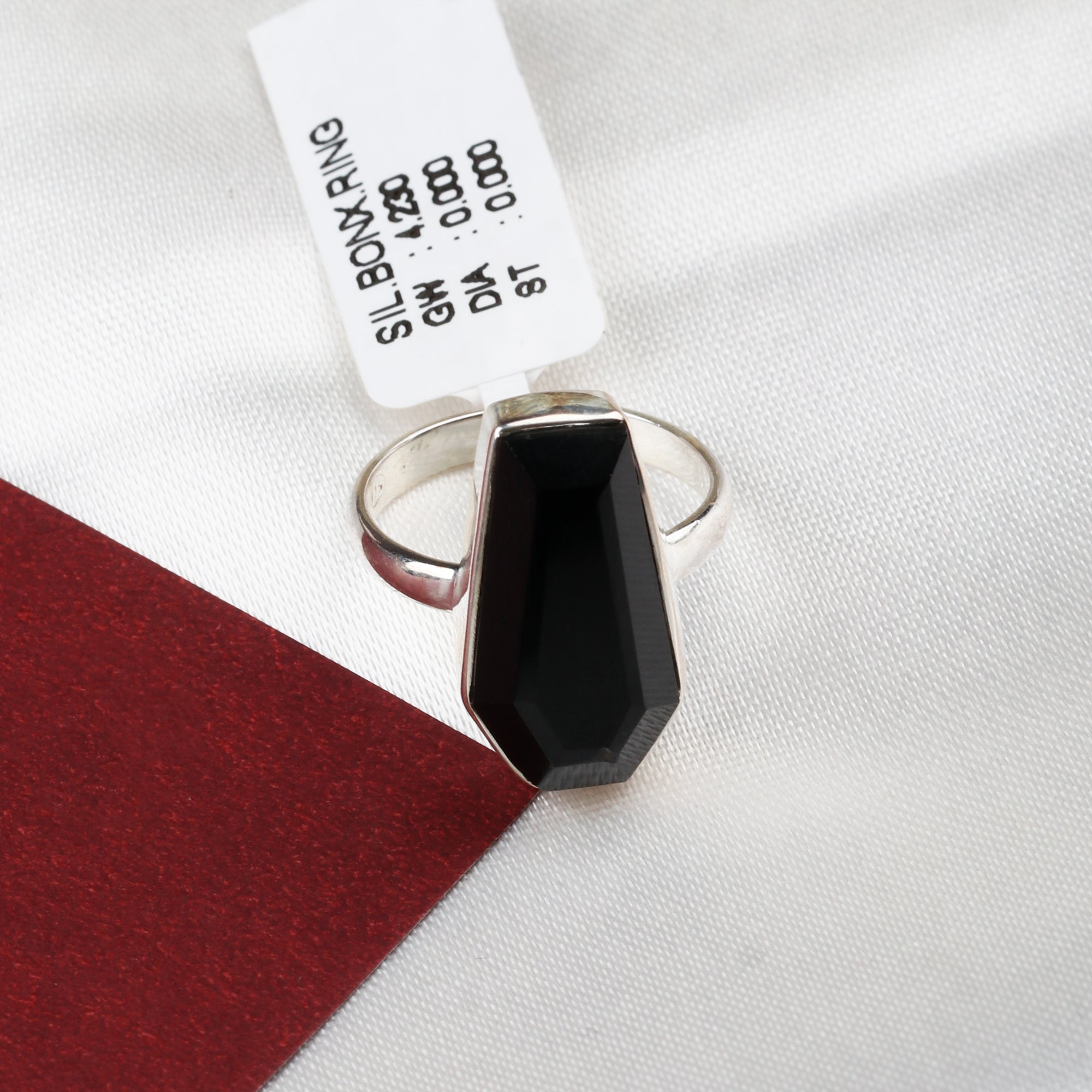 Make a bold statement with this Black Onyx Sterling Silver Ring, featuring a unique geometric-cut onyx gemstone set on a sleek polished silver band. Modern, elegant, and eye-catching—perfect for everyday style or special occasions.