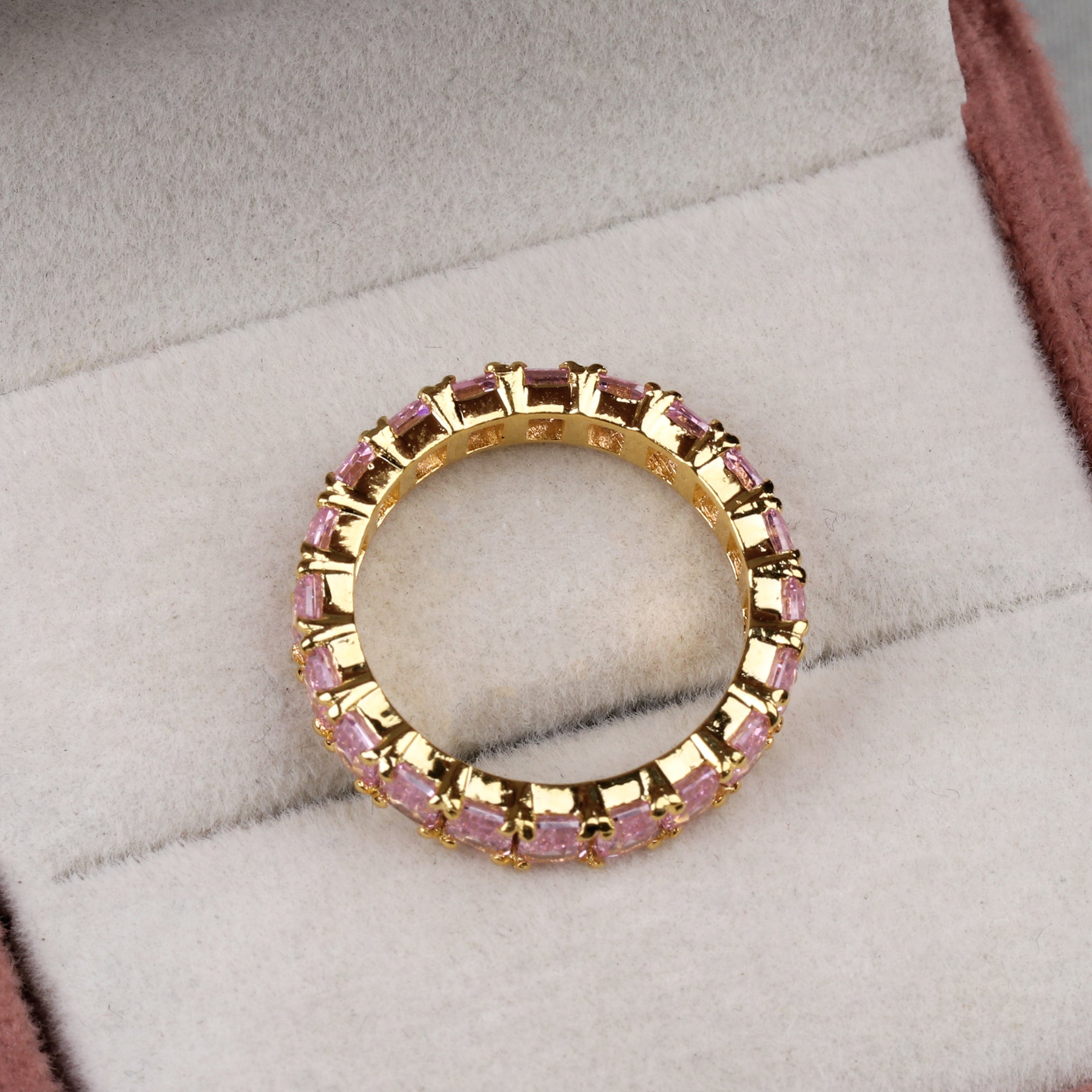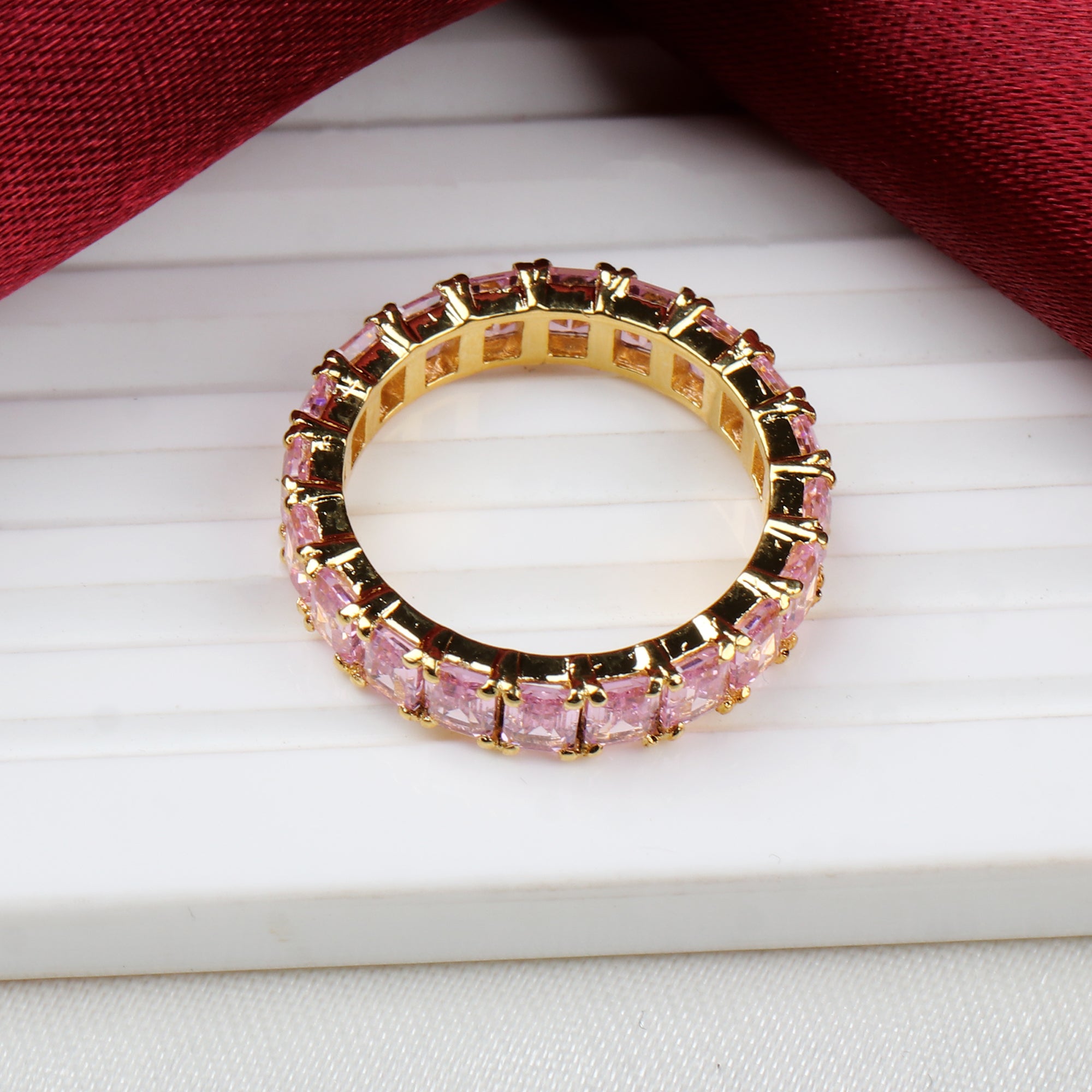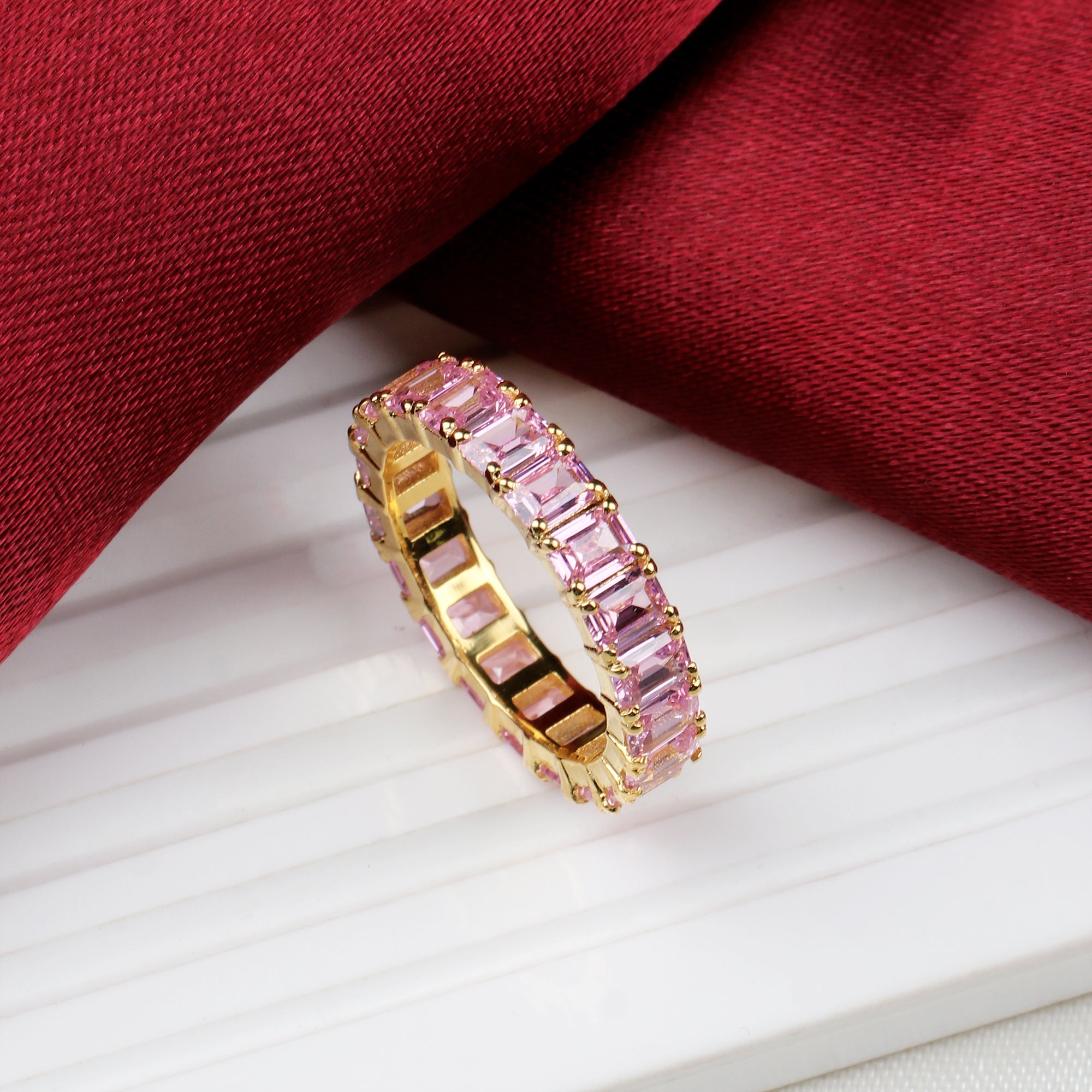 Elegant Pink Sapphire Eternity Band Ring Handmade Gold Plated Stackable Ring