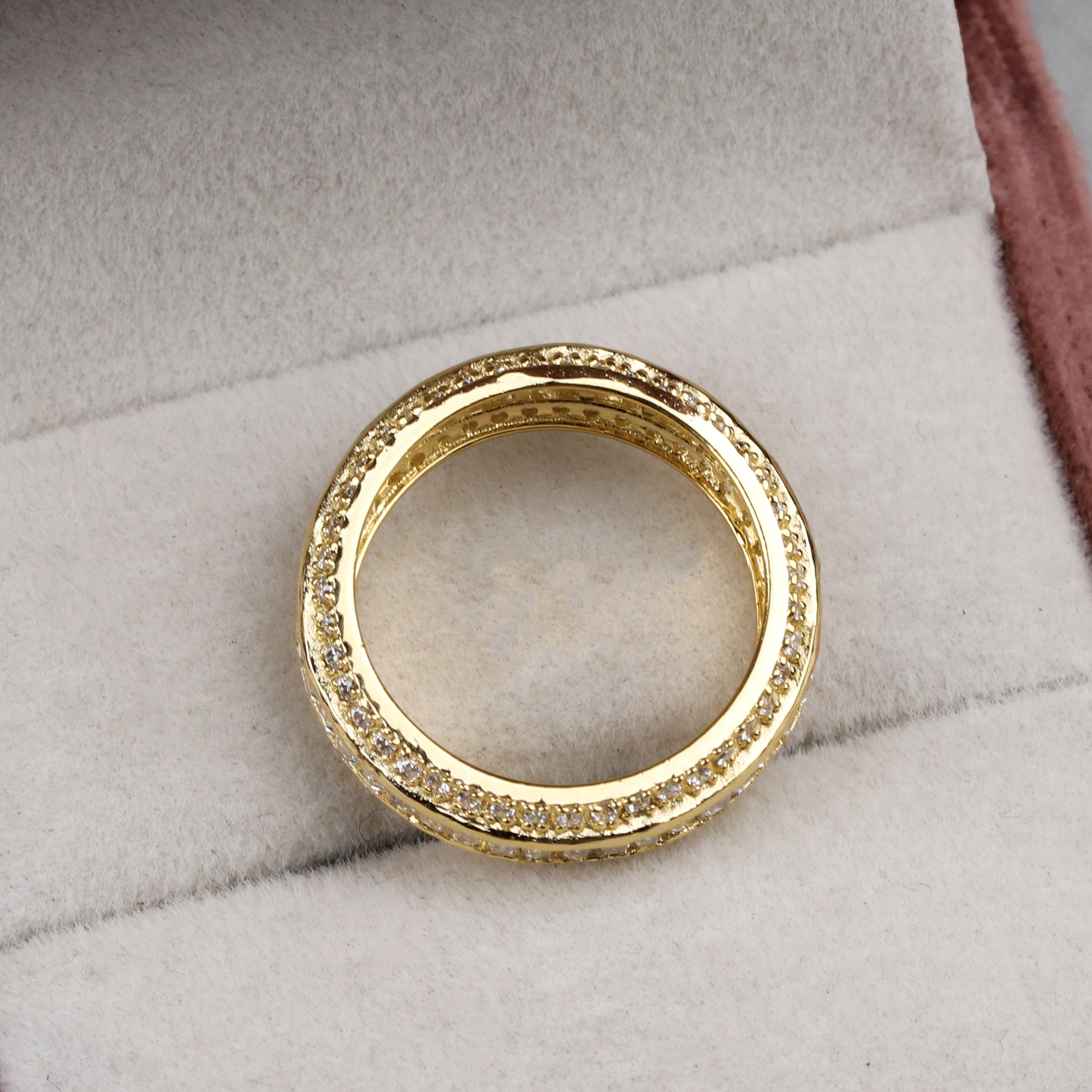 Gold Plated Cubic Zirconia Eternity Band Ring Triple Row Baguette CZ Statement Ring