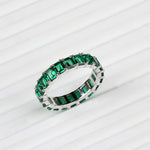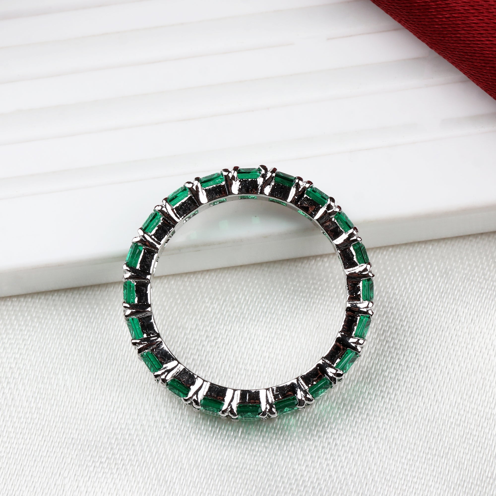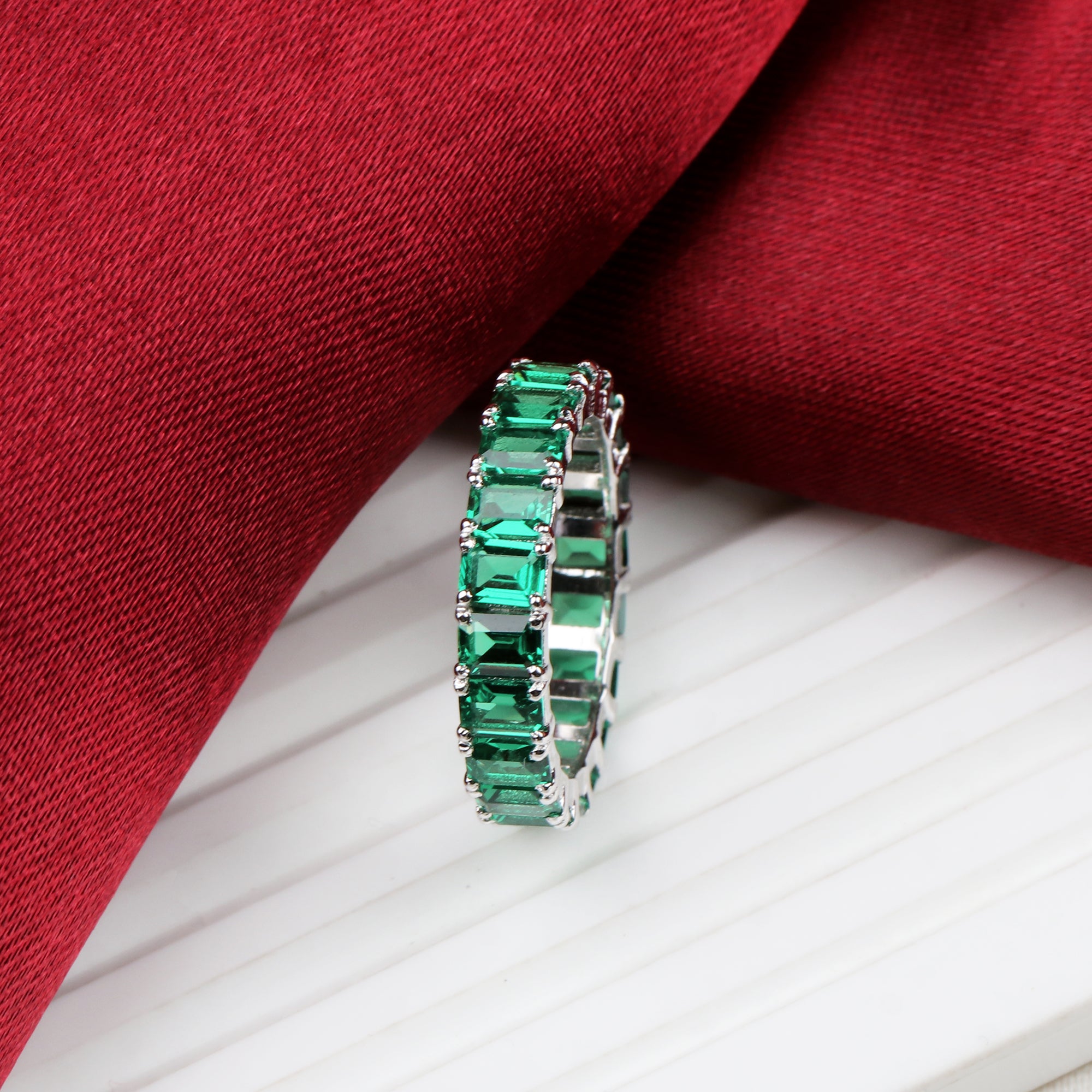 Celebrate elegance with this emerald full-eternity band, crafted in 925 sterling silver. Featuring vibrant green emerald baguettes, this ring shines as a stacking band, promise ring, birthstone jewelry, or anniversary gift. A timeless symbol of love and luxury — perfect for daily wear or special occasions. 💚