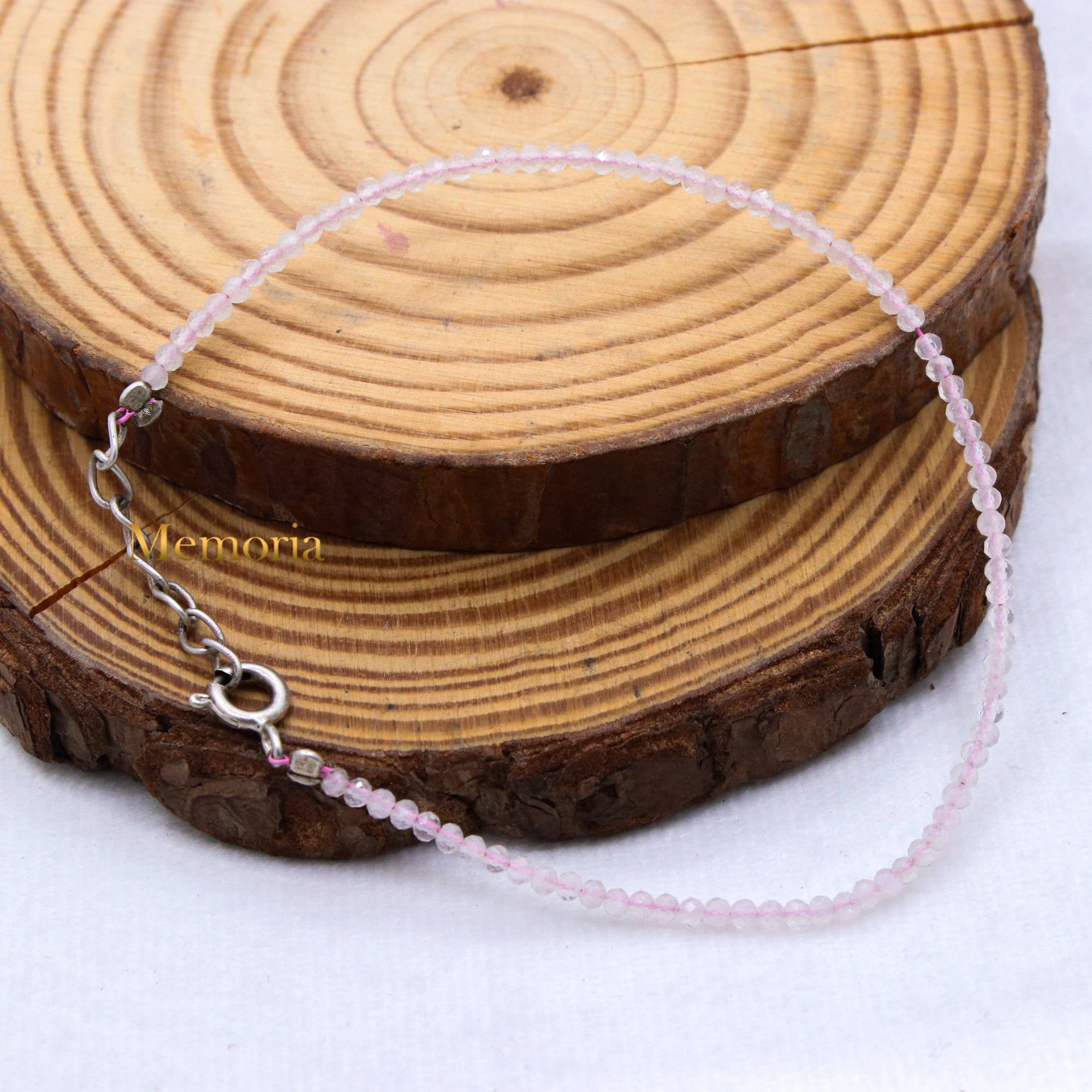 Buy Certified Handmade Natural Round Faceted Cut Chakra Self Love Healing Rose Quartz Gemstone Beaded Bracelet