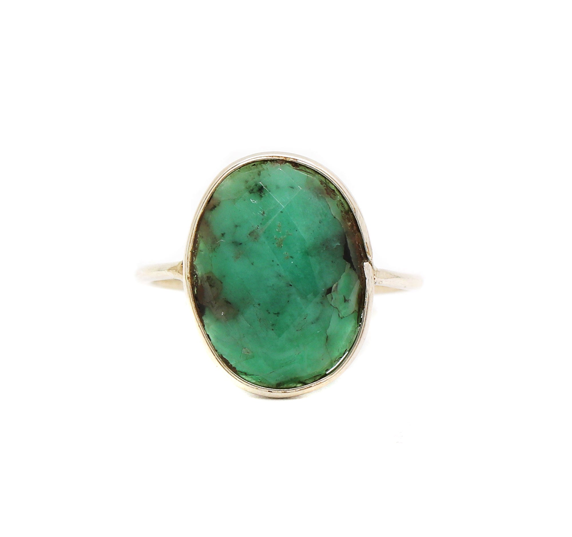 925 Sterling Silver Natural Emerald Oval Cut Gemstone Chakra Healing Ring For Mens & Womens