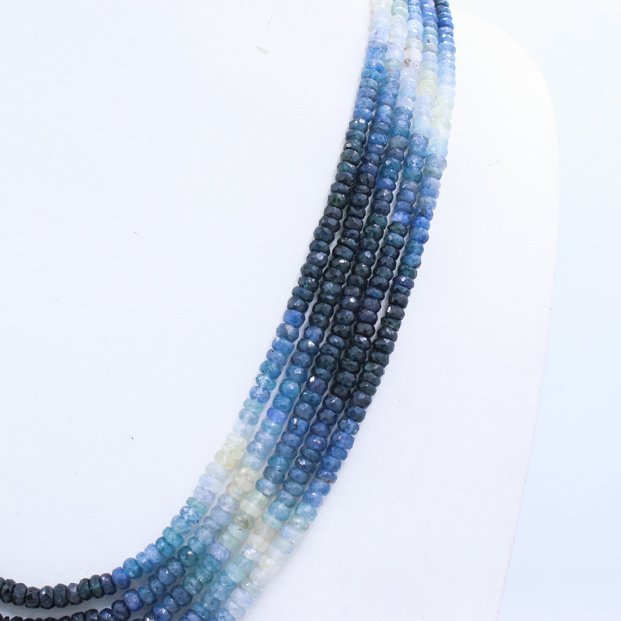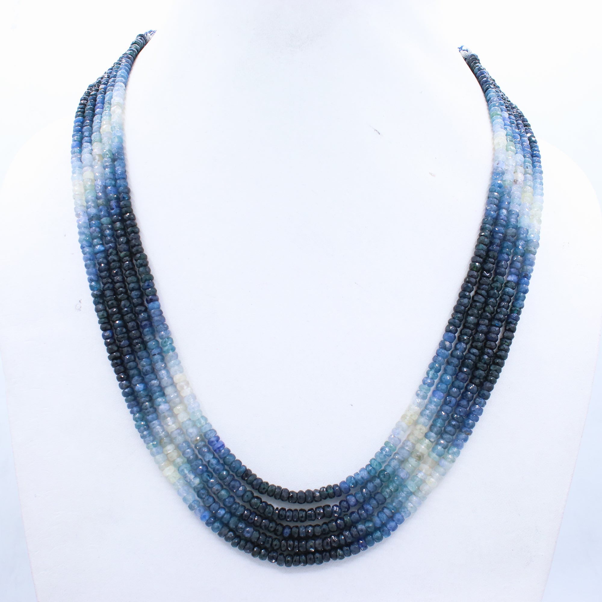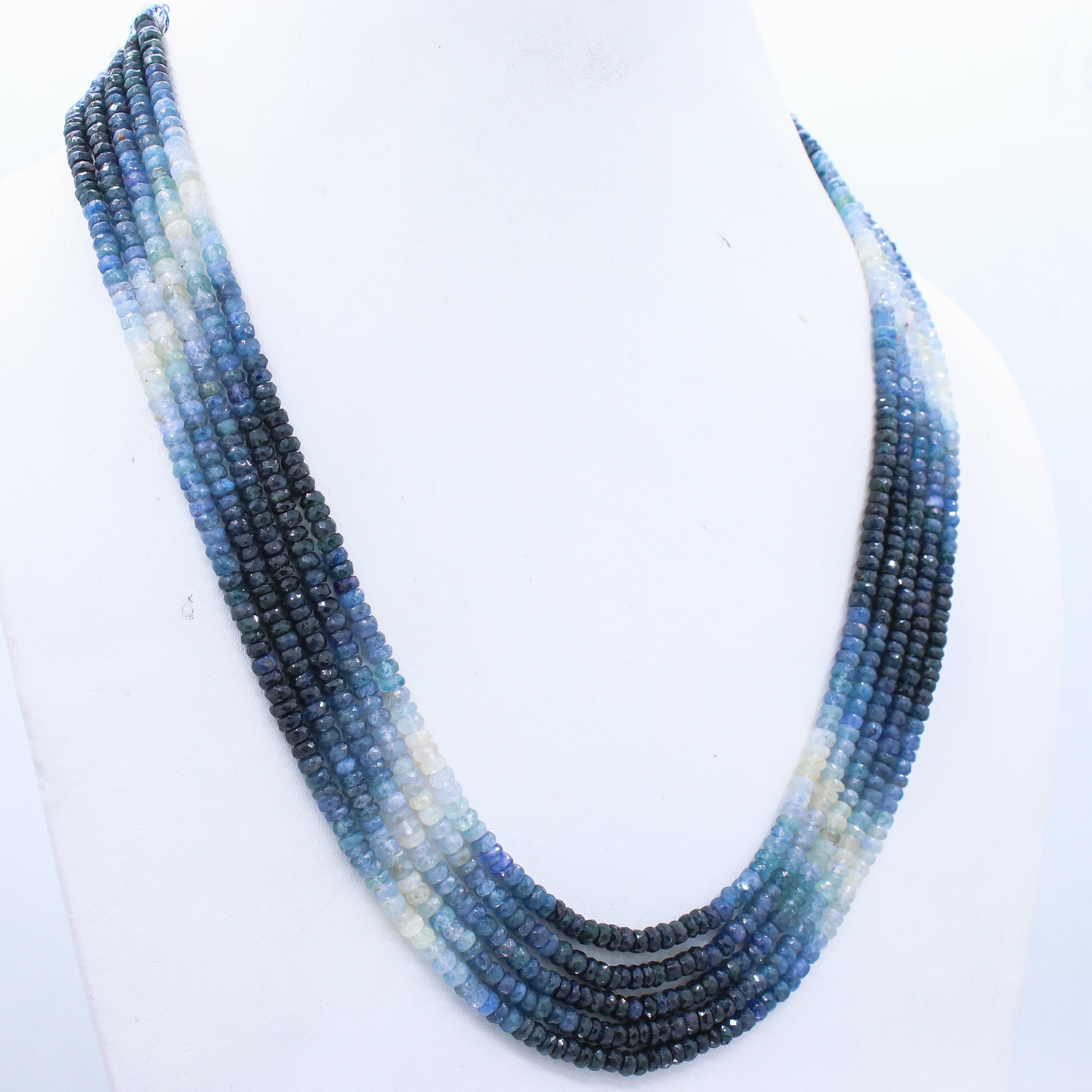 5 Layered Natural Blue Sapphire Round Faceted Cut Spiritual Healing Gemstone Beads Strand Necklace