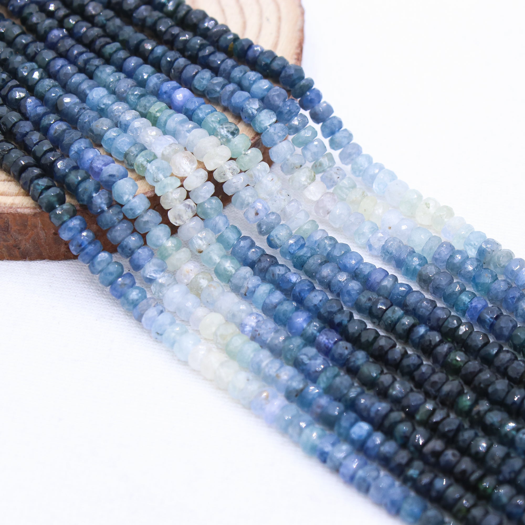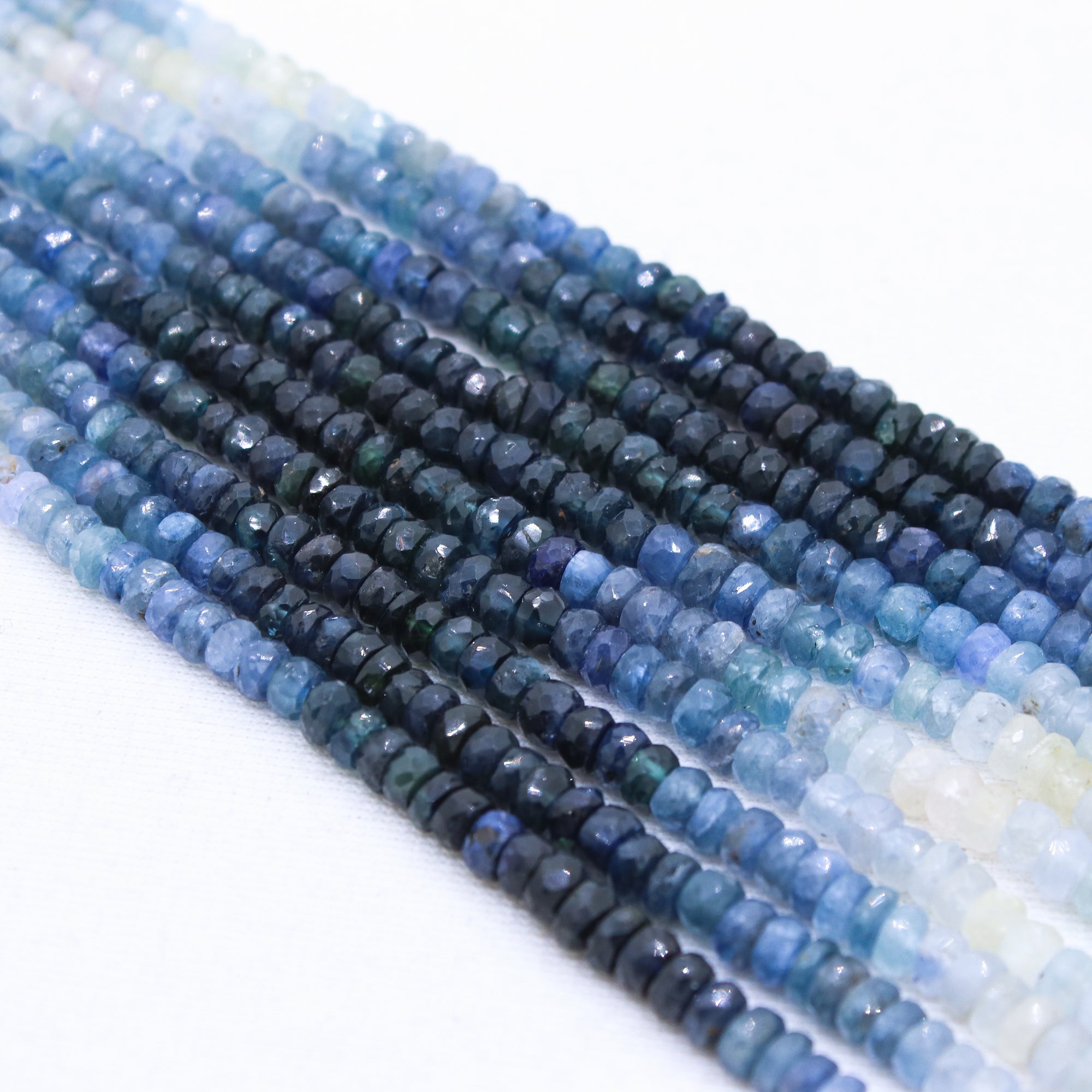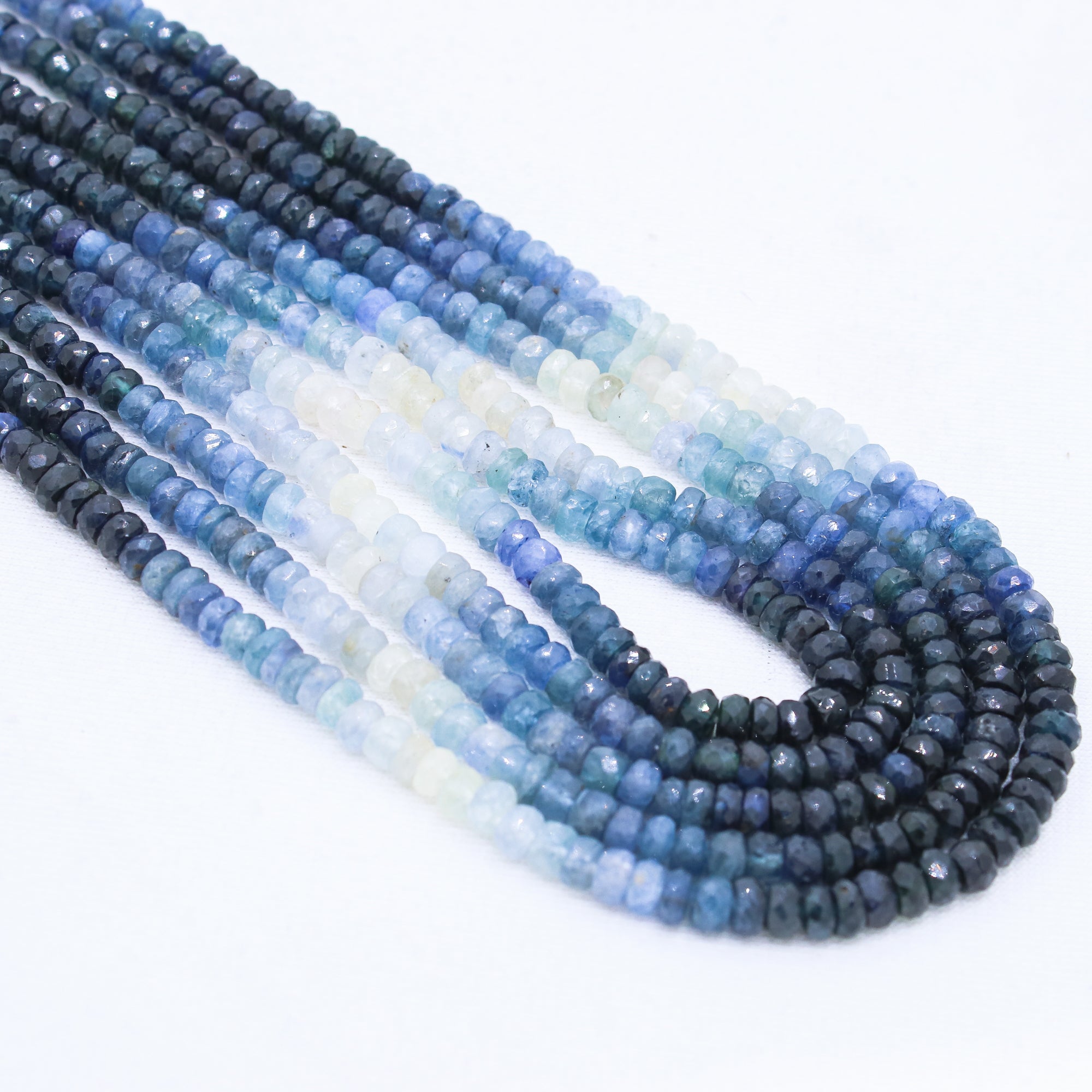 5 Layered Natural Blue Sapphire Round Faceted Cut Spiritual Healing Gemstone Beads Strand Necklace