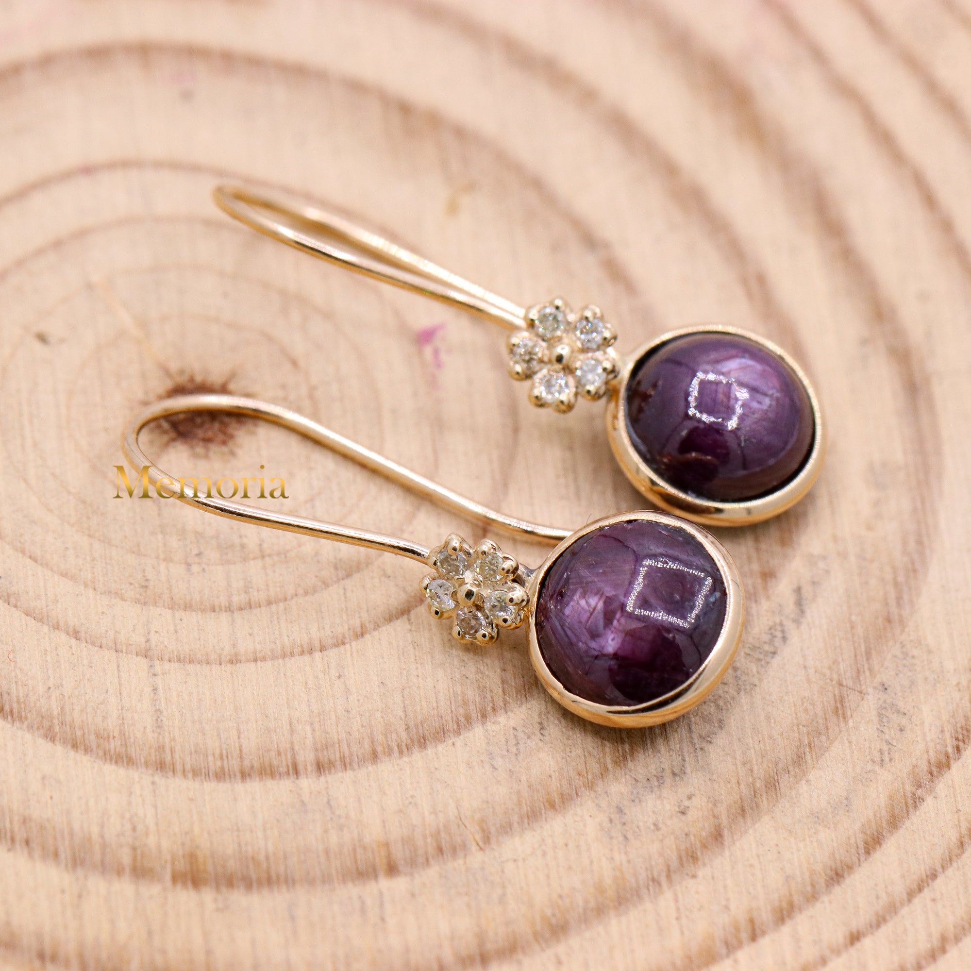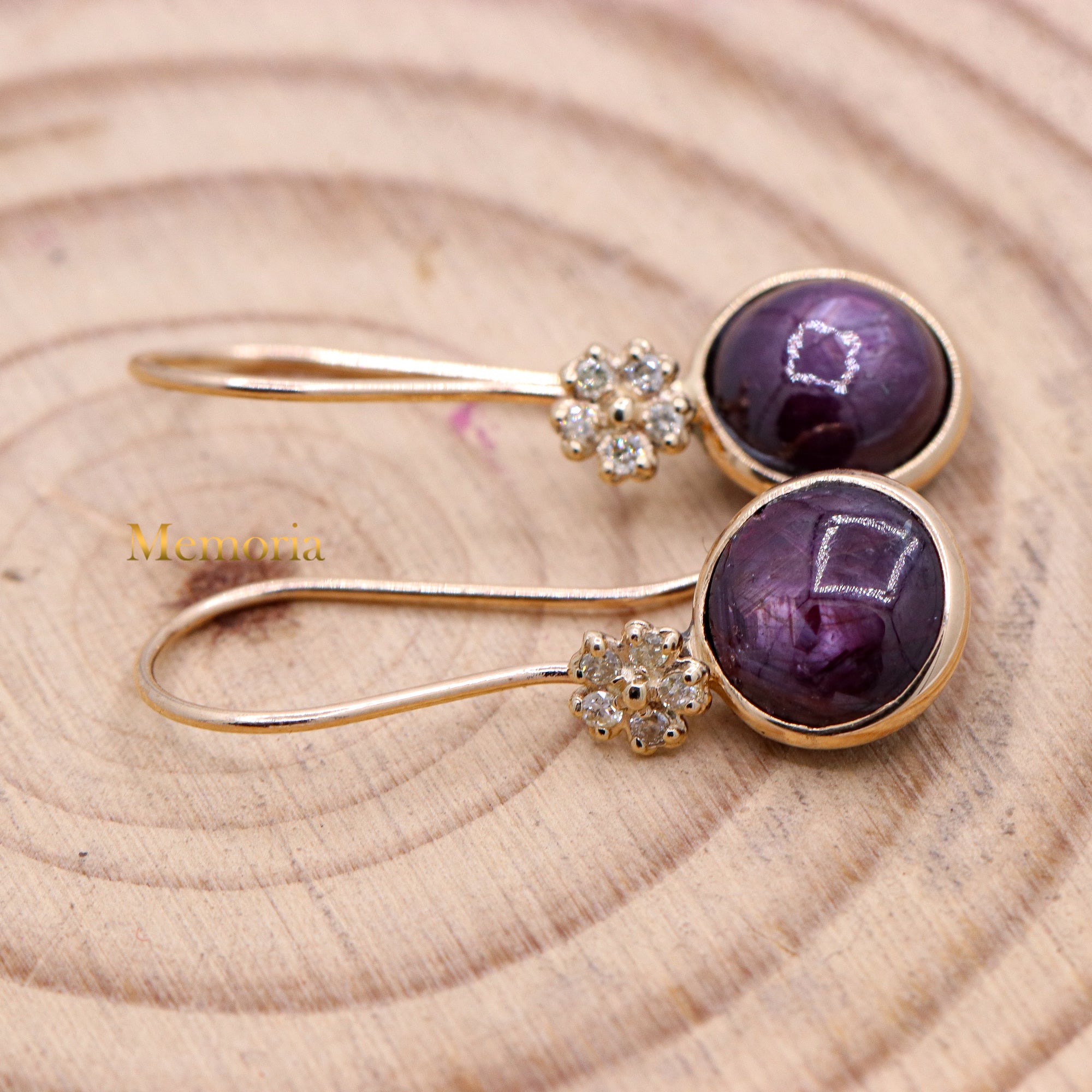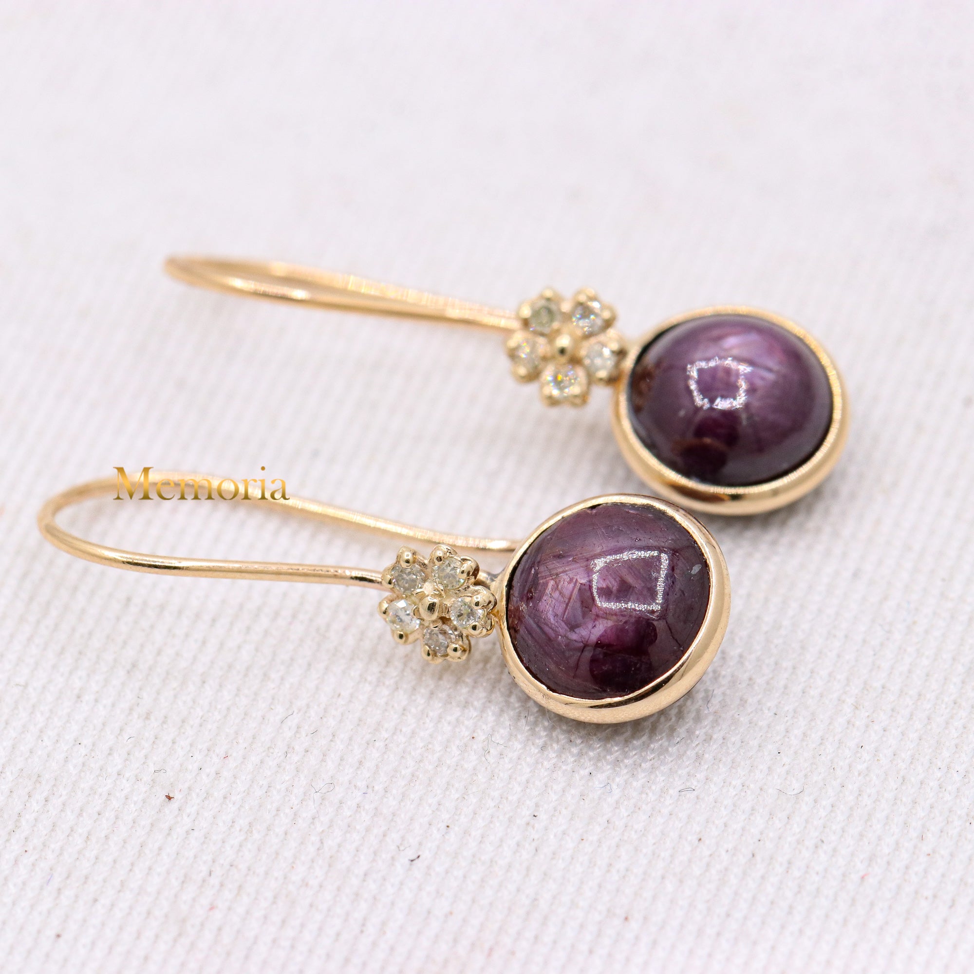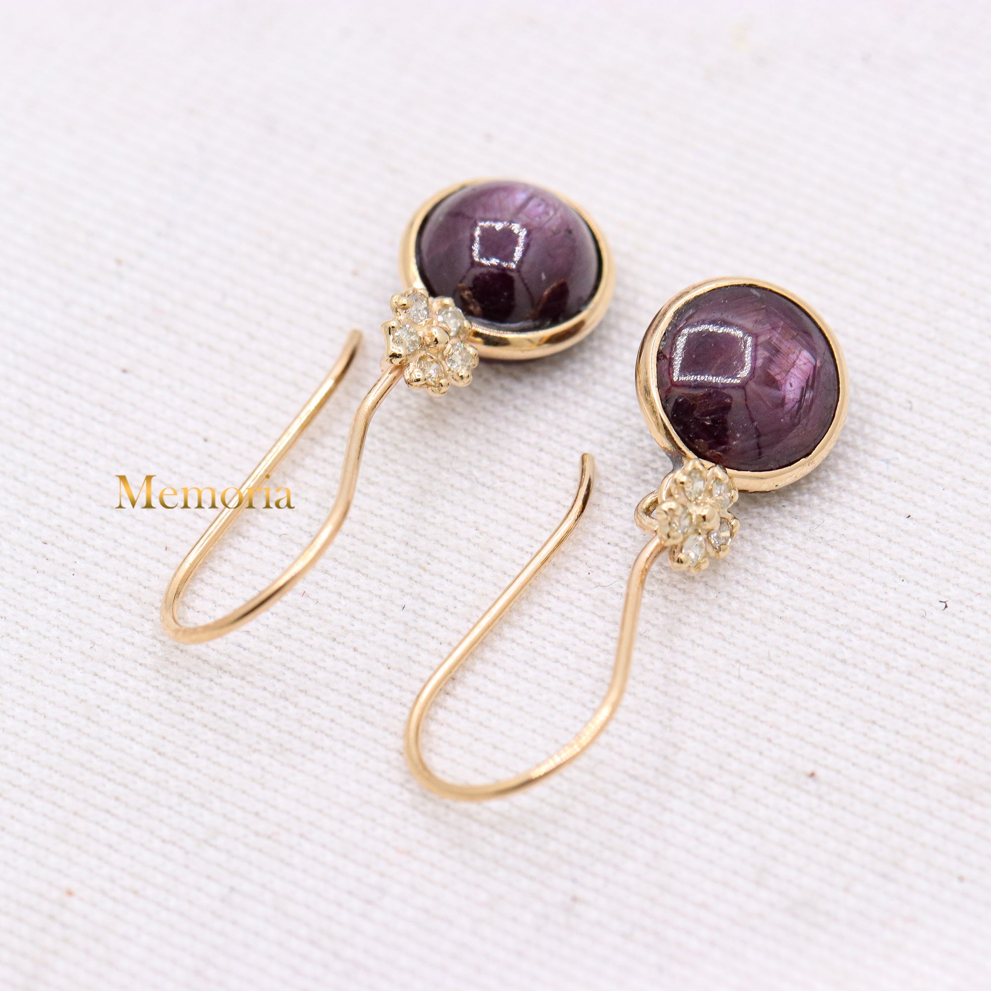 Buy Best Quality Certified Handcrafted Natural Star Ruby Round Shaped Cabochon Cut Spiritual Chakra Healing Gemstone Drop Earring In 14k Yellow Gold