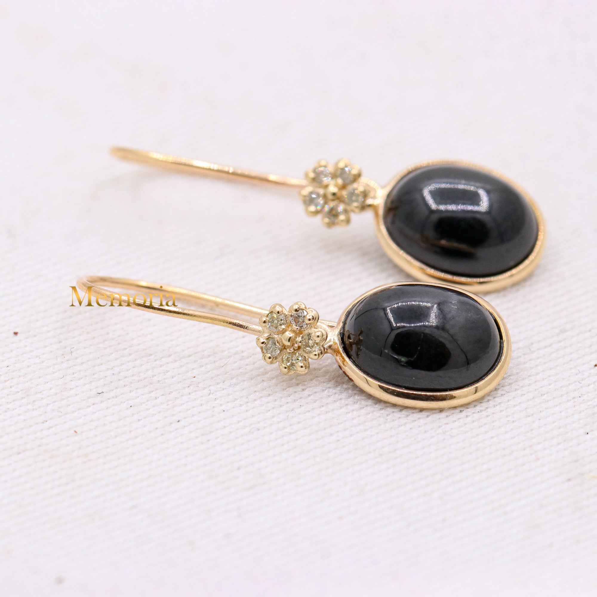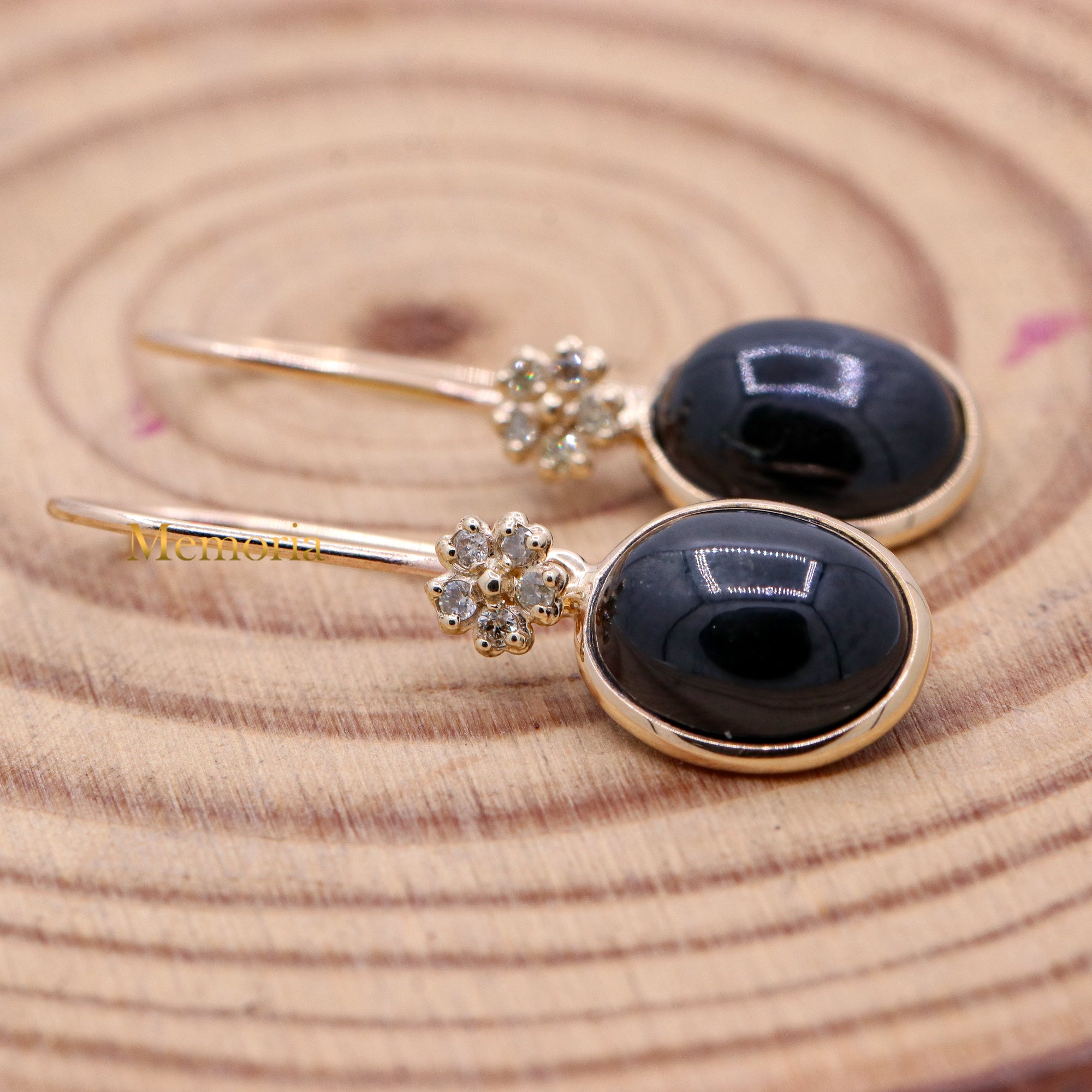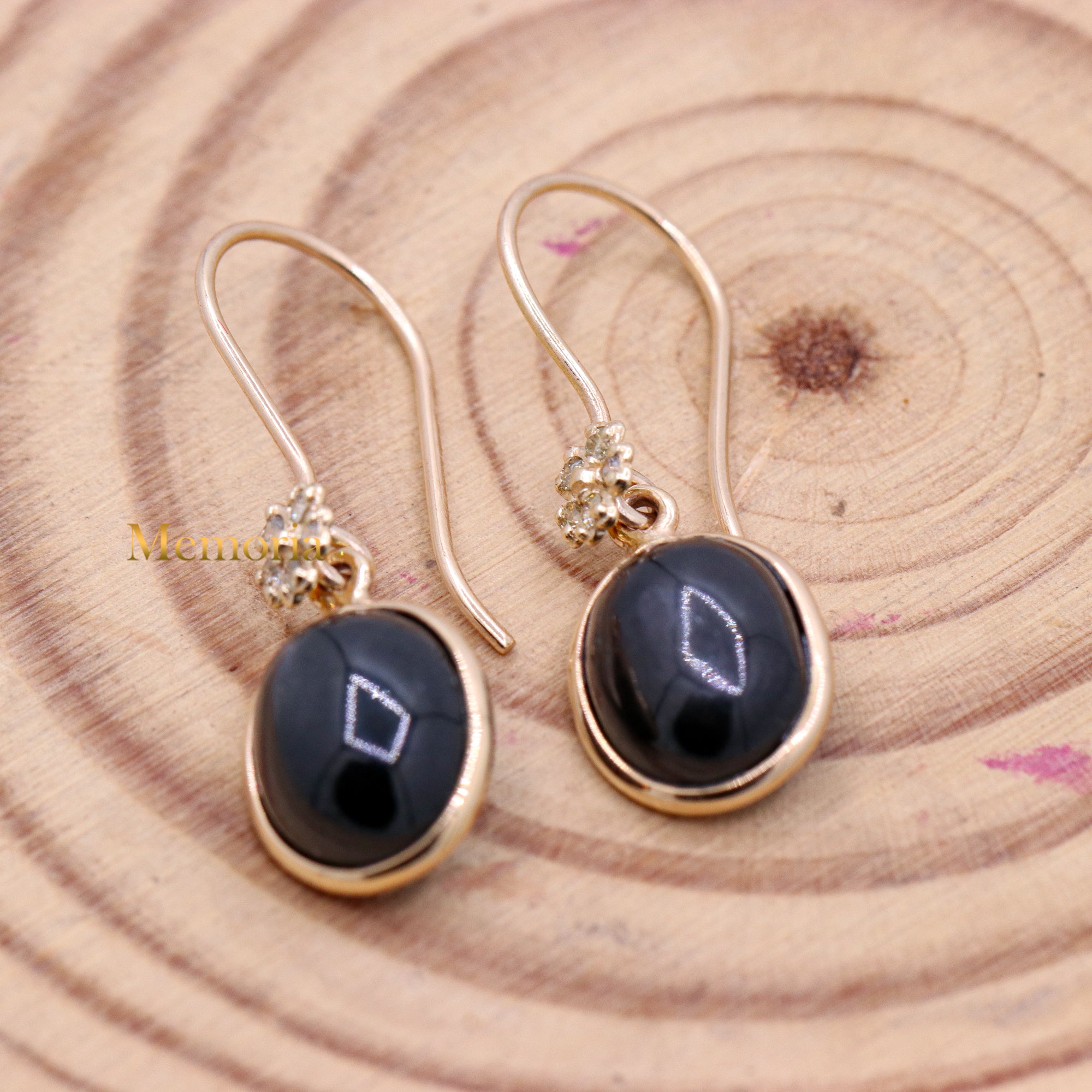 Buy Best Quality Certified Designer Natural Black Star Oval Shaped Cabochon Cut Spiritual Chakra Healing Gemstone Drop Earring In 14k Yellow Gold