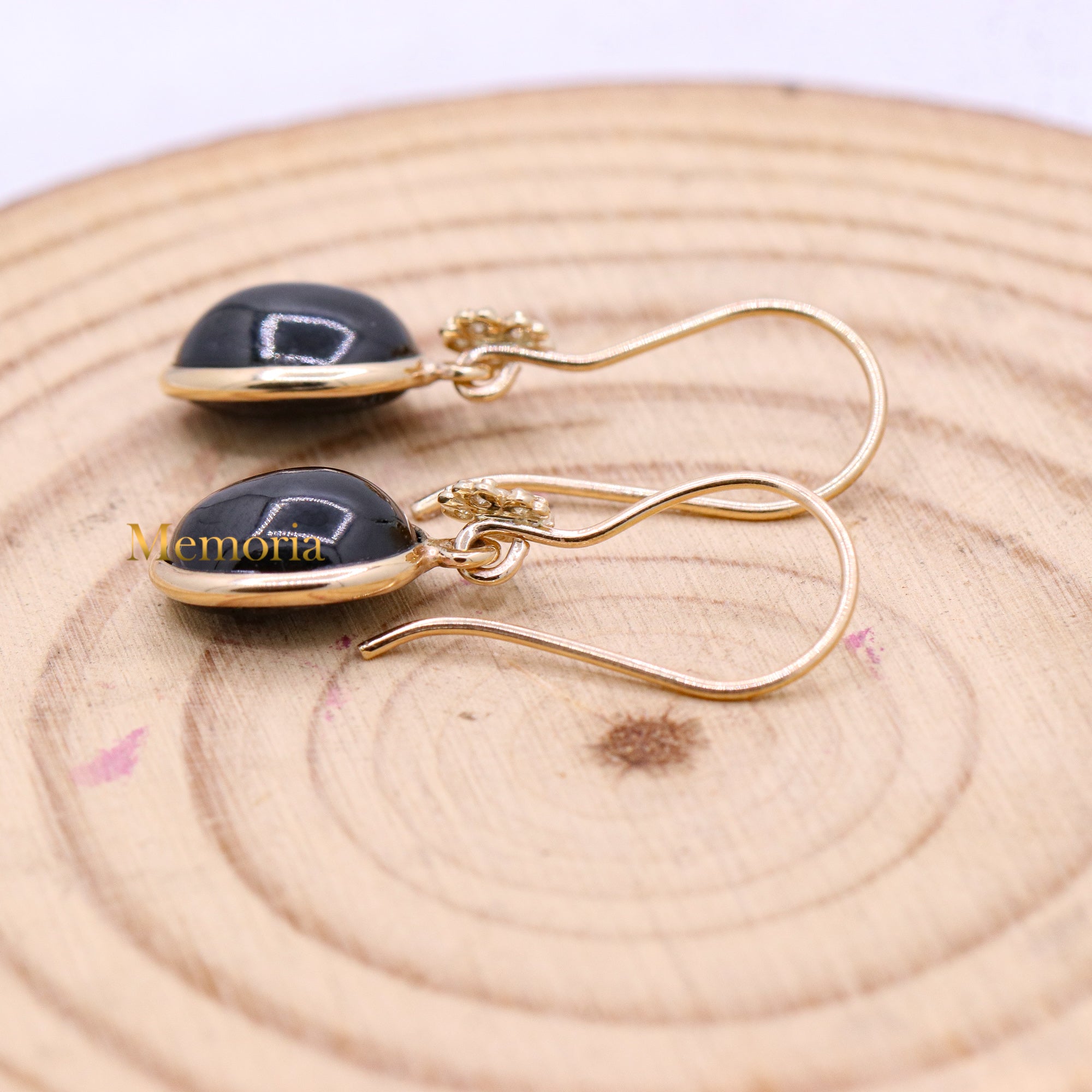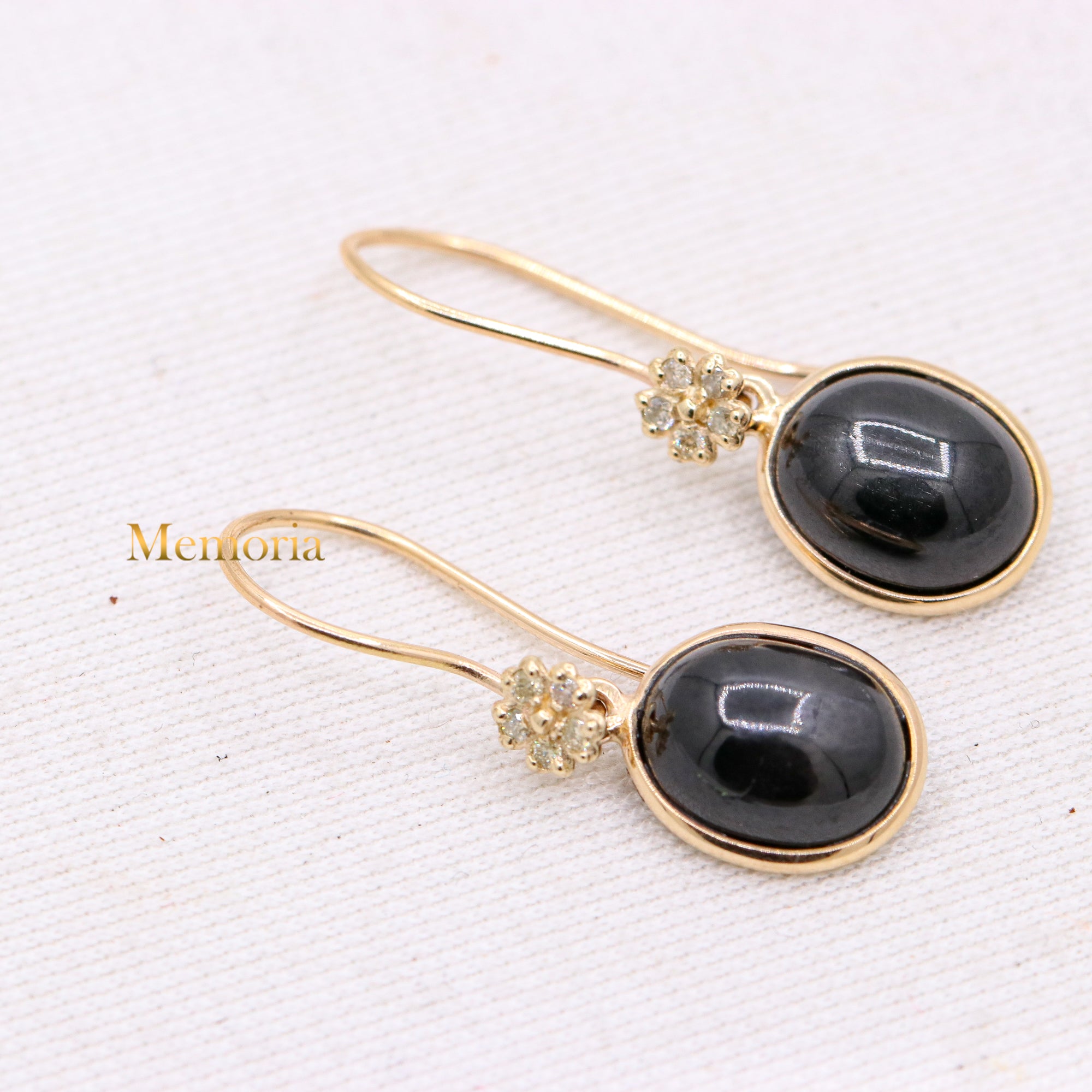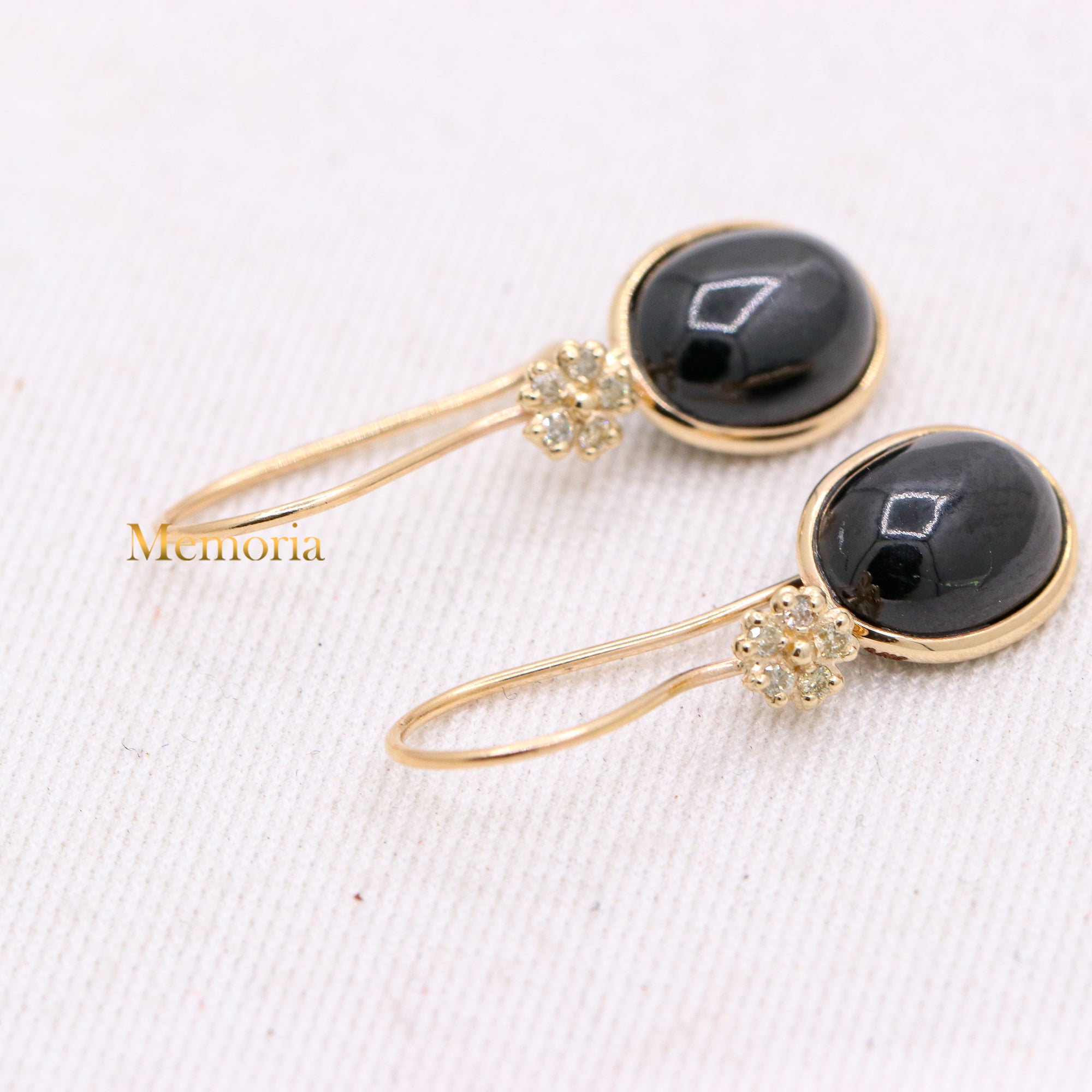 Buy Best Quality Certified Designer Natural Black Star Oval Shaped Cabochon Cut Spiritual Chakra Healing Gemstone Drop Earring In 14k Yellow Gold