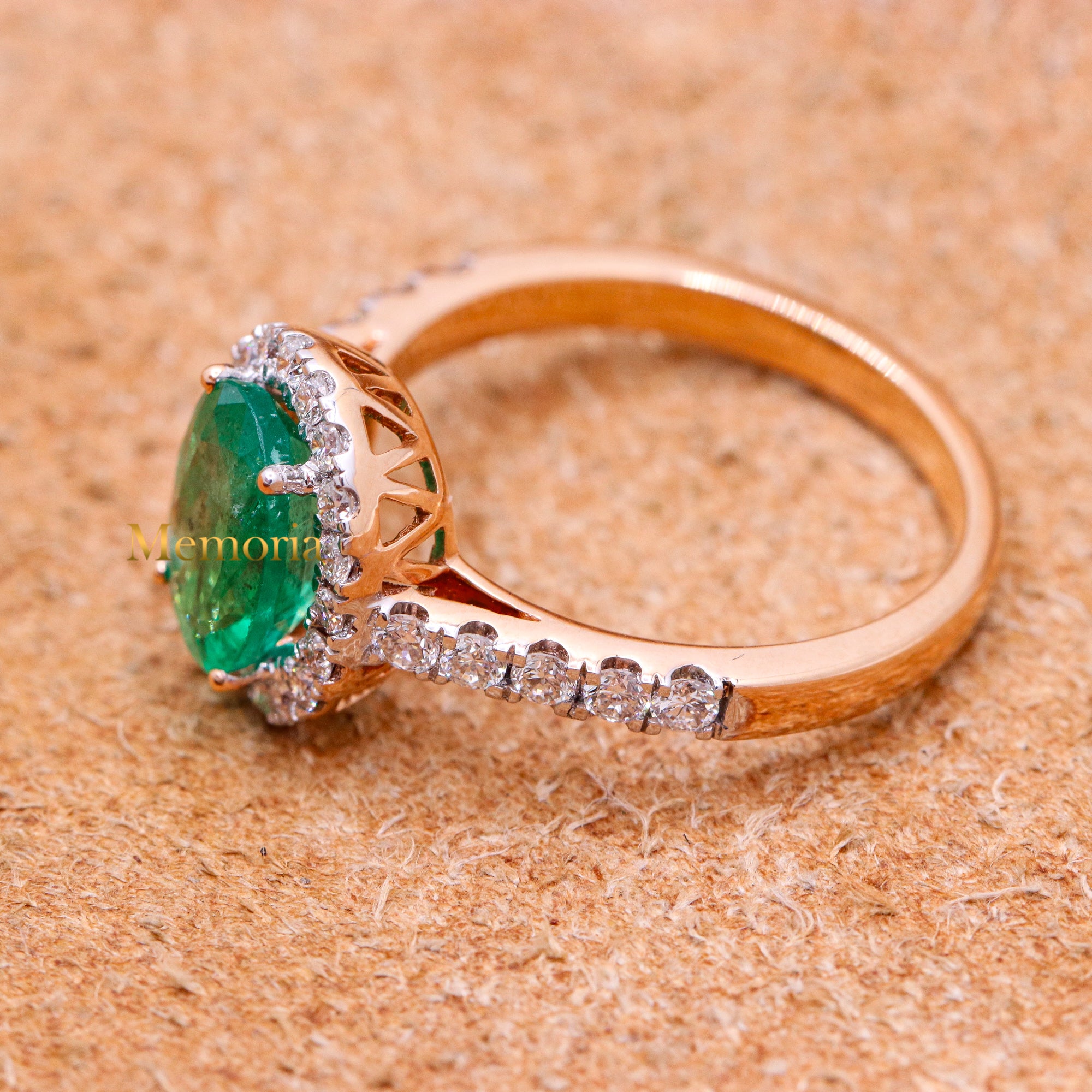 Natural Emerald Gemstone & Diamond Ring In 18k Rose Gold