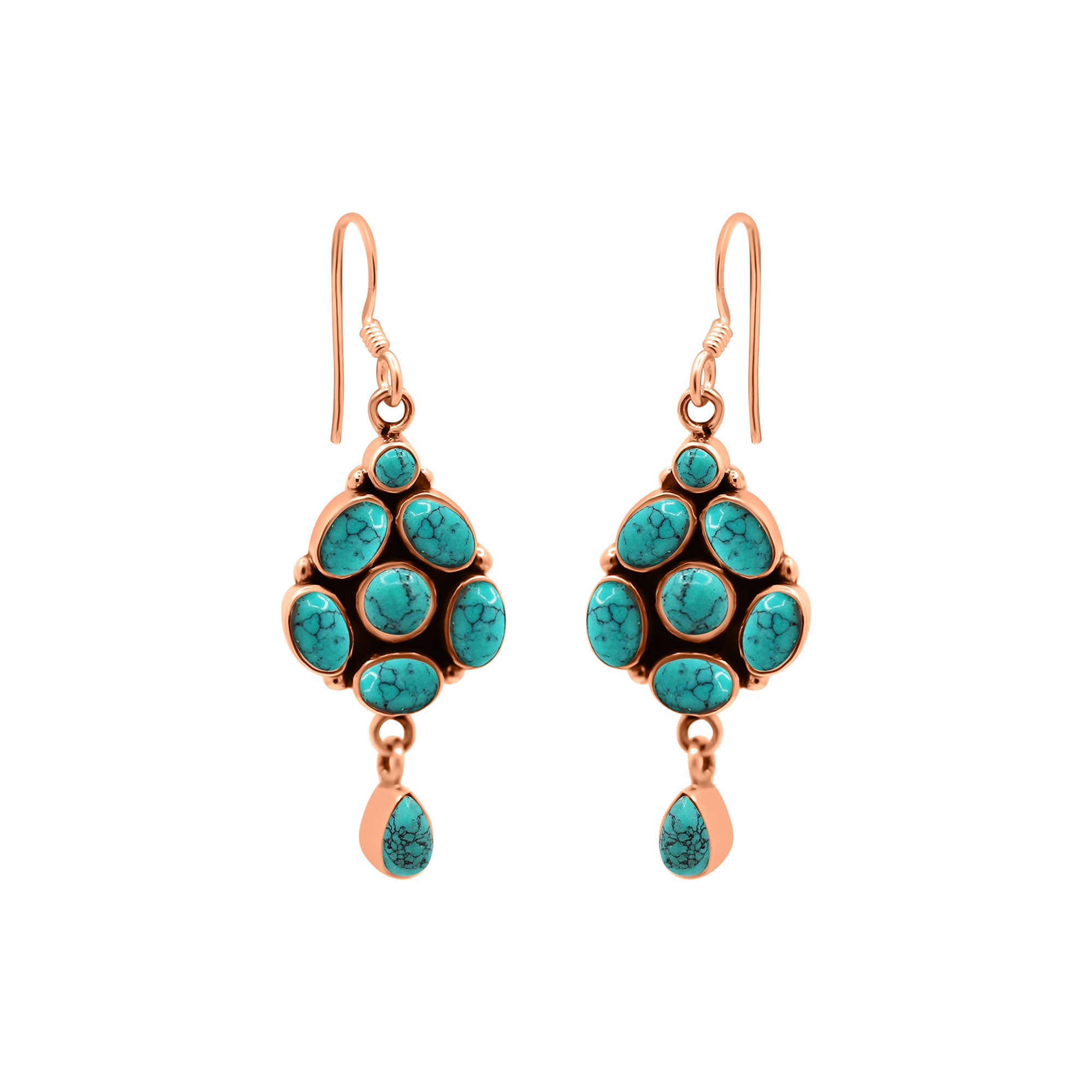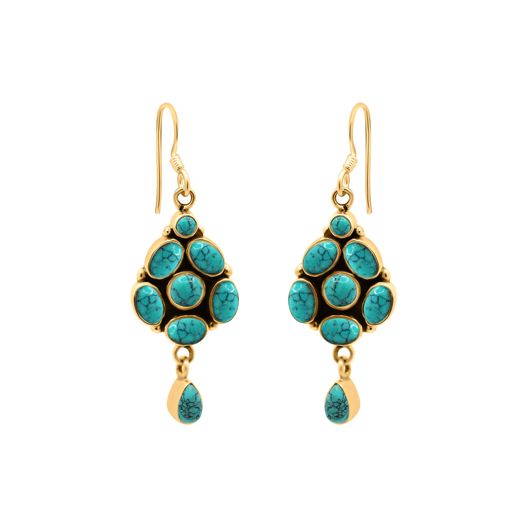 Natural Turquoise Gemstone 925 Sterling Silver Gold Plated Earring
