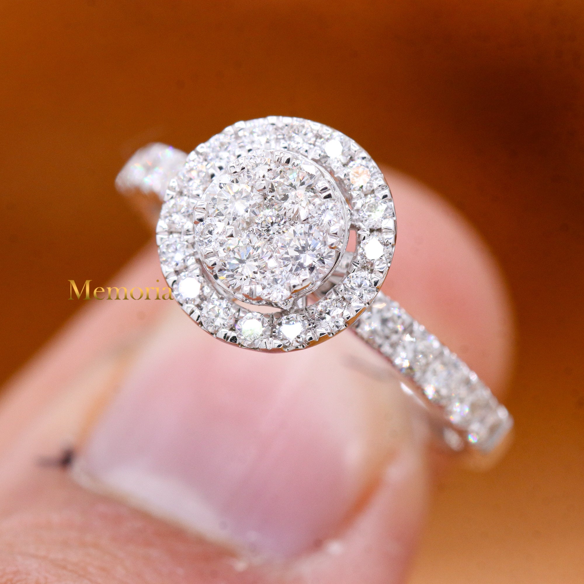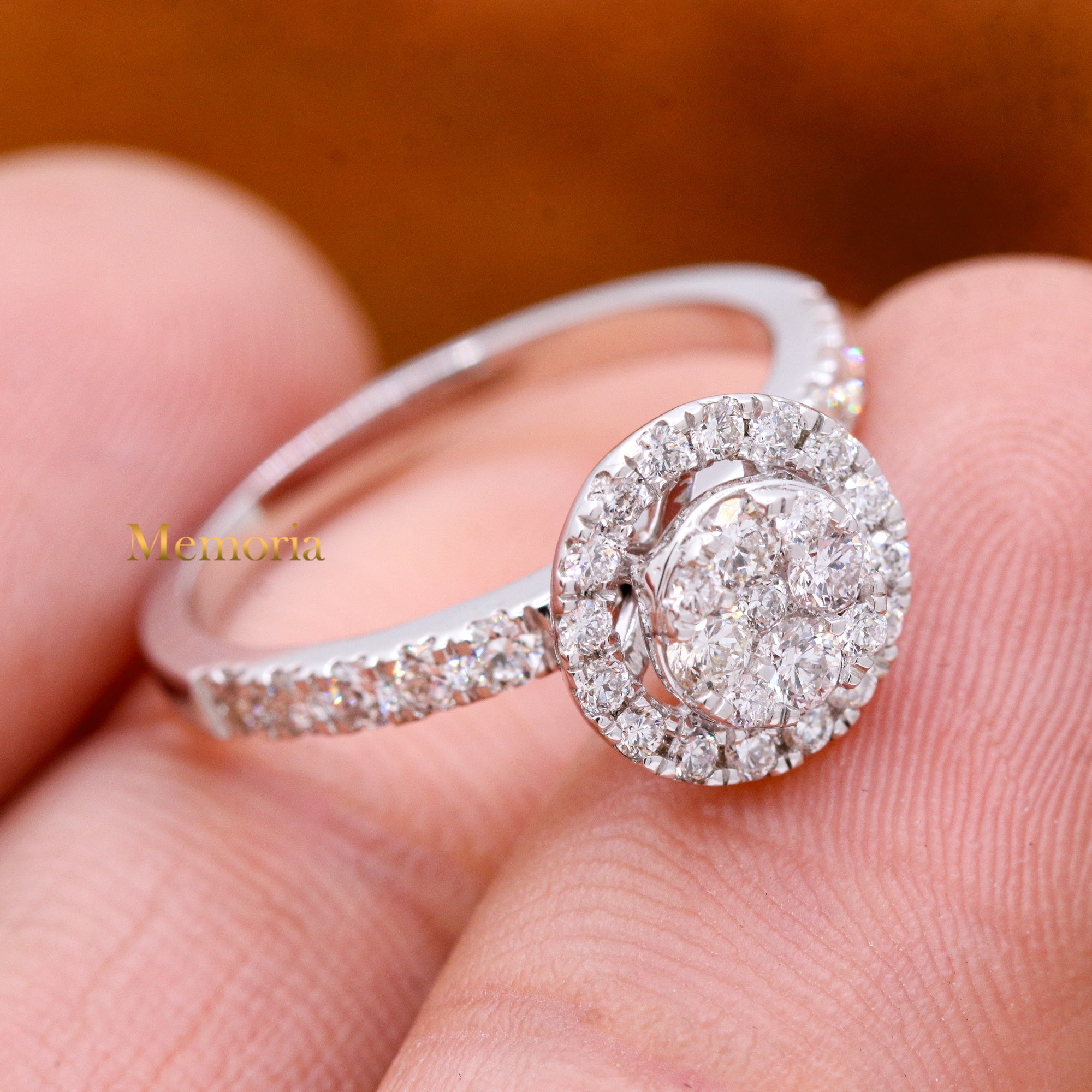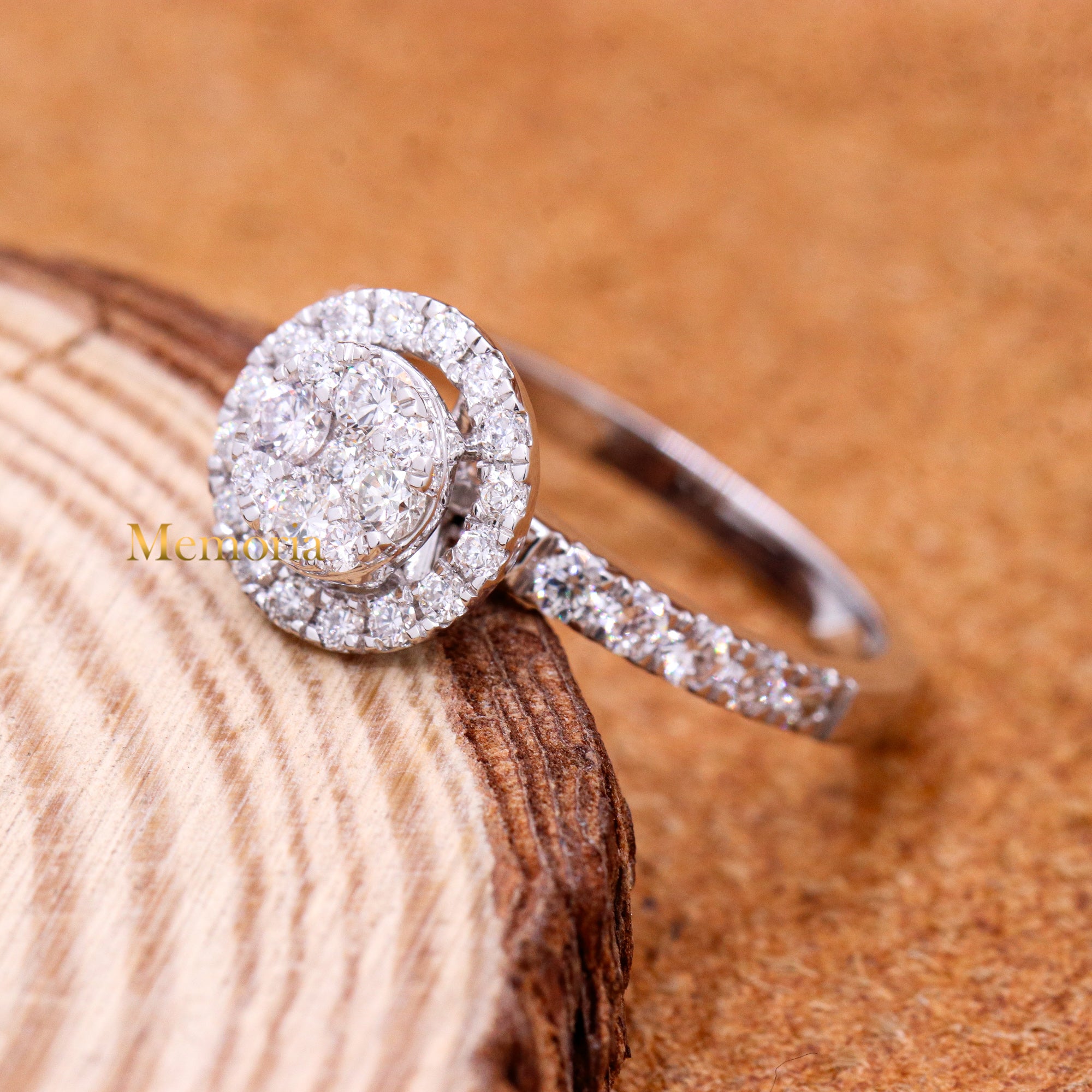 Buy Certified Designer Natural Diamond Ring In 18k White Gold