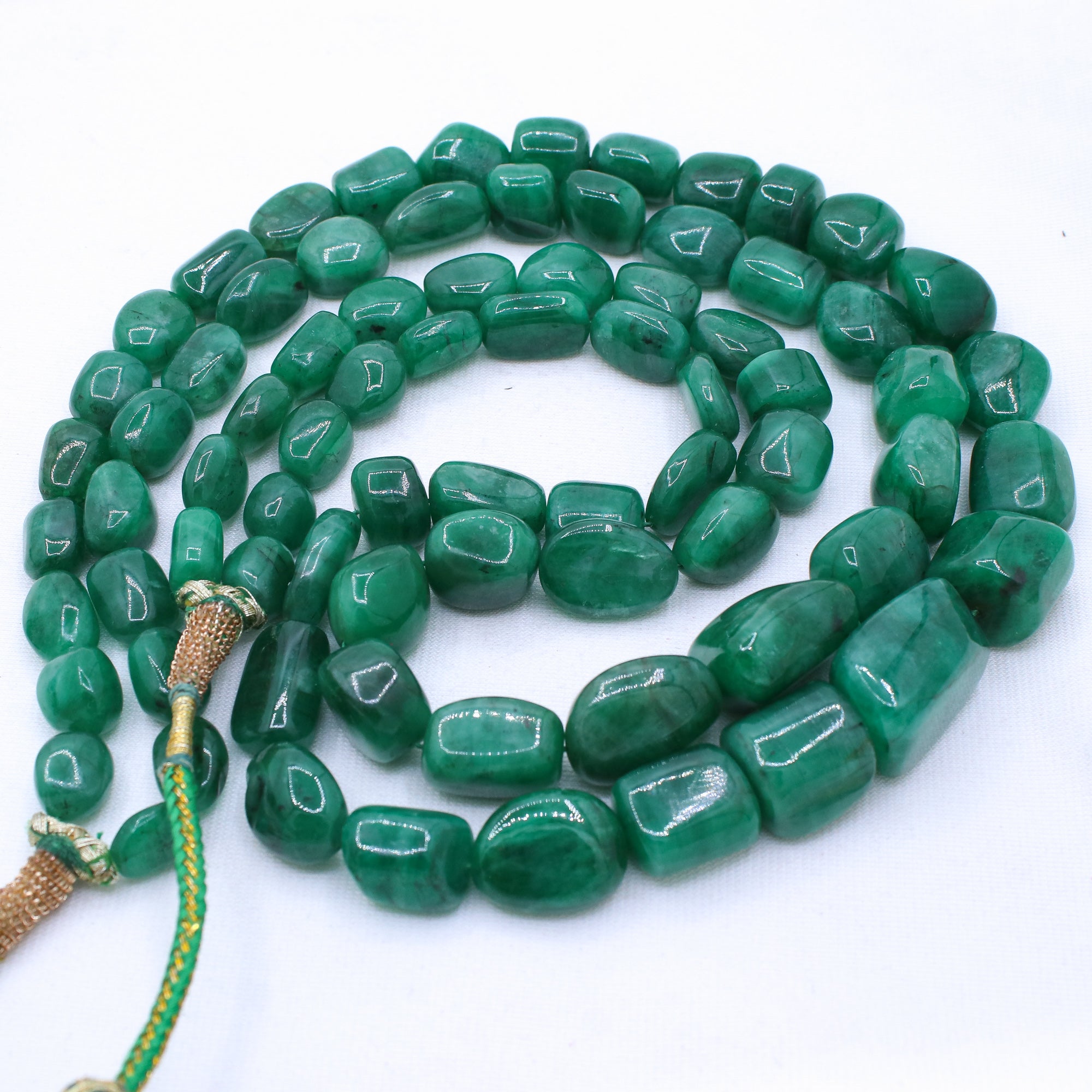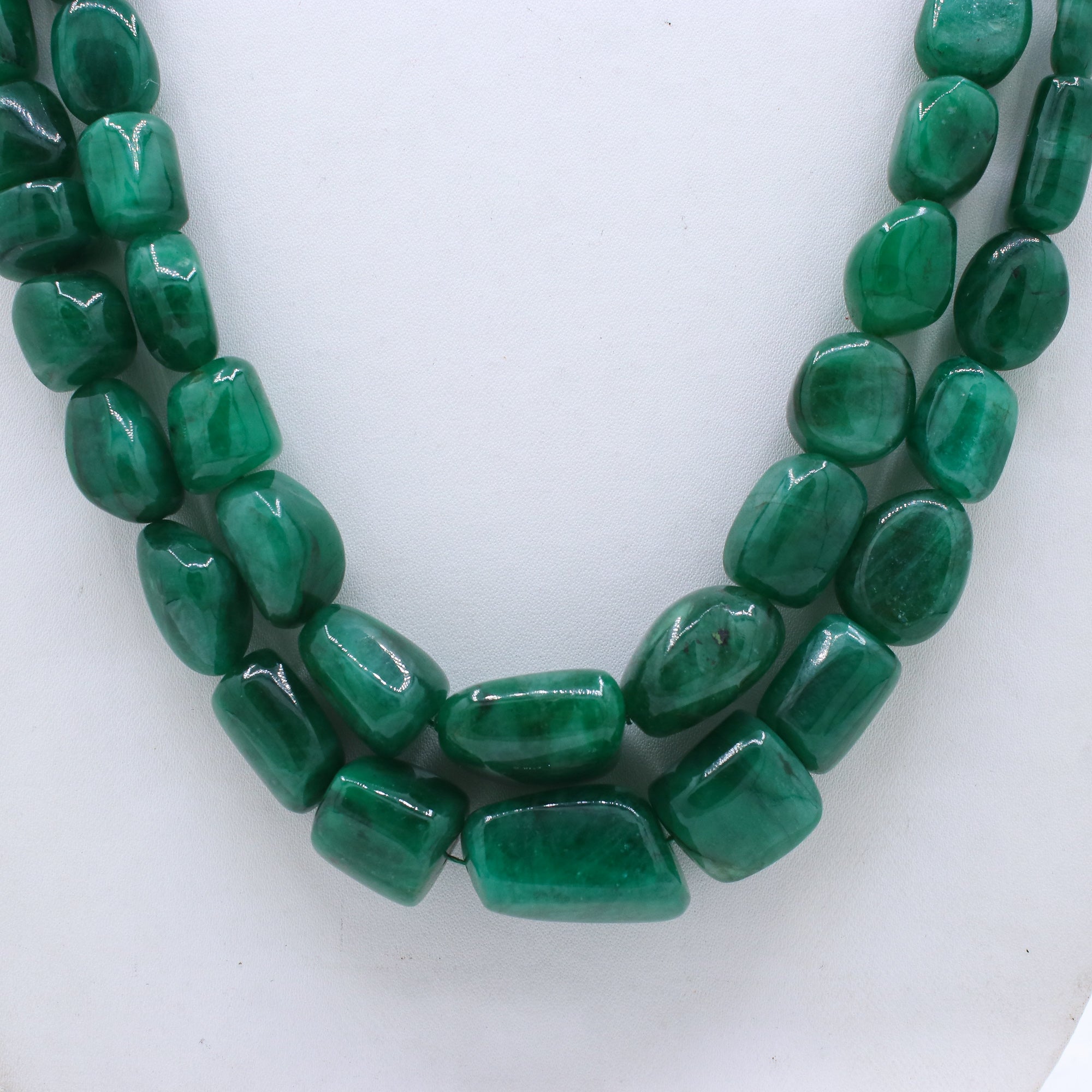 Buy High Quality 2 Line Certified Handcrafted Natural Emerald Mix Shaped Cabochon Cut Beads Thread Necklace For Womens