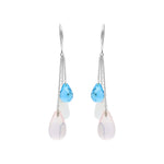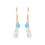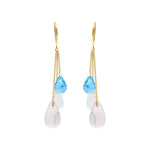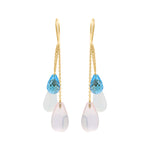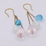 Tear Drop Cat's Eye, Blue Topaz and Rose Quartz 14k Gold Designer Earring