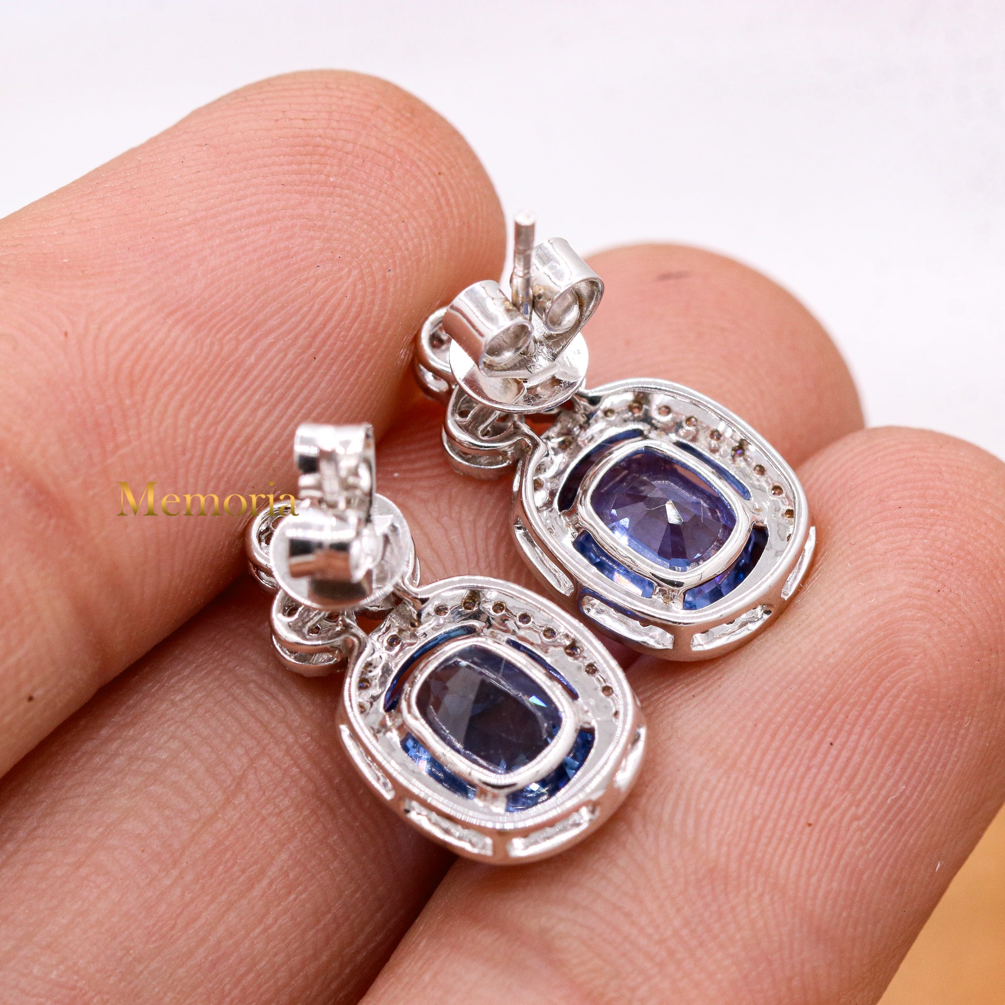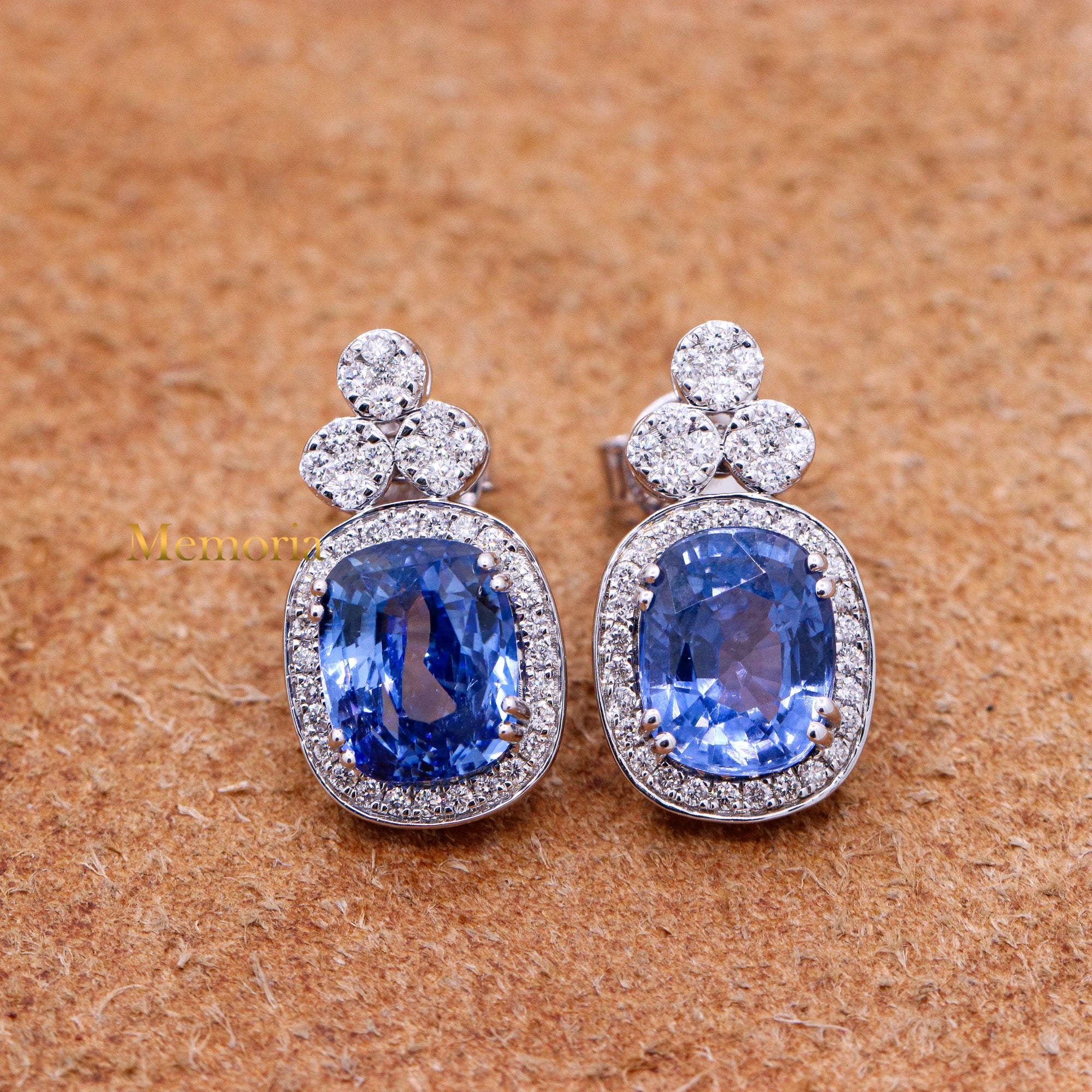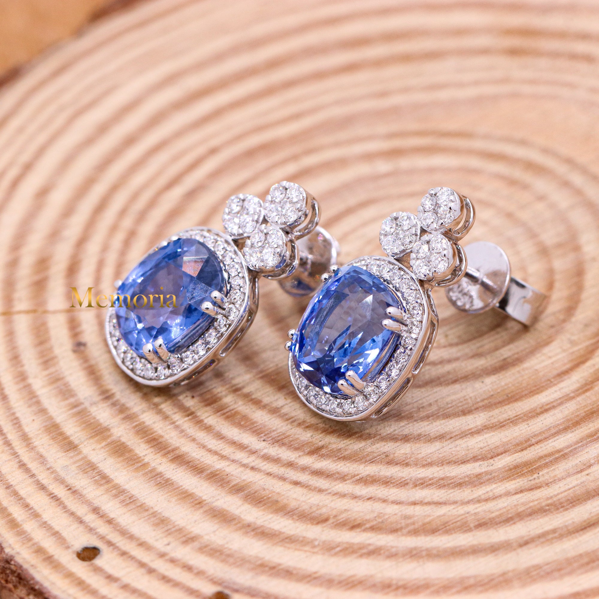 Buy Best Quality Certified Designer Natural Blue Sapphire Oval Shaped Faceted Cut Spiritual Chakra Healing Gemstone With Diamond Stud Earring In 18k White Gold