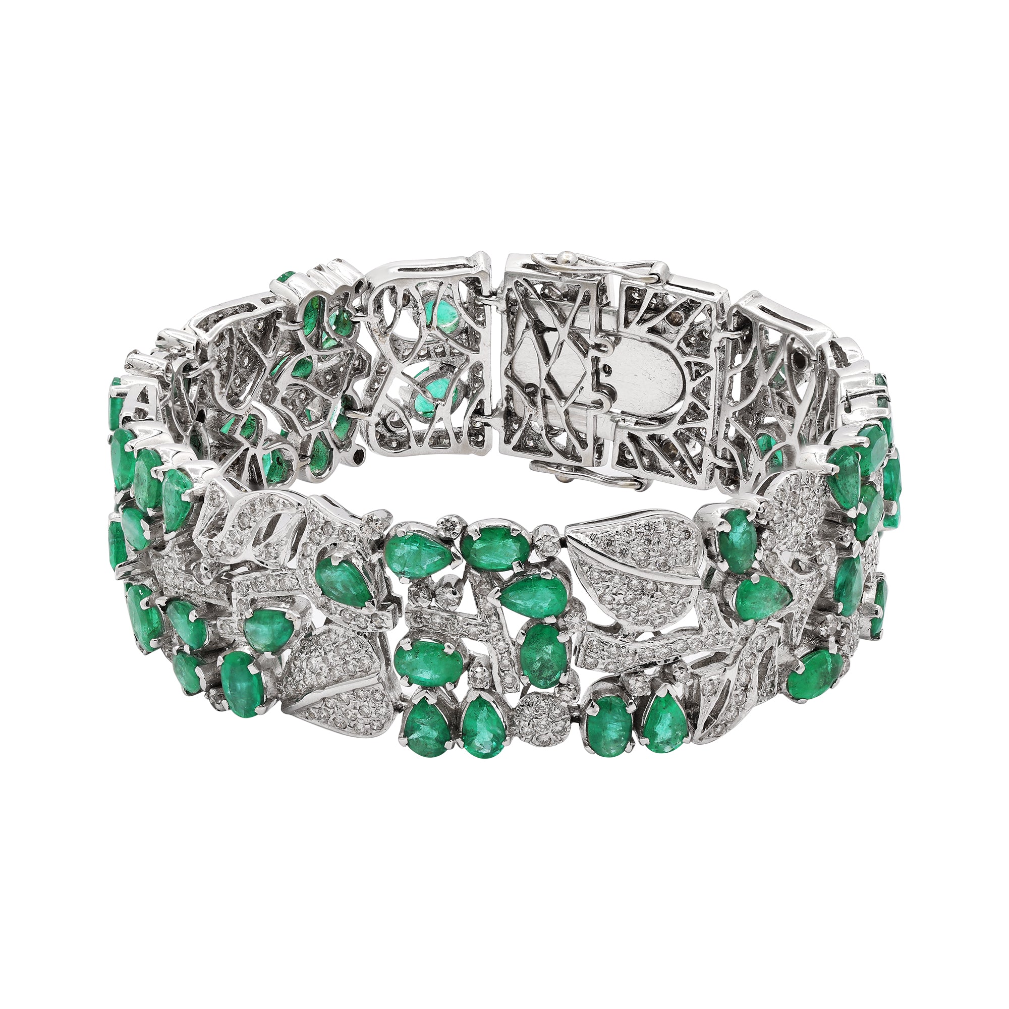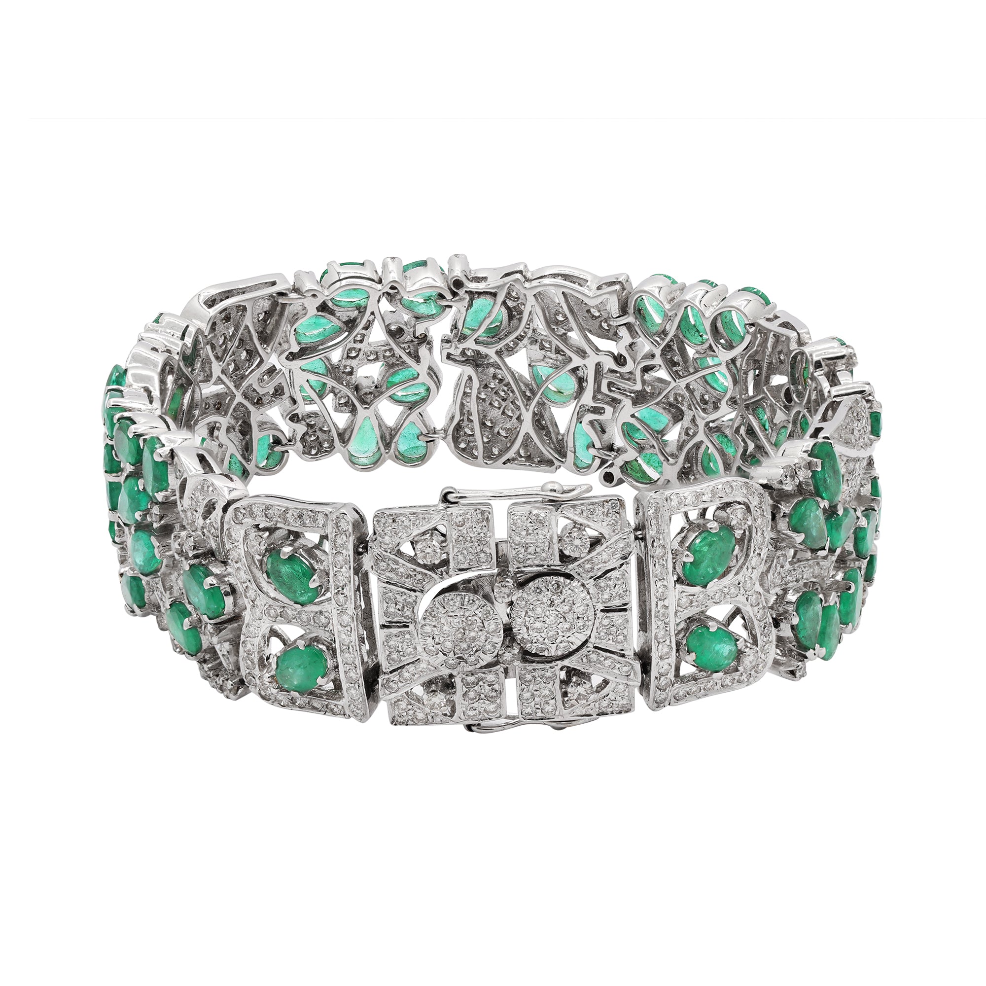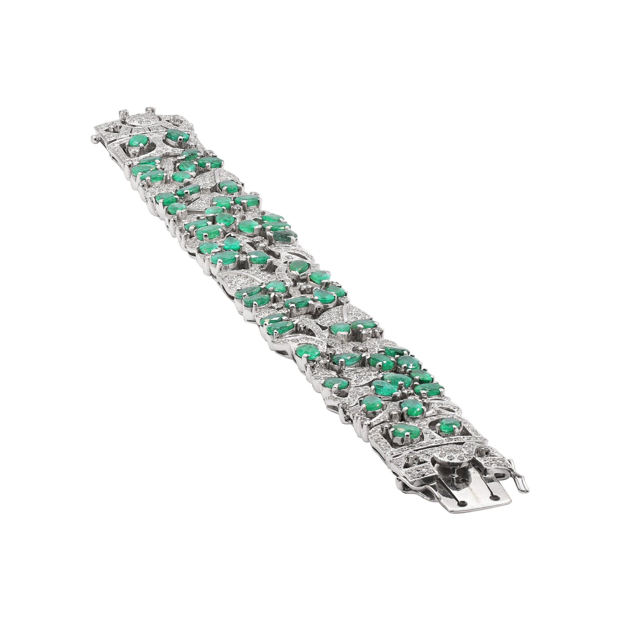 Natural Emerald and Diamond 18K White Gold Bracelet