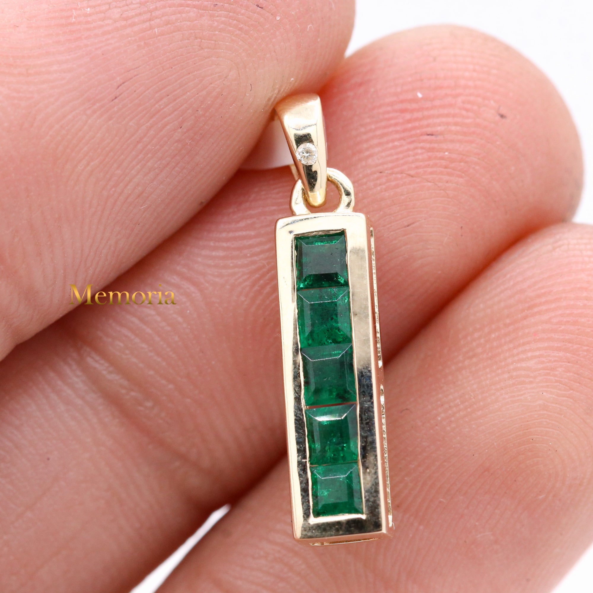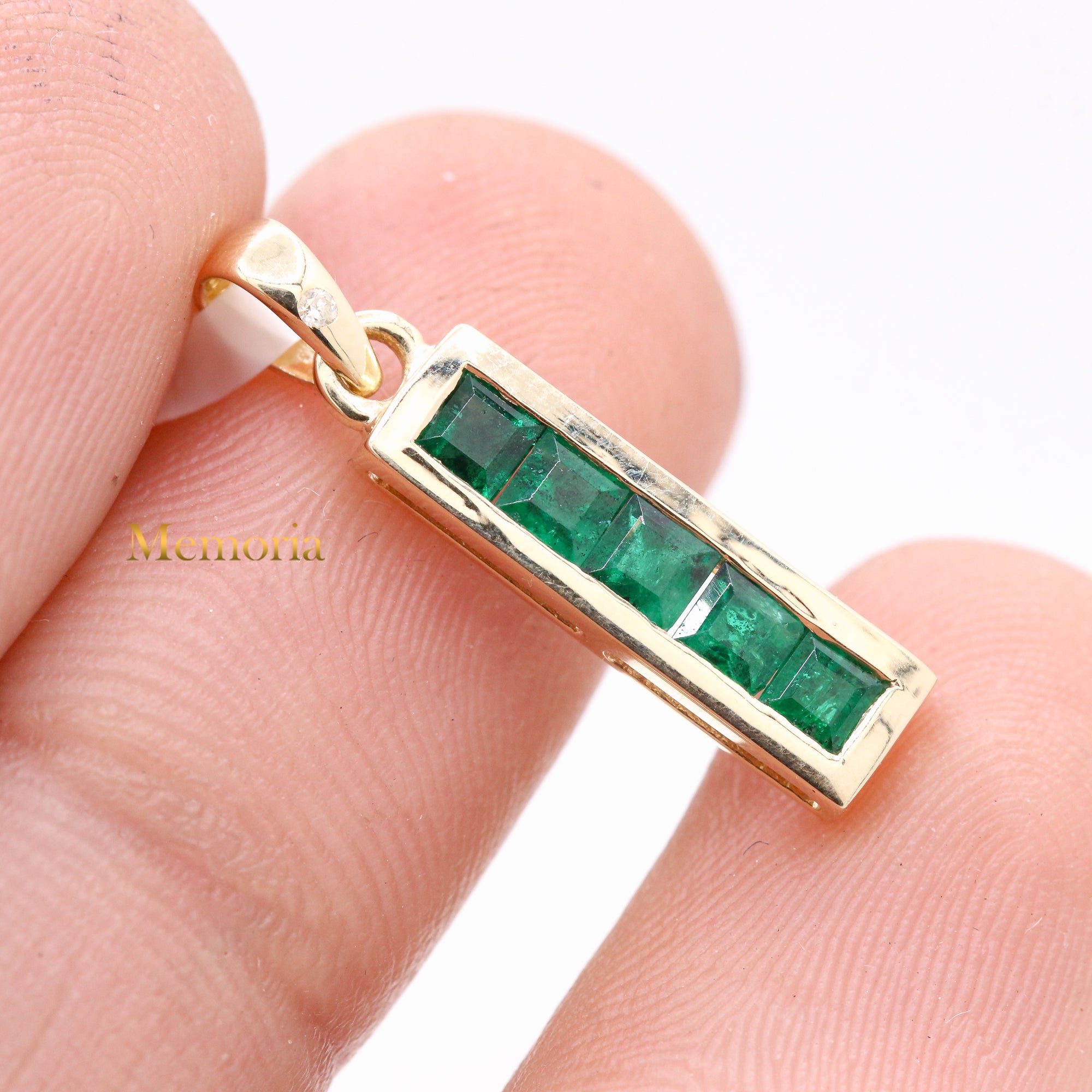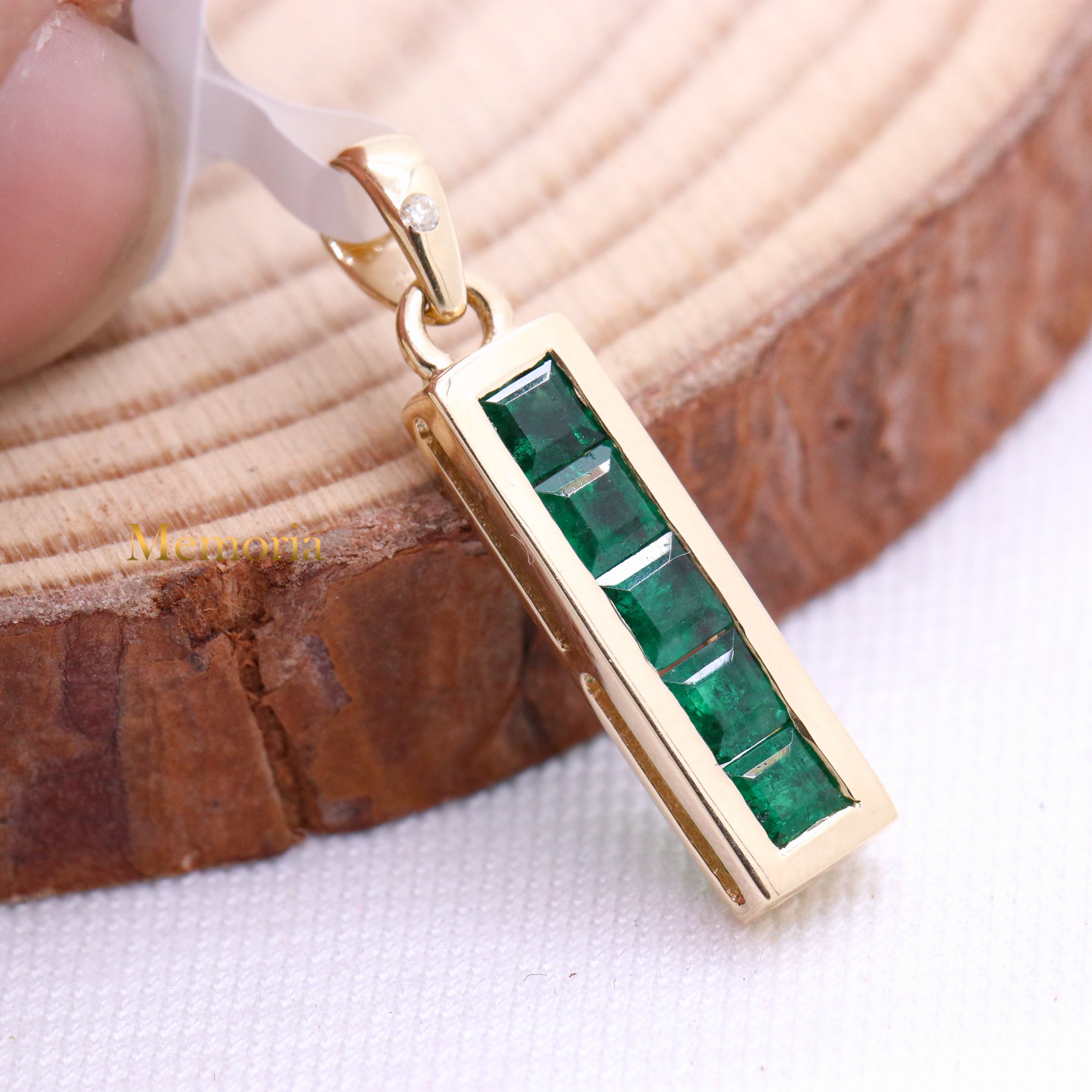 Natural Emerald Gemstone With Diamond Pendant 14k Yellow Gold Jewelry