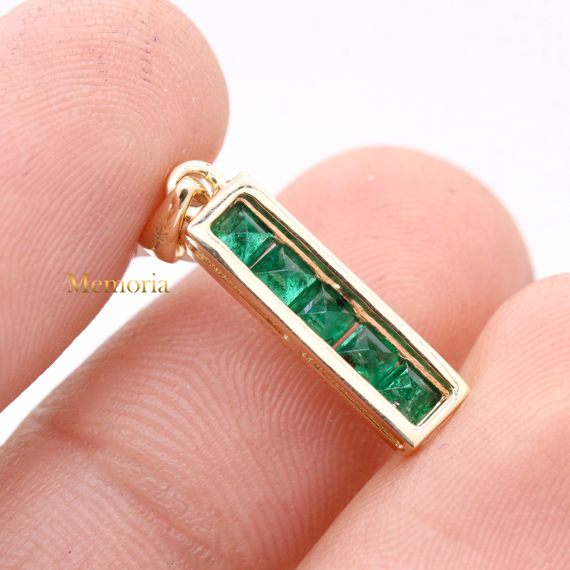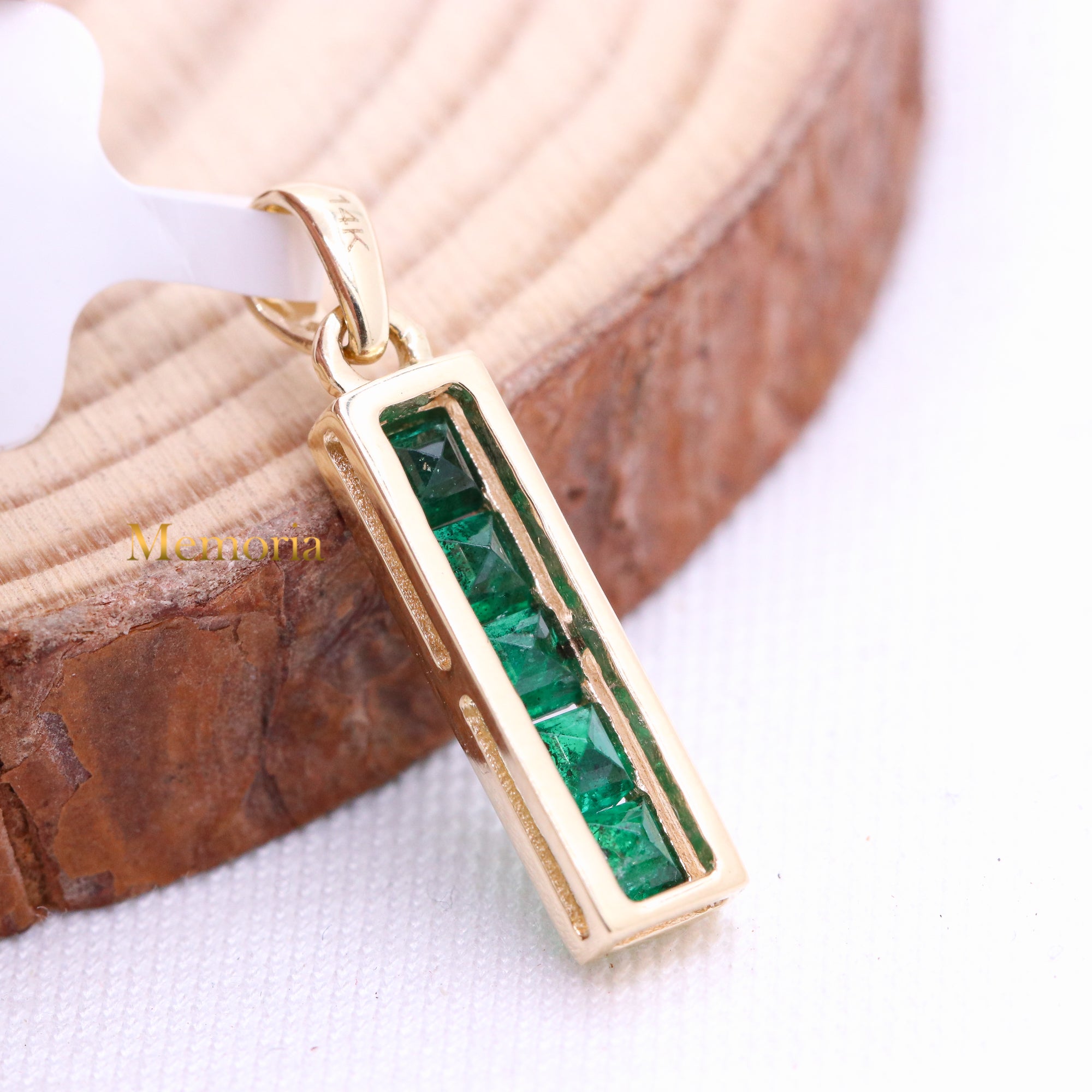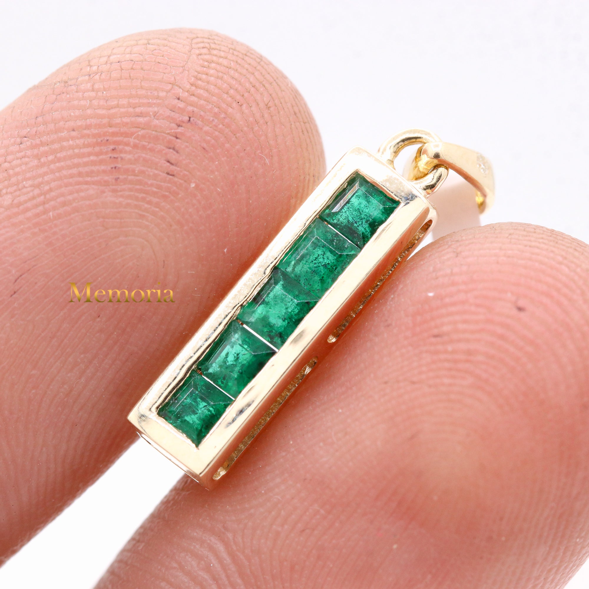 Natural Emerald Gemstone With Diamond Pendant 14k Yellow Gold Jewelry