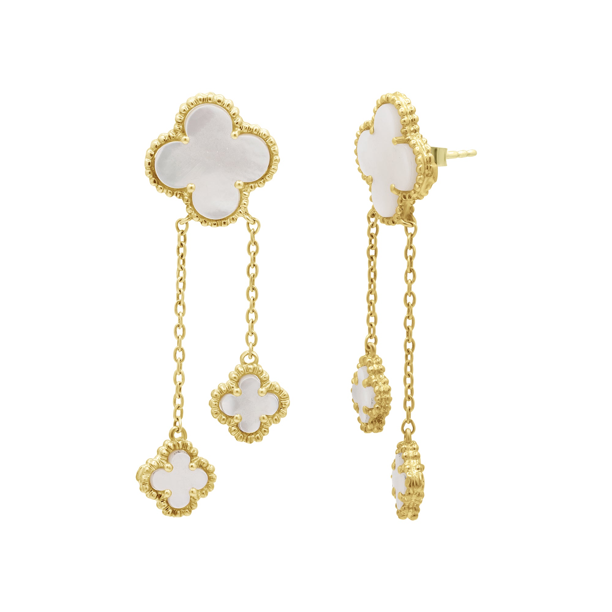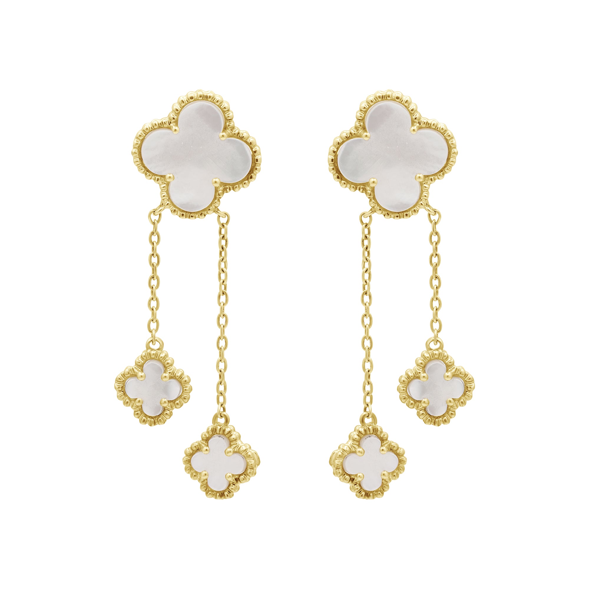 925 Sterling Silver Gold Plated Clover Shaped Mother of Pear Earring